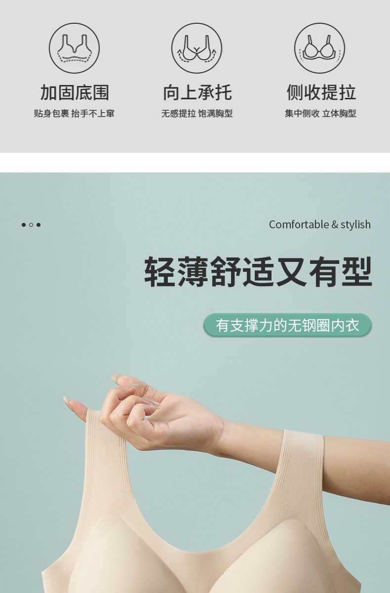 162 심리스 고정 컵 스포츠 조끼 스타일 푸시 업 탑 서포트 유방 처짐 방지 소프트 서포트 속옷 여성용 브래지어