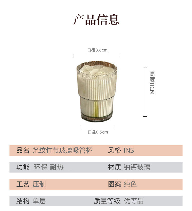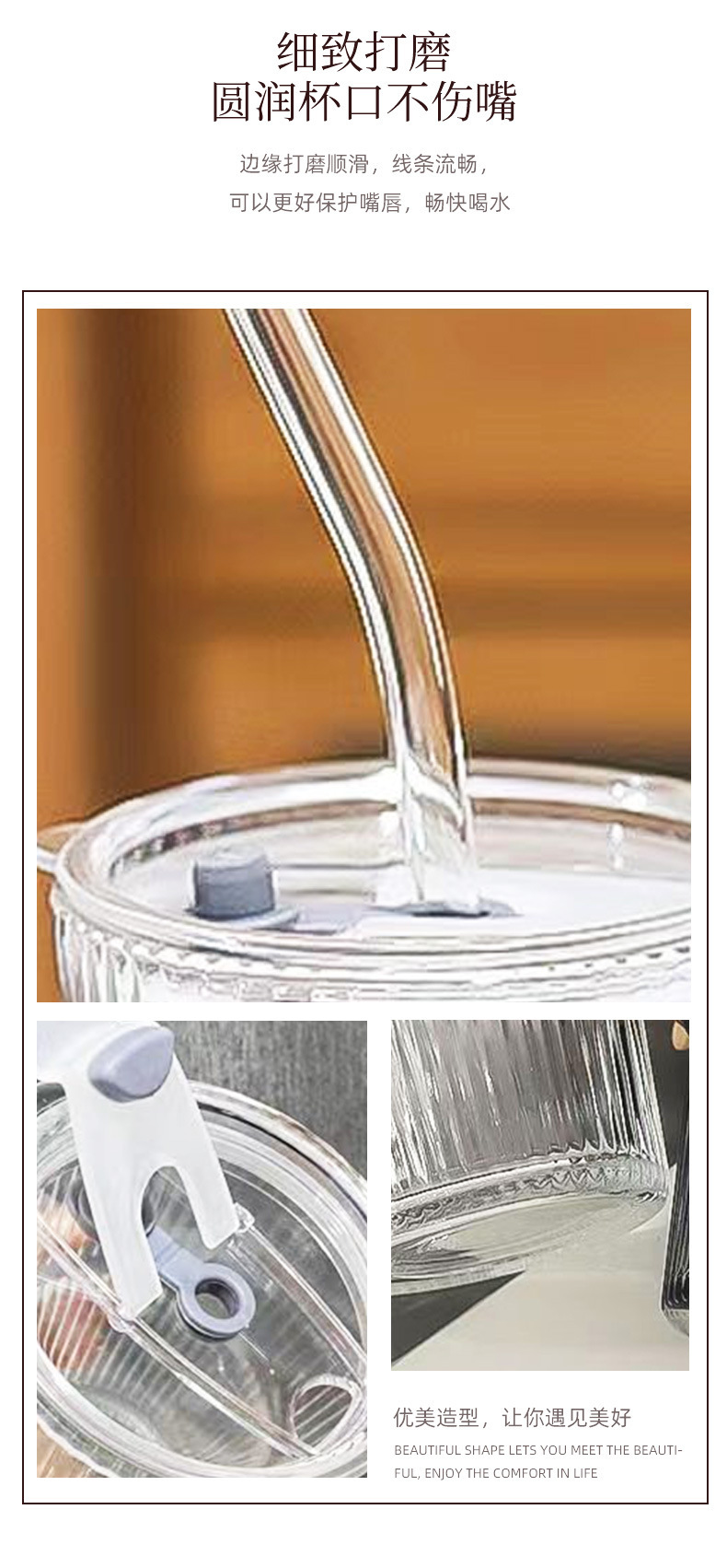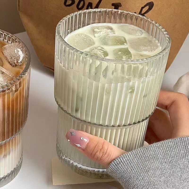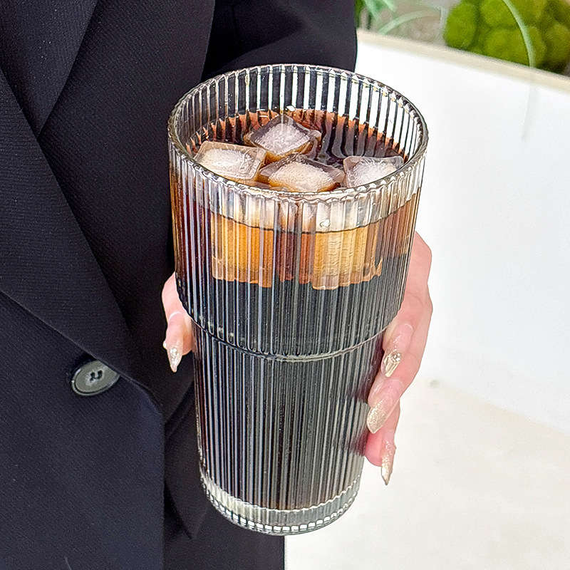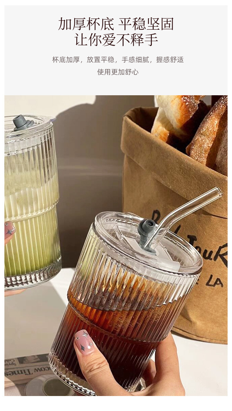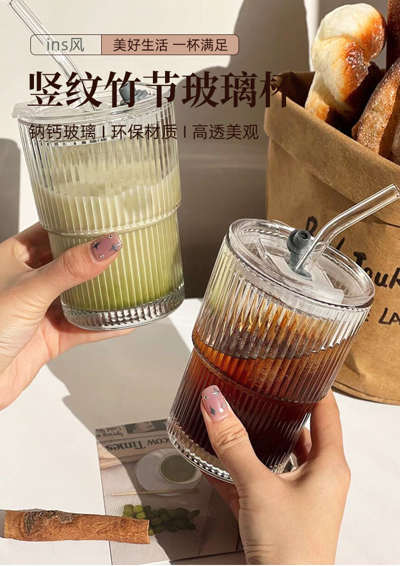 인즈 스타일 수직 스트라이프 유리 아이스 아메리칸 스타일 노르딕 스타일 콜드 드링크 컵 스트로우 가정용 대용량 슬럽 컵 뚜껑