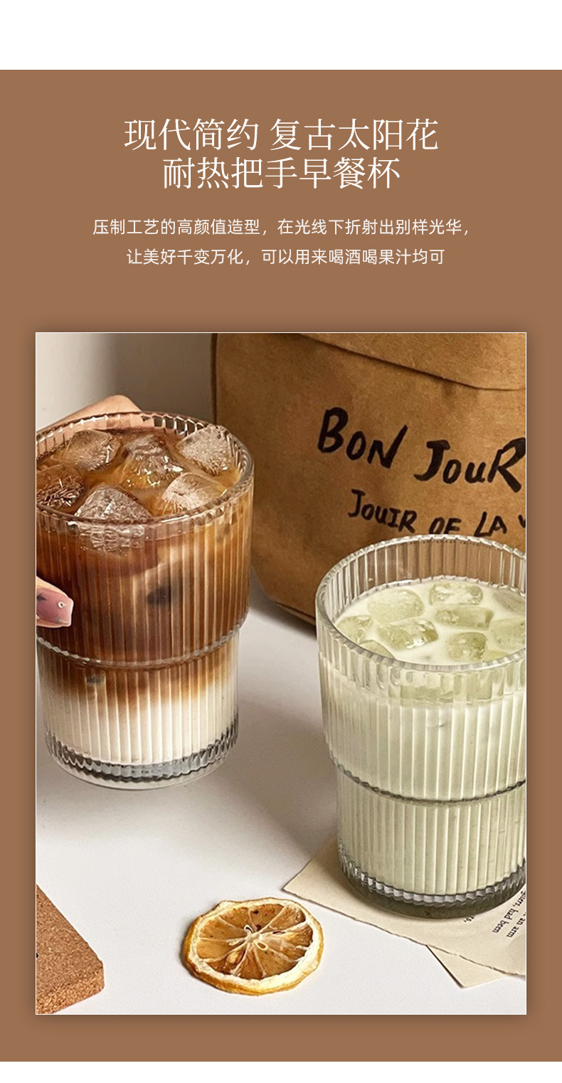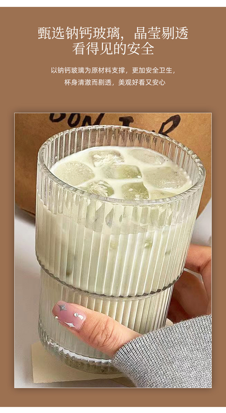 인즈 스타일 수직 스트라이프 유리 아이스 아메리칸 스타일 노르딕 스타일 콜드 드링크 컵 스트로우 가정용 대용량 슬럽 컵 뚜껑스토어 가기