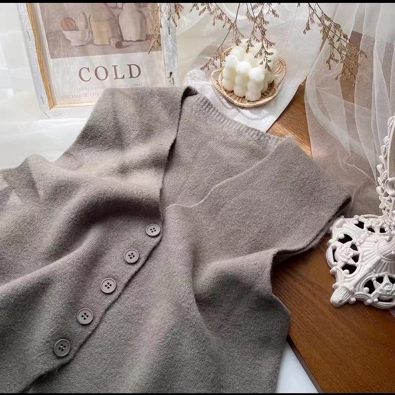 한국식 V 넥 니트 조끼 느슨한 짧은 불규칙한 싱글 브레스트 웨이스트 코트 새로운 민소매 웨스턴 스타일 스웨터