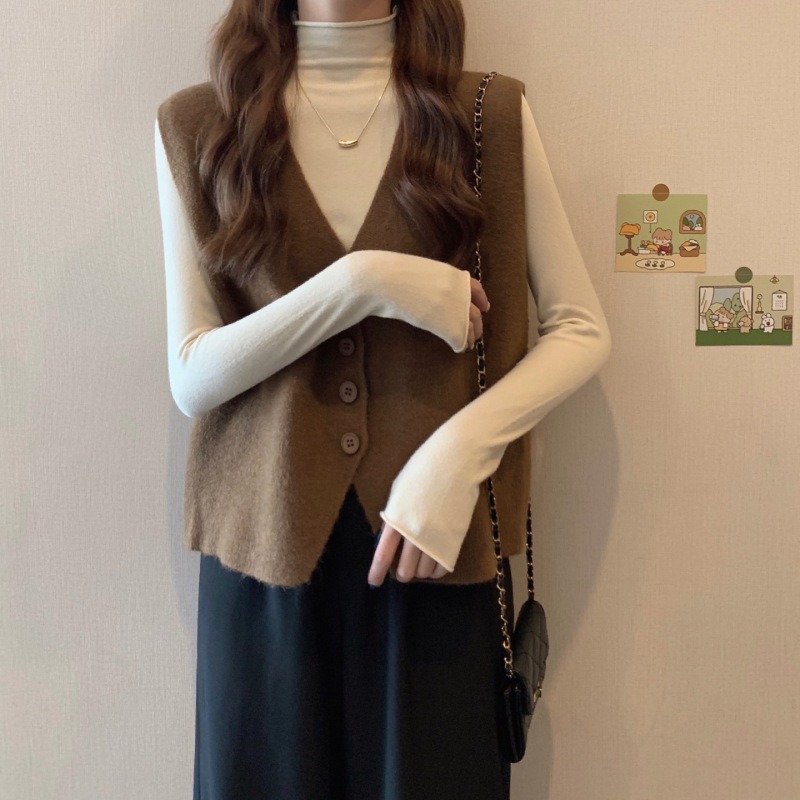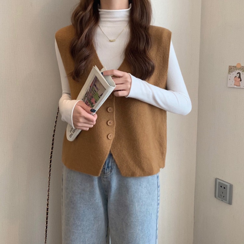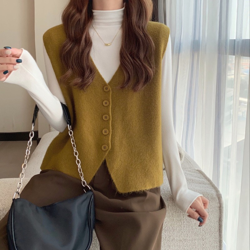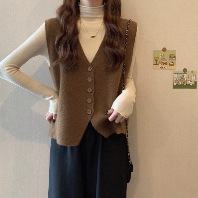 한국식 V 넥 니트 조끼 느슨한 짧은 불규칙한 싱글 브레스트 웨이스트 코트 새로운 민소매 웨스턴 스타일 스웨터스토어 가기