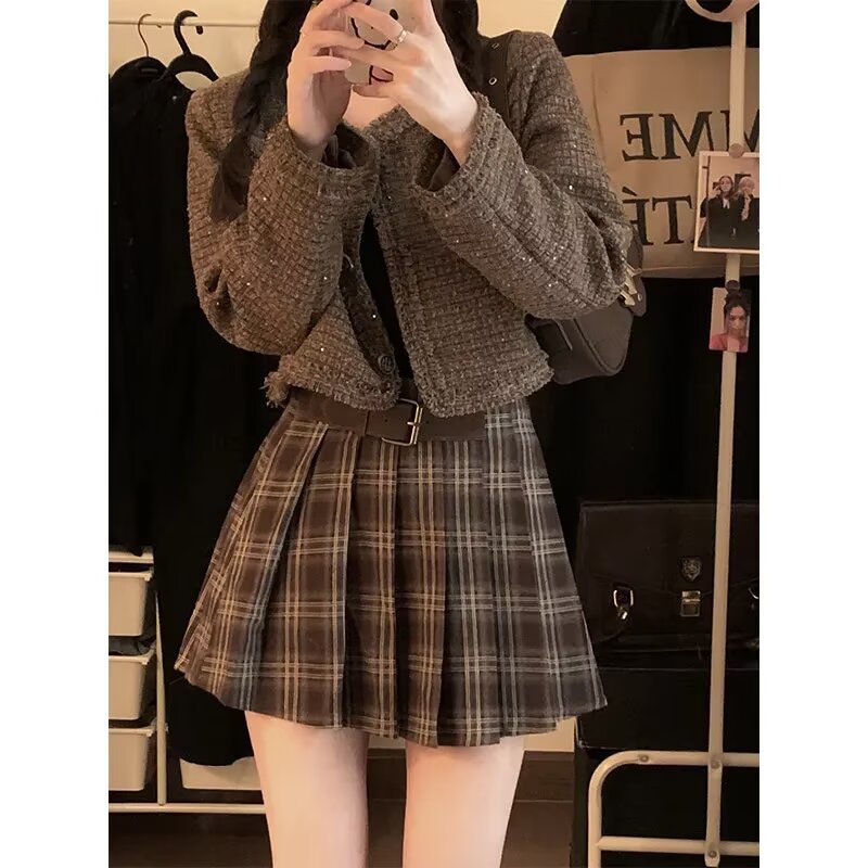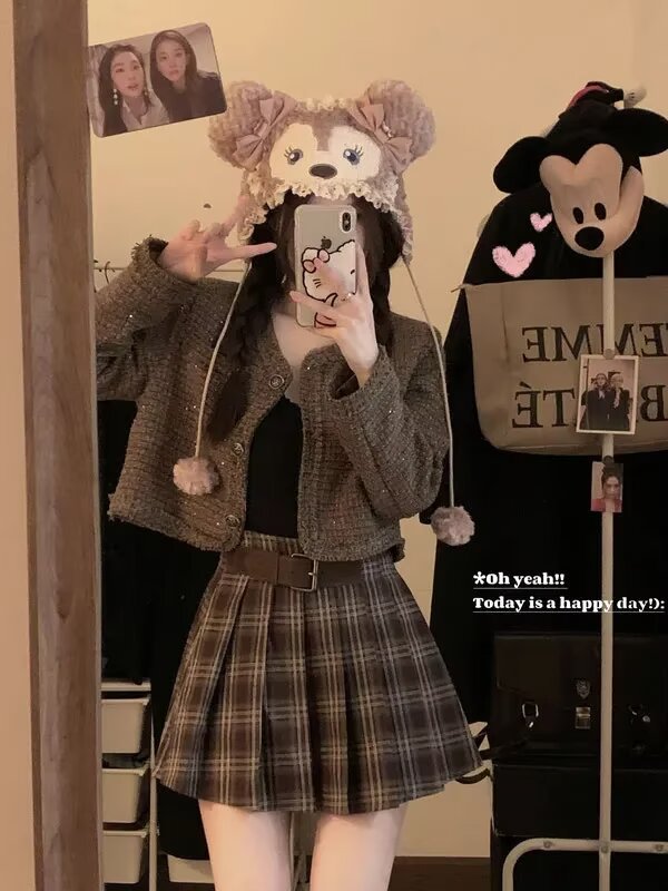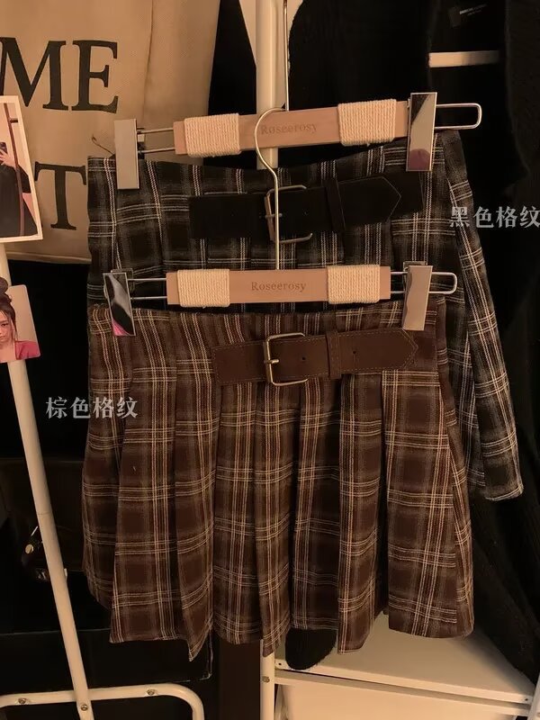 메일라드 복고 체크 스커트 봄 가을 브라운 커피 A라인 스커트 신상 핫 스커트스토어 가기