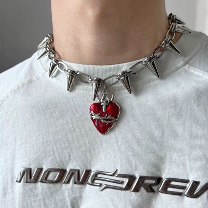 서브 컬쳐 투옥 된 가시 사랑 리벳 목걸이 남성과 여성을위한 패션 쿨 퍼스널 펑크 목걸이 디자인 액세서리스토어 가기
