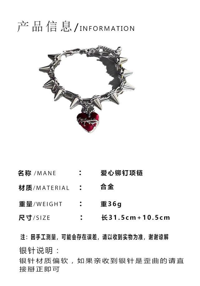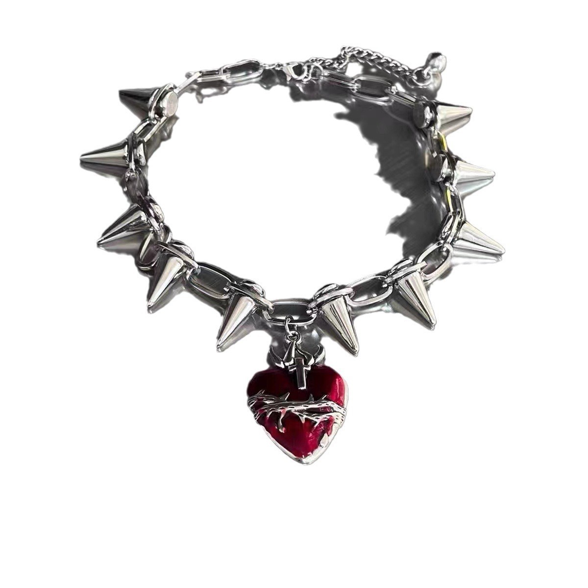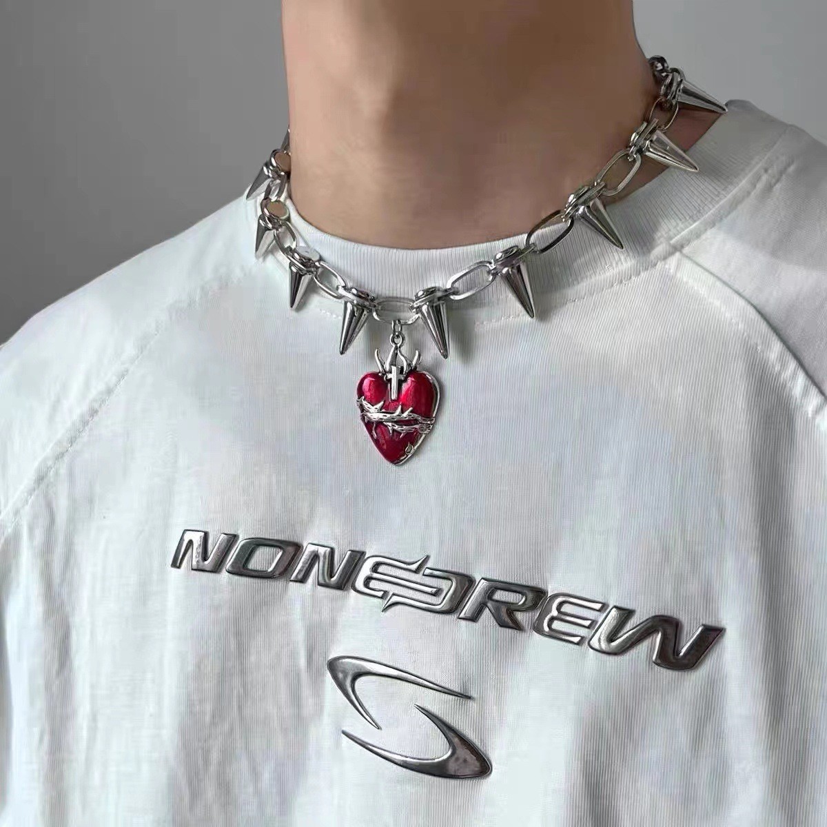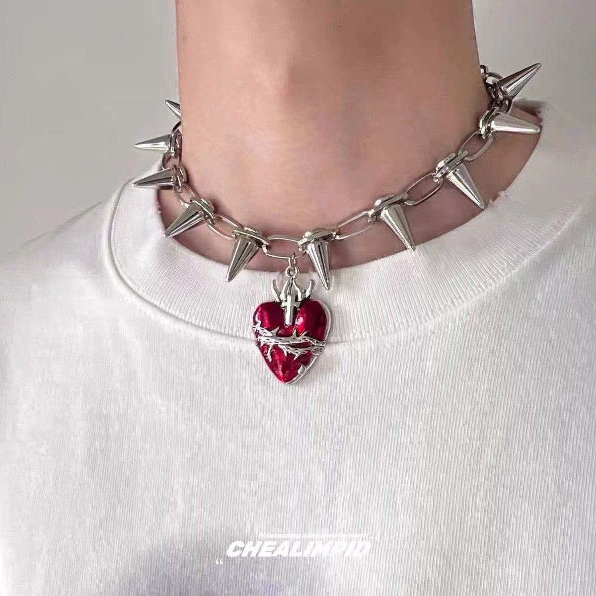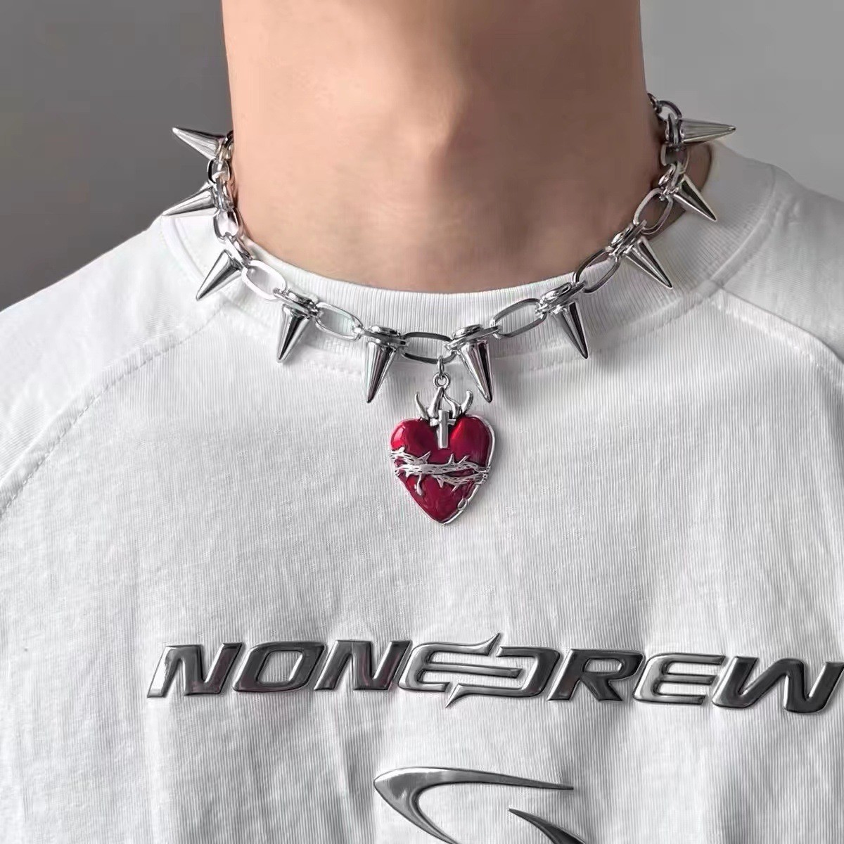 서브 컬쳐 투옥 된 가시 사랑 리벳 목걸이 남성과 여성을위한 패션 쿨 퍼스널 펑크 목걸이 디자인 액세서리