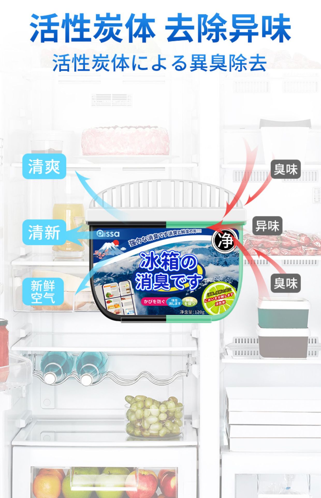 냉장고 탈취제 청정기 오존 활성탄 냄새 흡수 탈취제 상자 가정용 탈취제