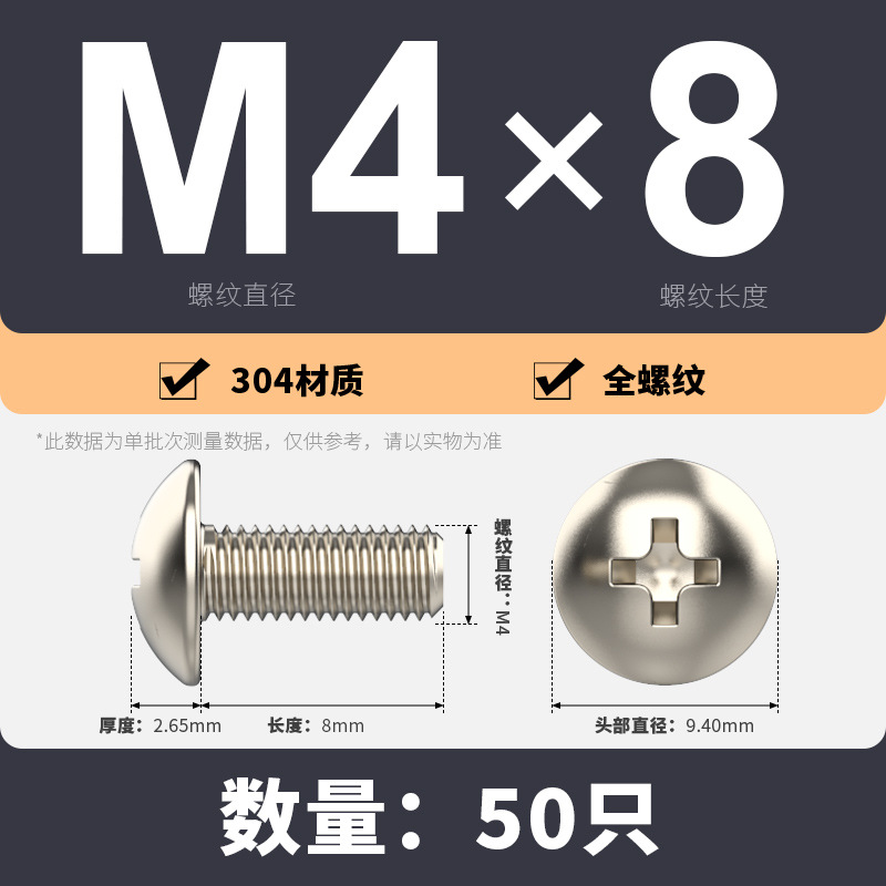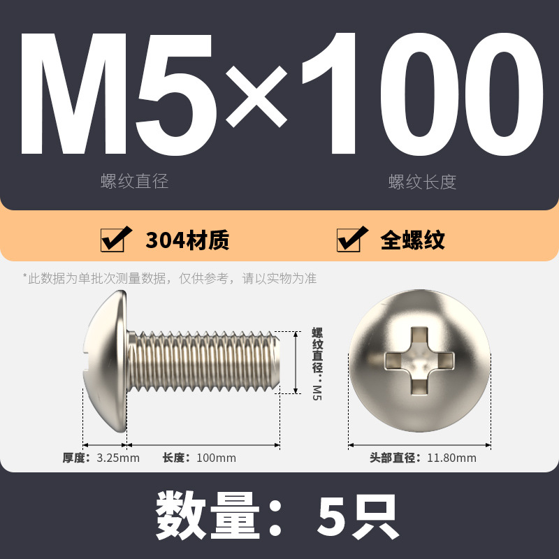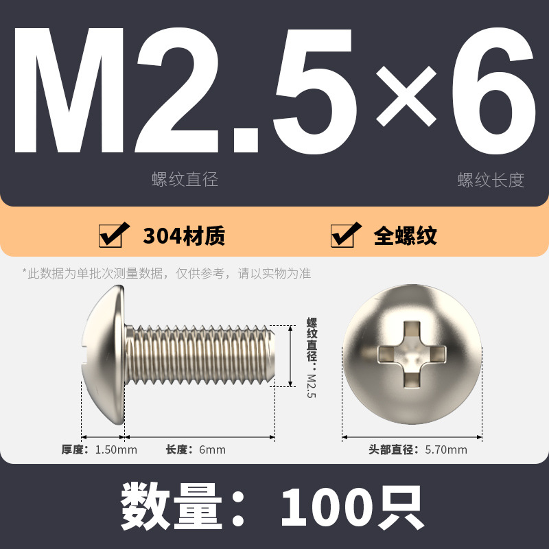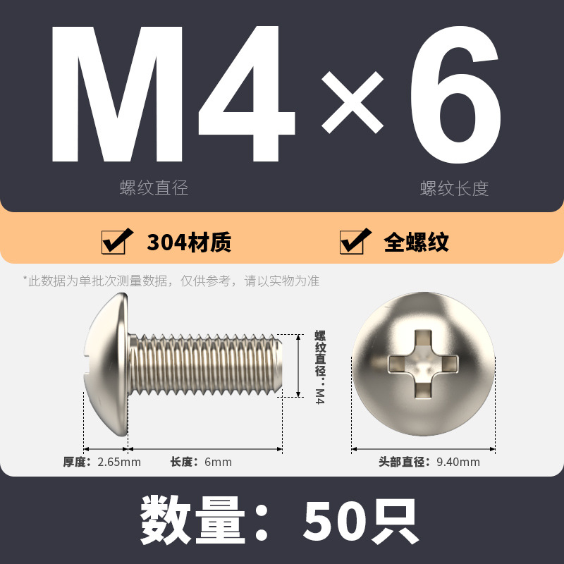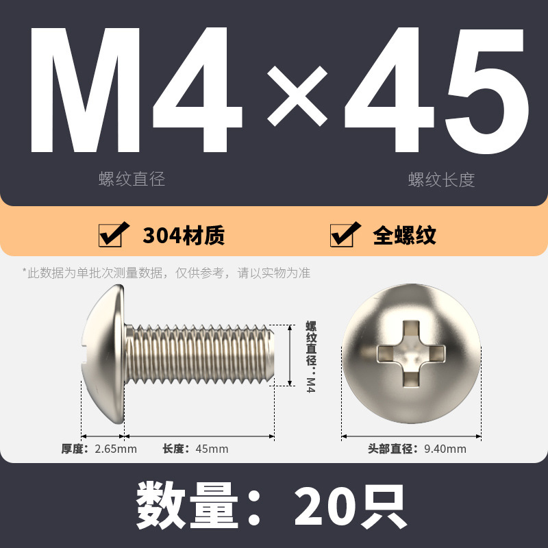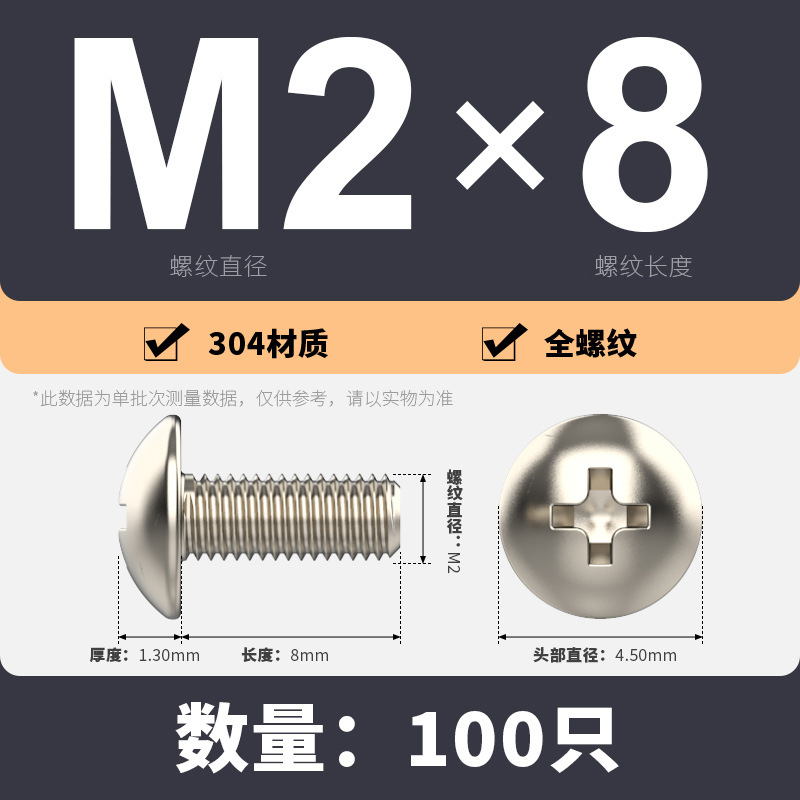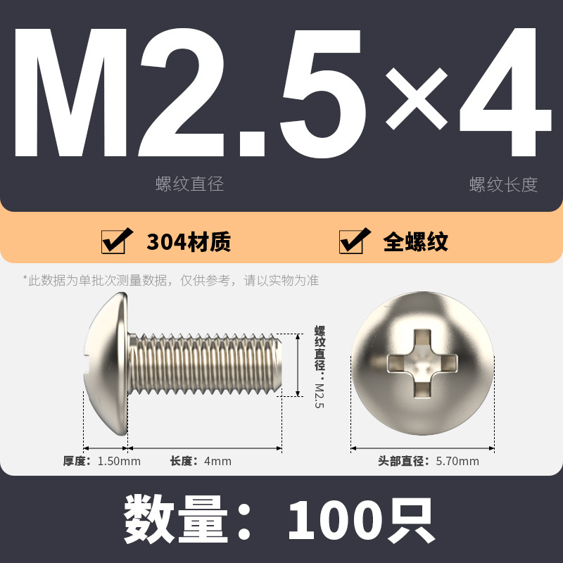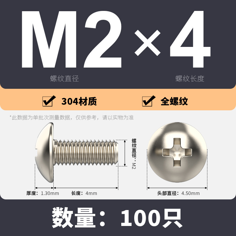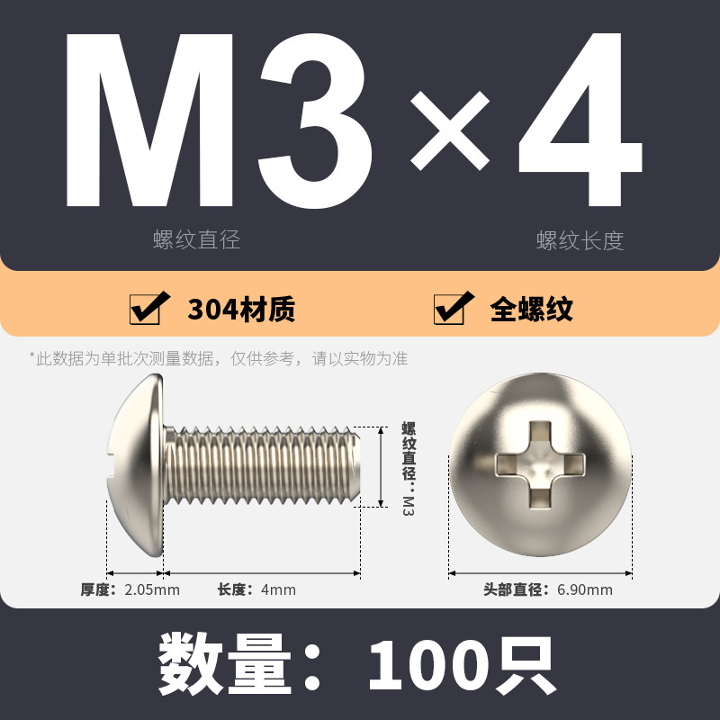 304 스테인레스 스틸 대형 플랫 헤드 스크류 크로스 홈 머신 스크류 하프 우산 라운드 헤드 버섯 헤드 볼트 M2M3M4M5M6M8