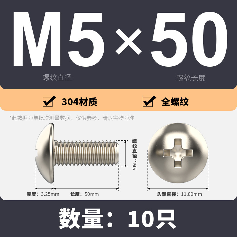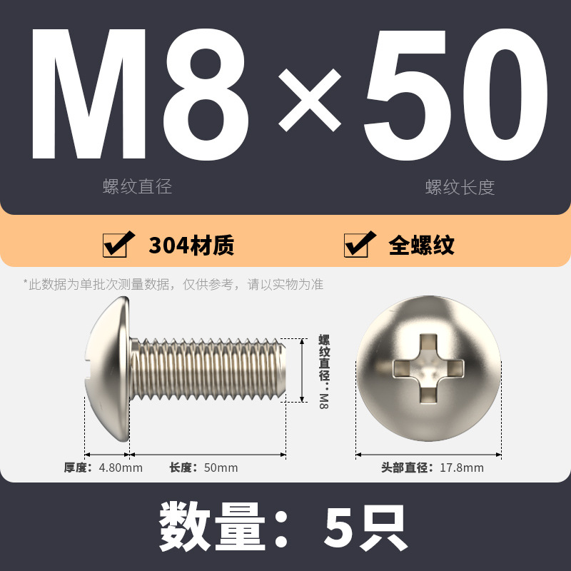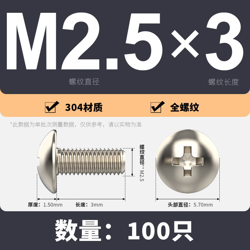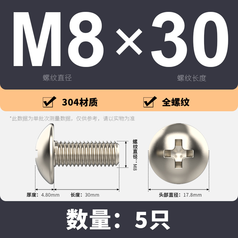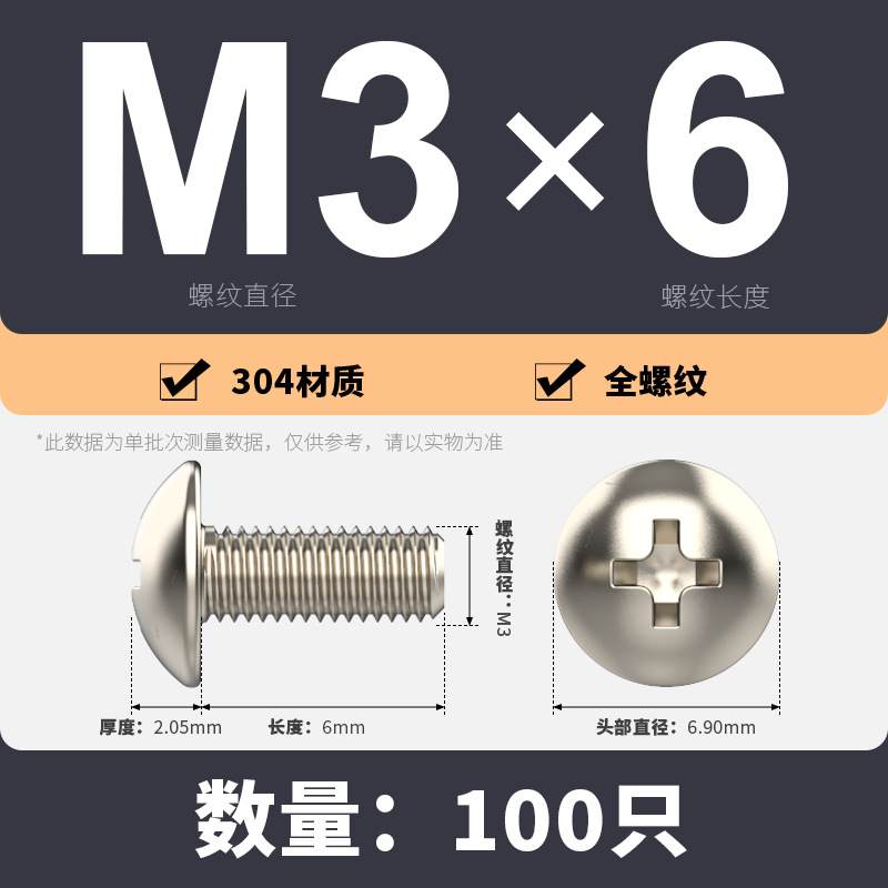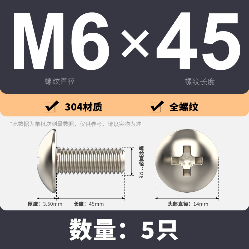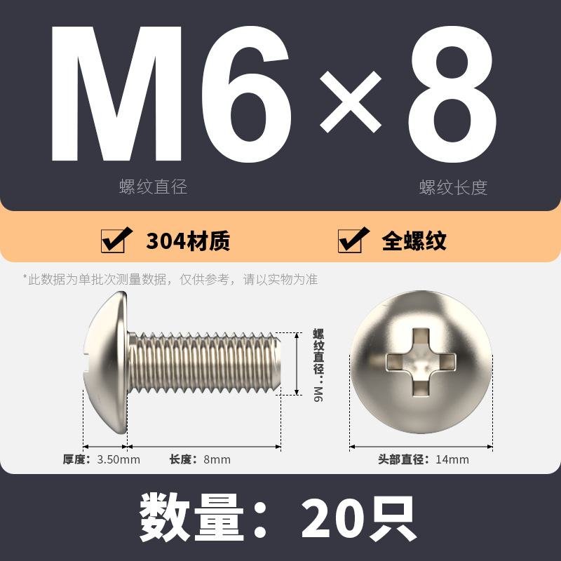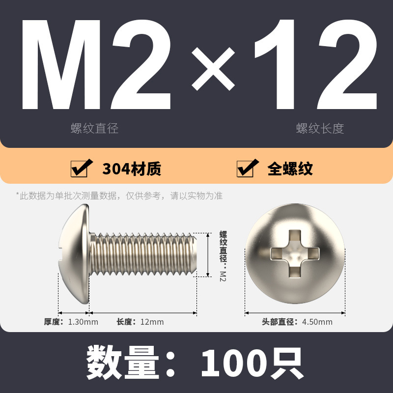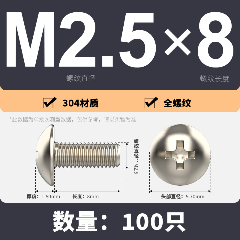 304 스테인레스 스틸 대형 플랫 헤드 스크류 크로스 홈 머신 스크류 하프 우산 라운드 헤드 버섯 헤드 볼트 M2M3M4M5M6M8