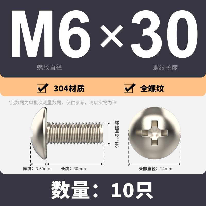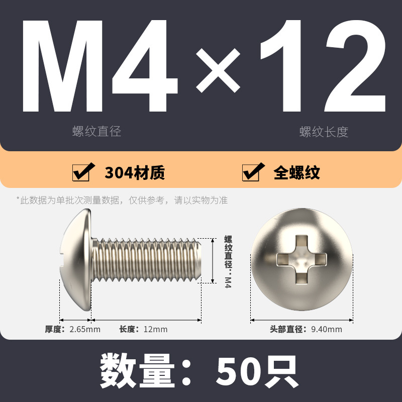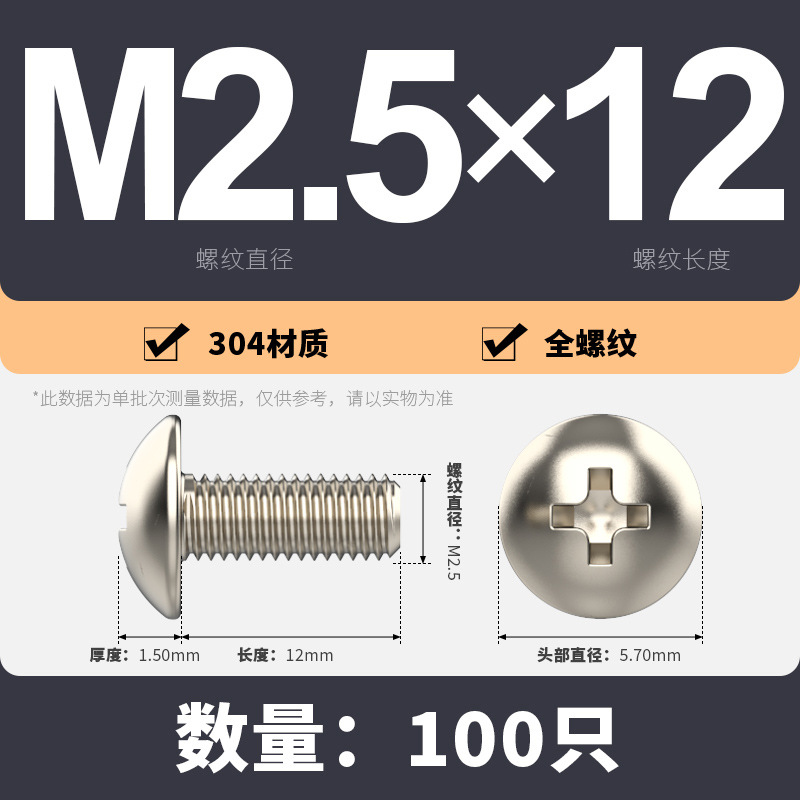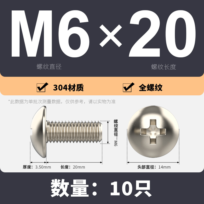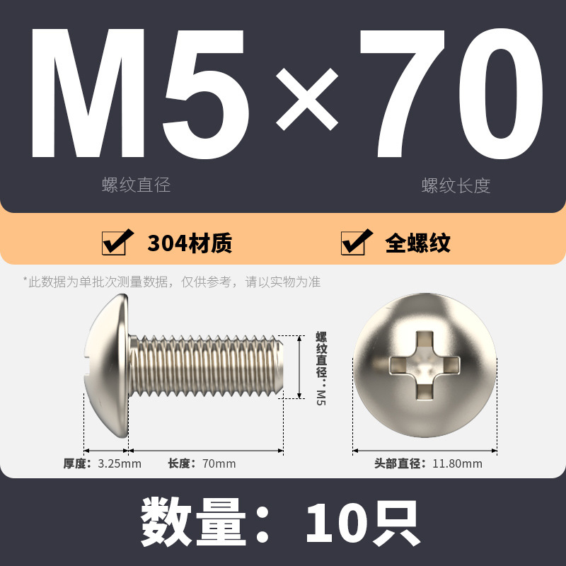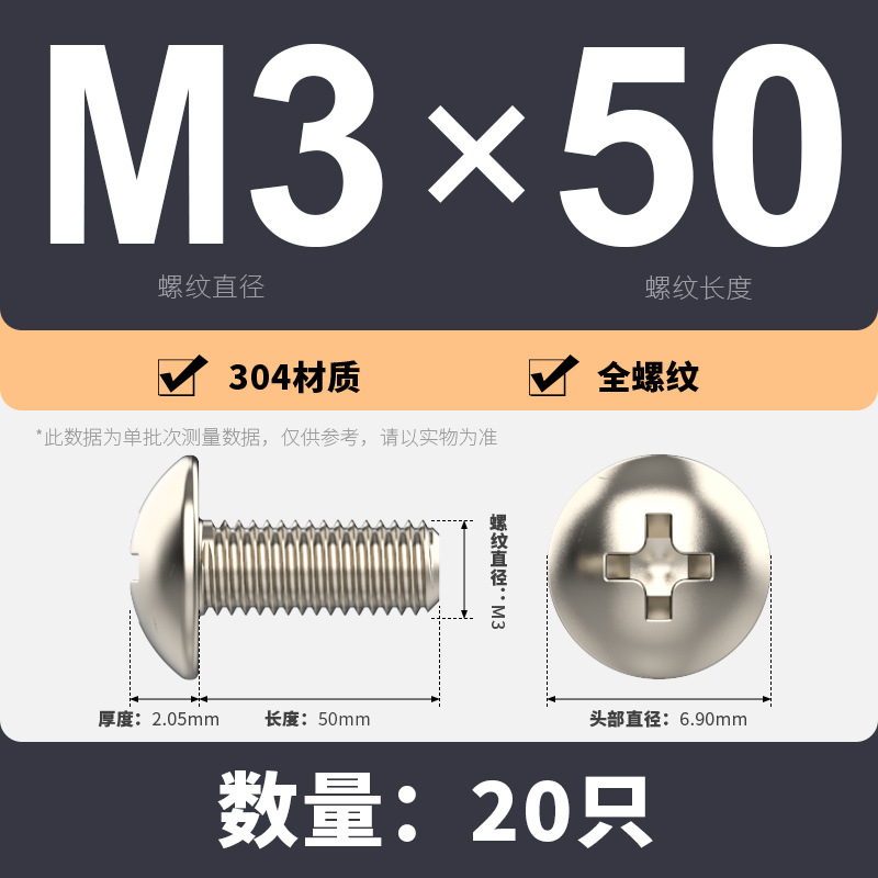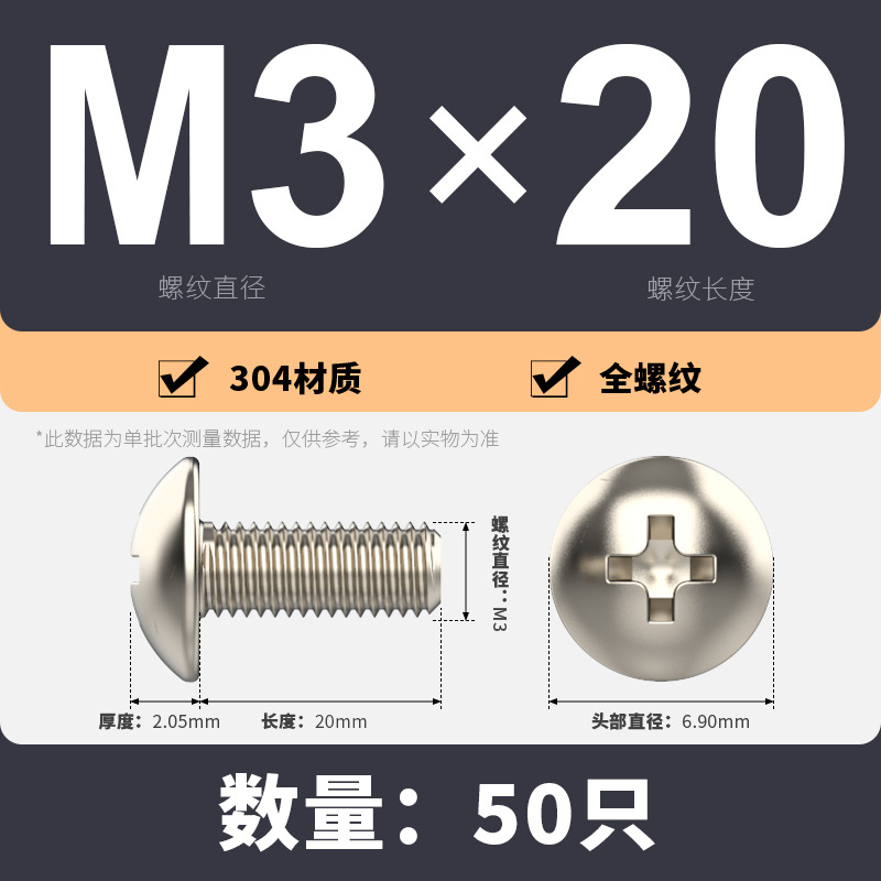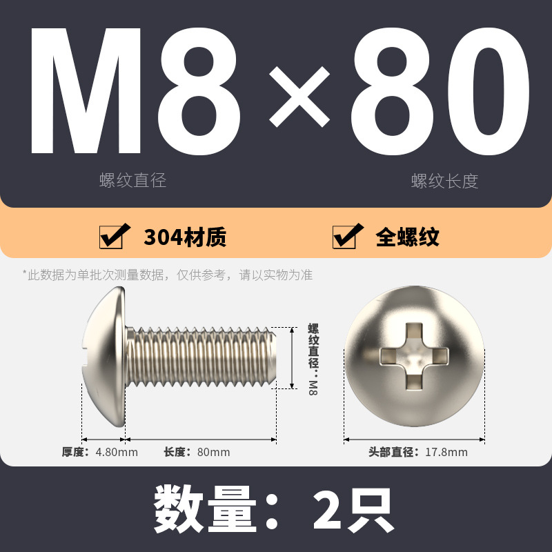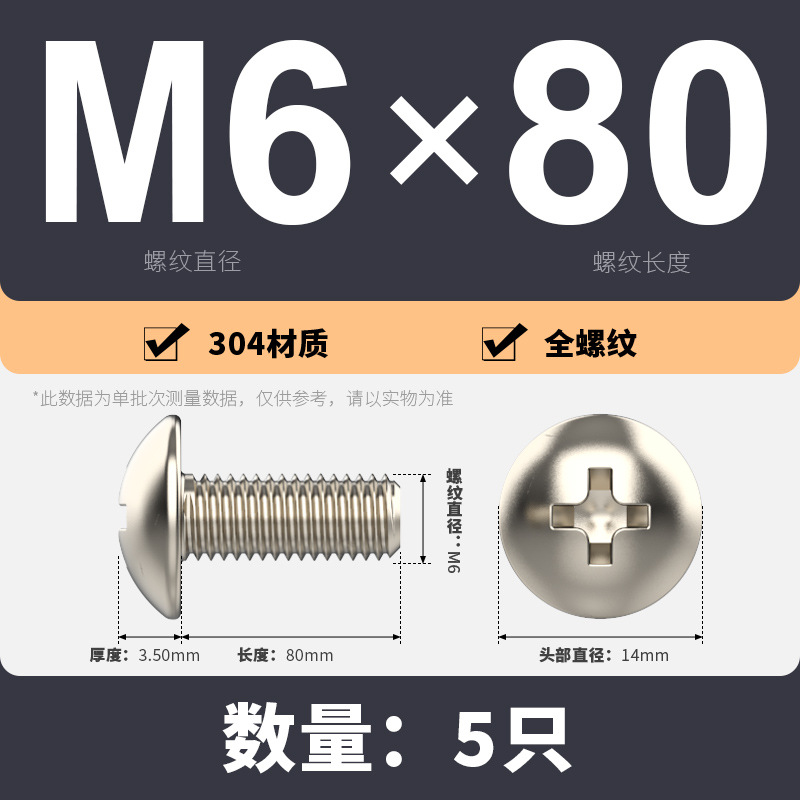 304 스테인레스 스틸 대형 플랫 헤드 스크류 크로스 홈 머신 스크류 하프 우산 라운드 헤드 버섯 헤드 볼트 M2M3M4M5M6M8