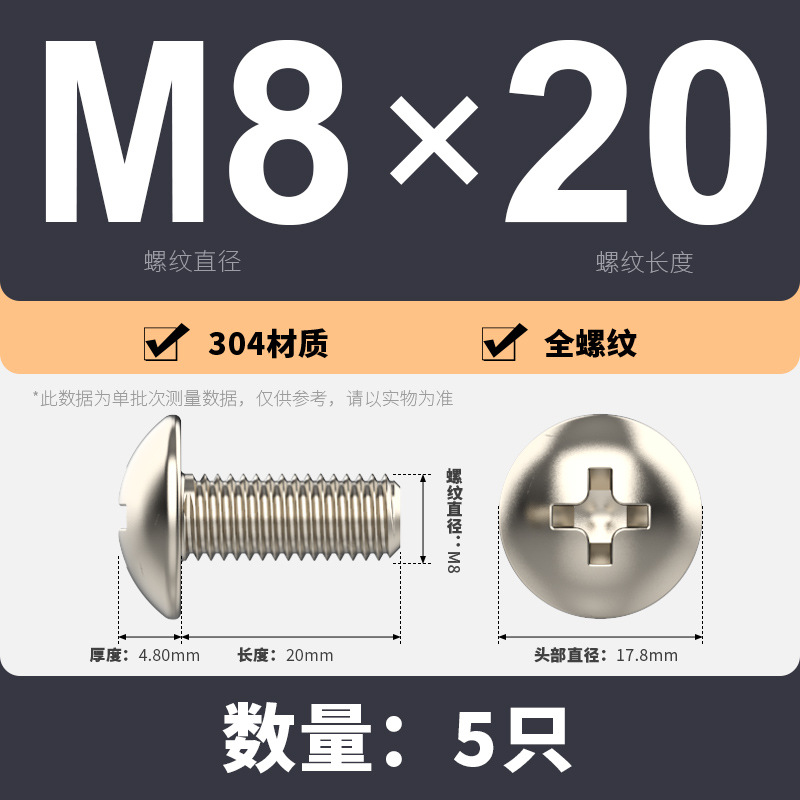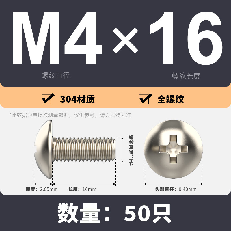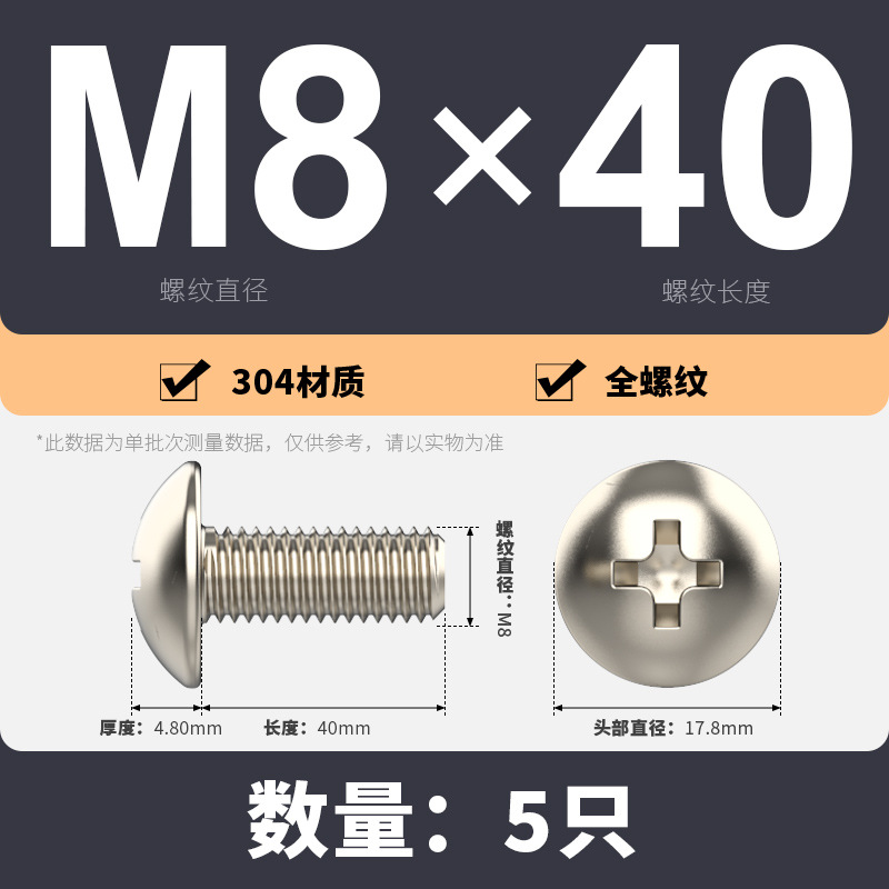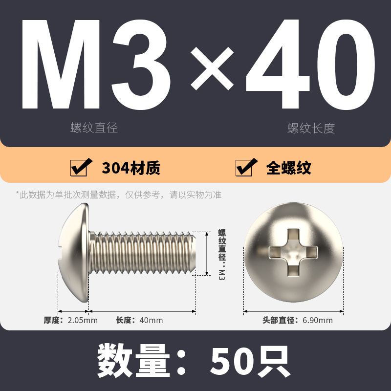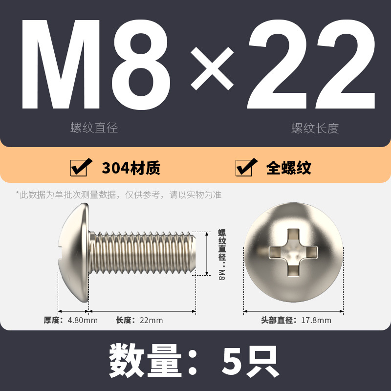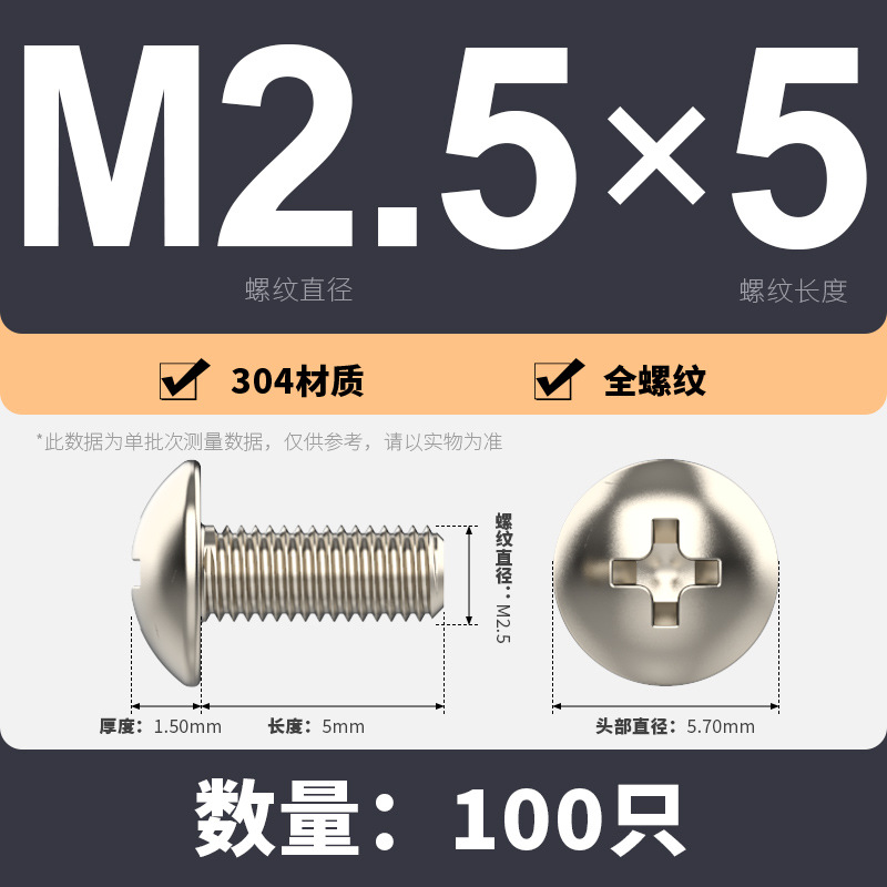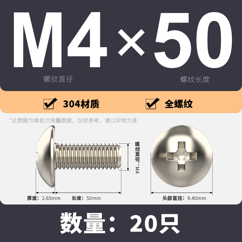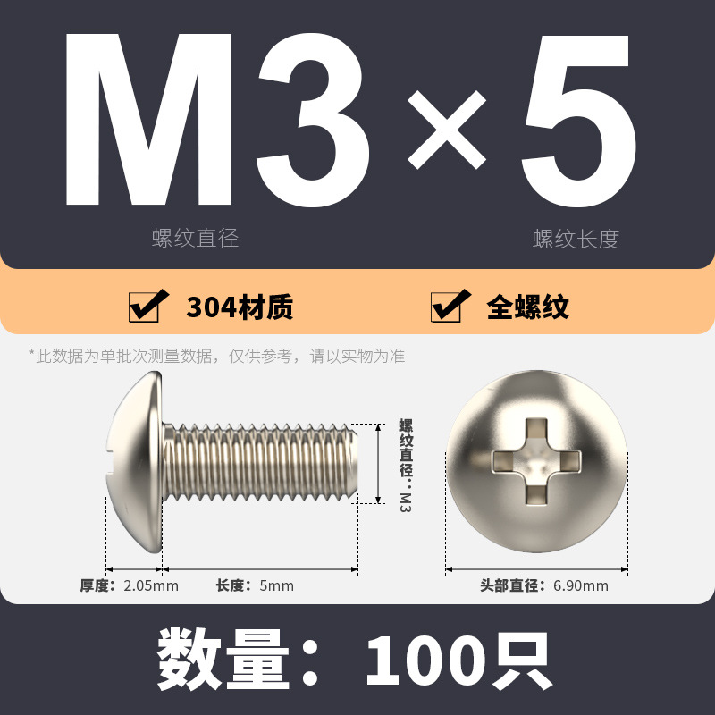 304 스테인레스 스틸 대형 플랫 헤드 스크류 크로스 홈 머신 스크류 하프 우산 라운드 헤드 버섯 헤드 볼트 M2M3M4M5M6M8