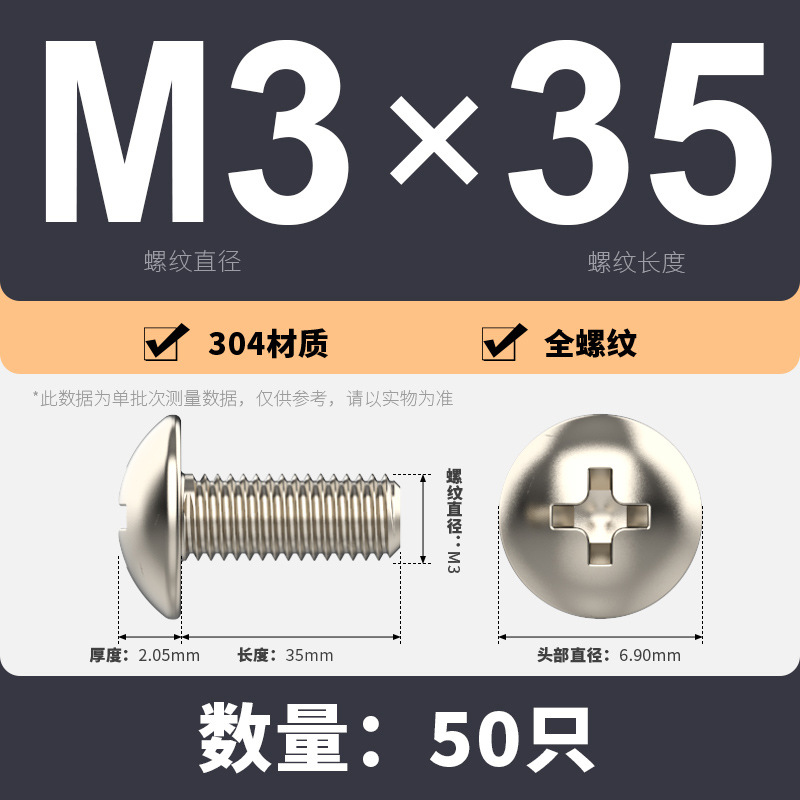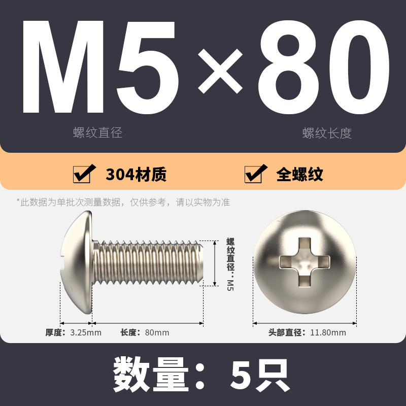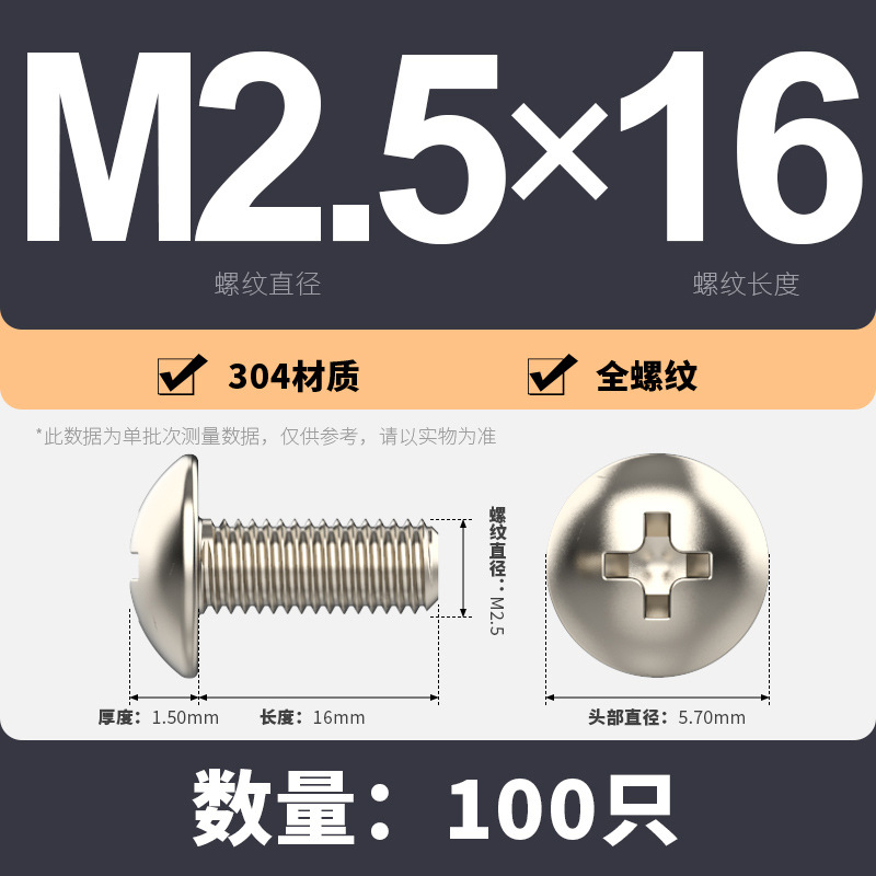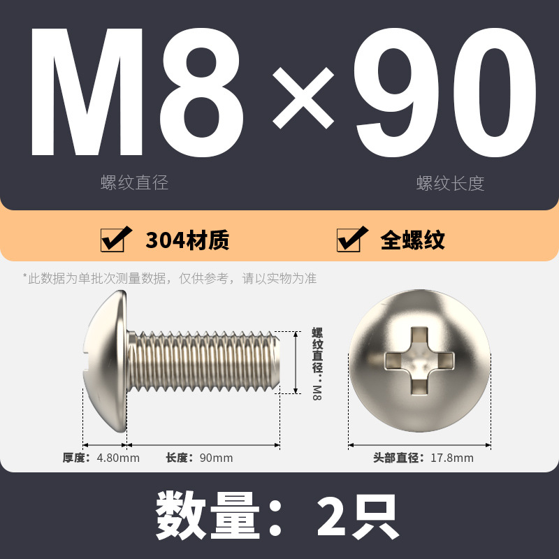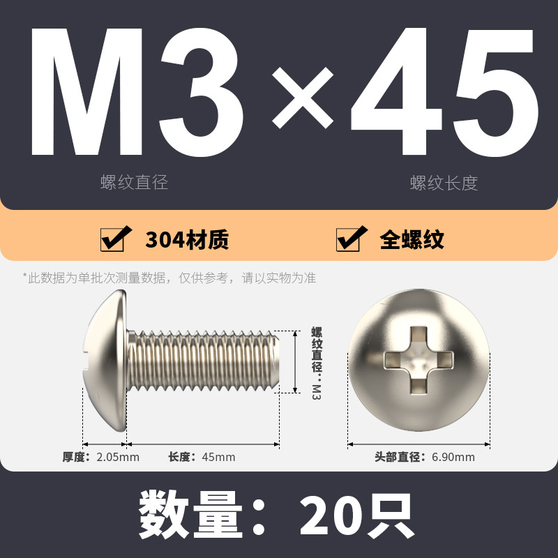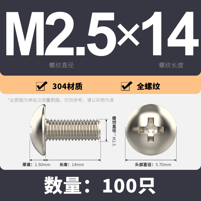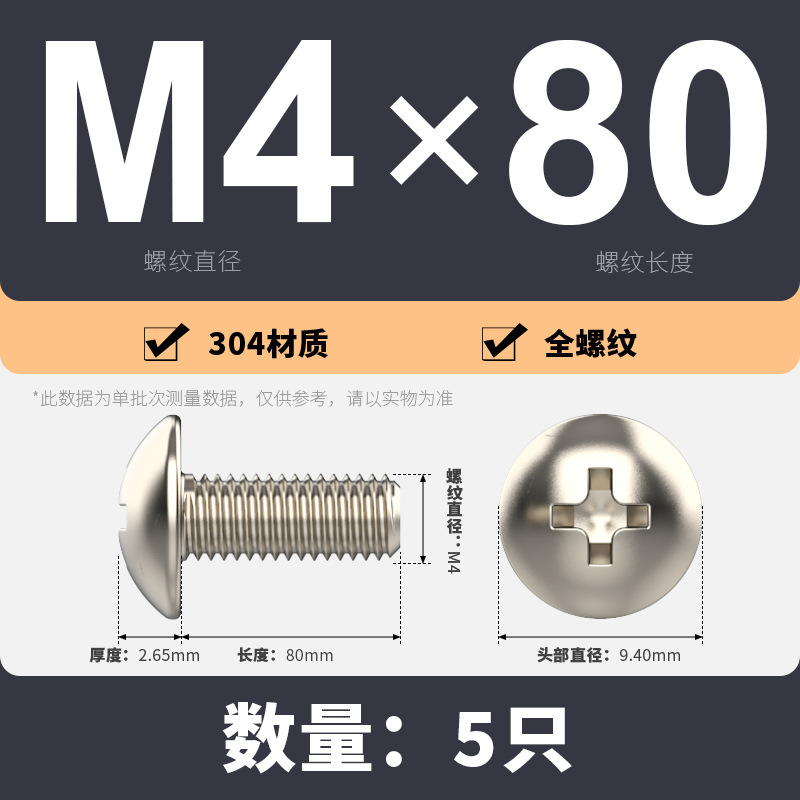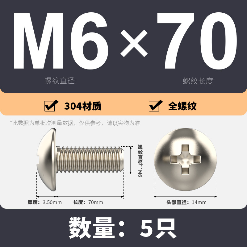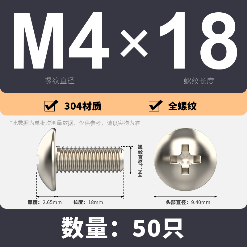 304 스테인레스 스틸 대형 플랫 헤드 스크류 크로스 홈 머신 스크류 하프 우산 라운드 헤드 버섯 헤드 볼트 M2M3M4M5M6M8