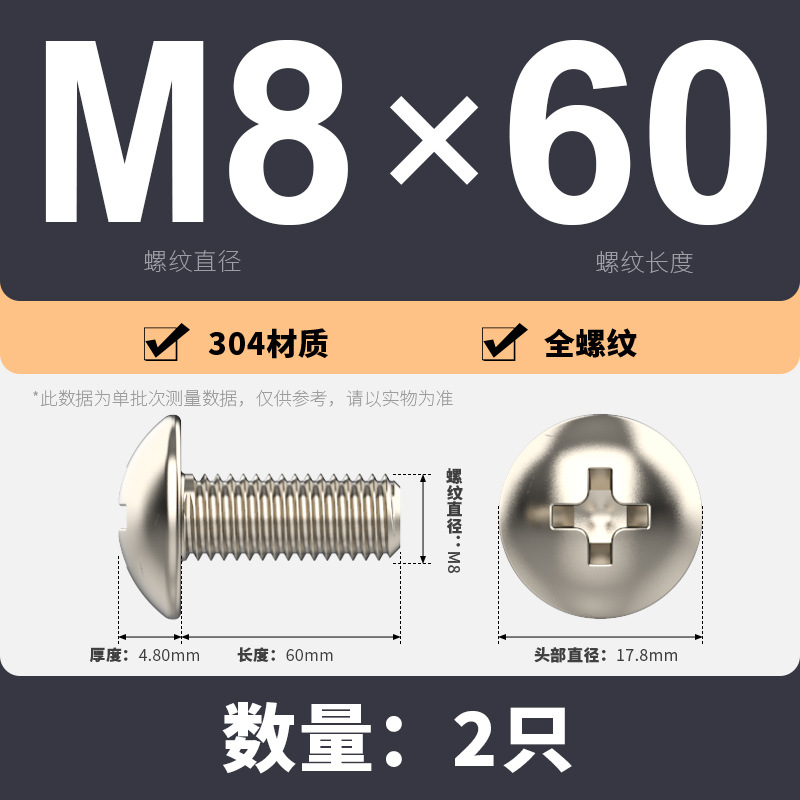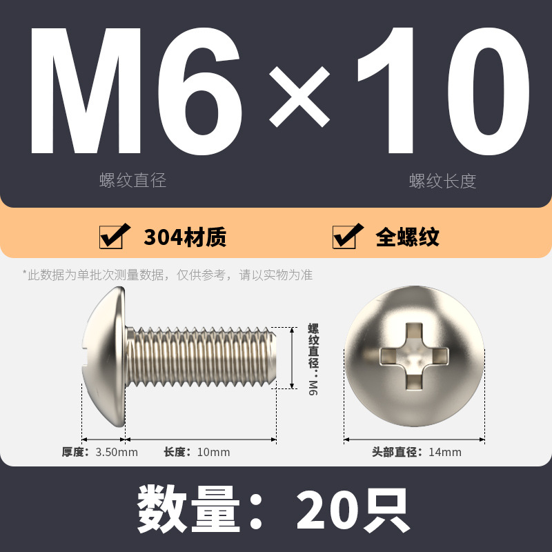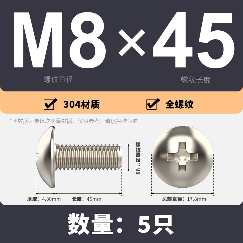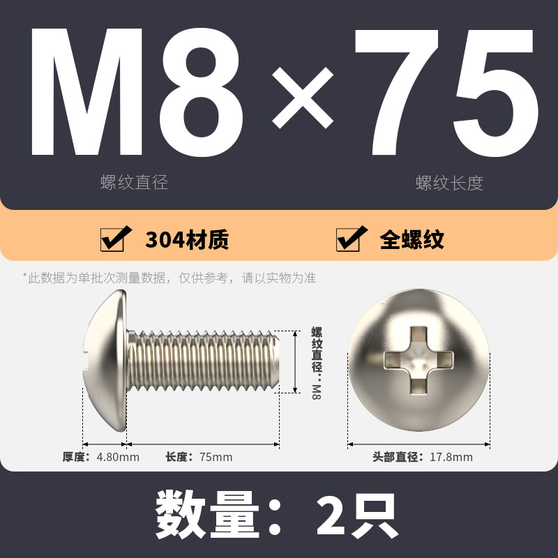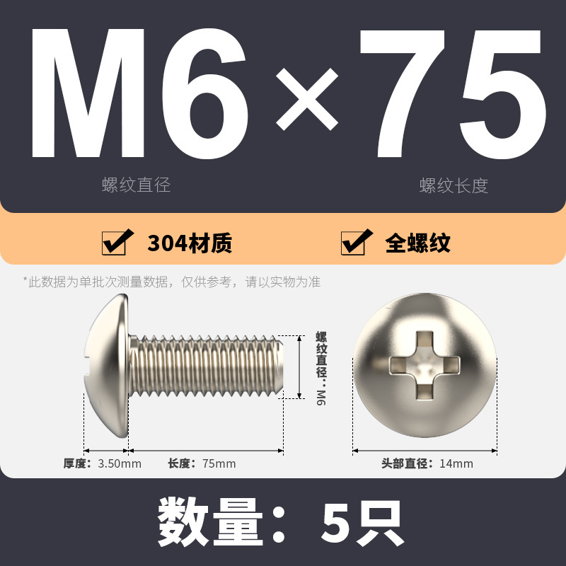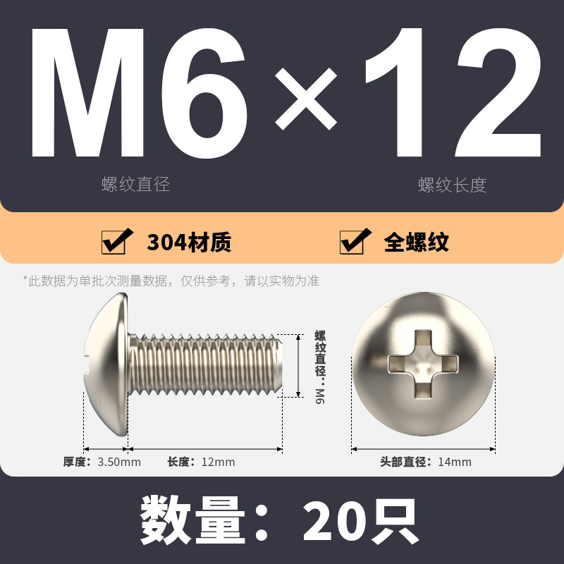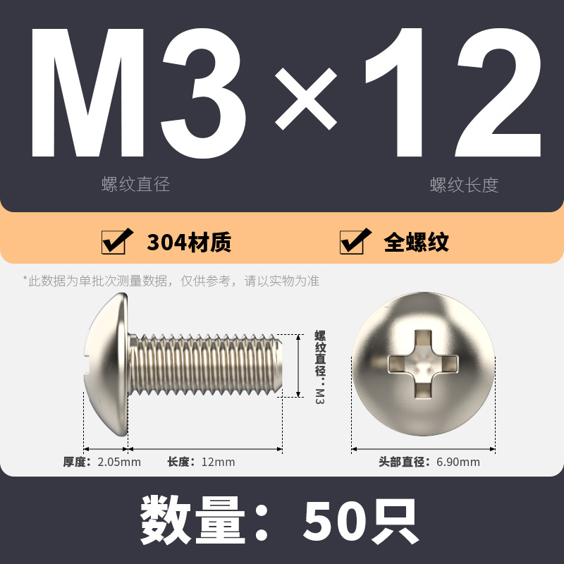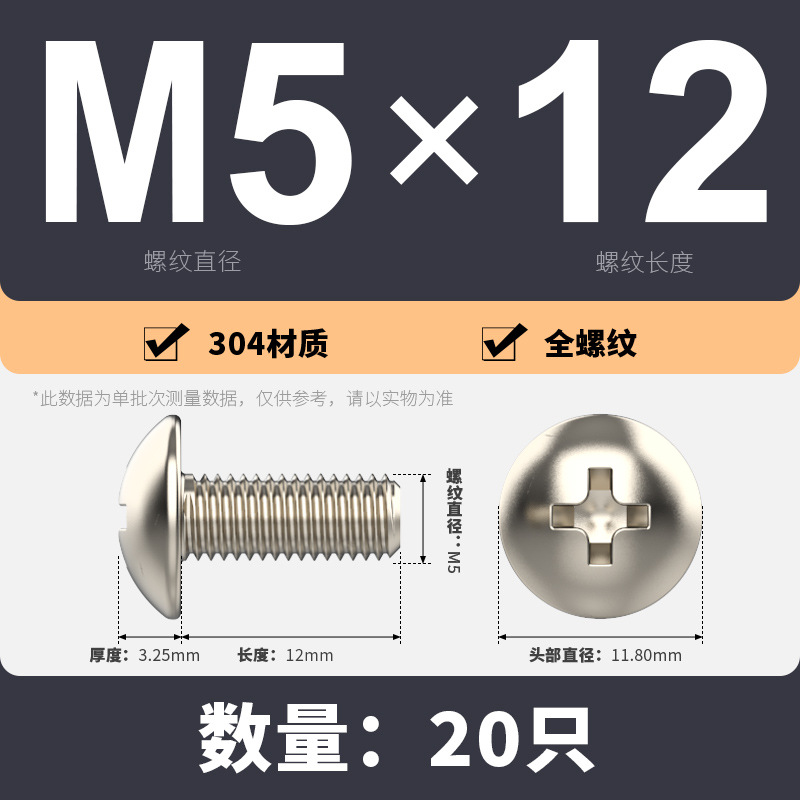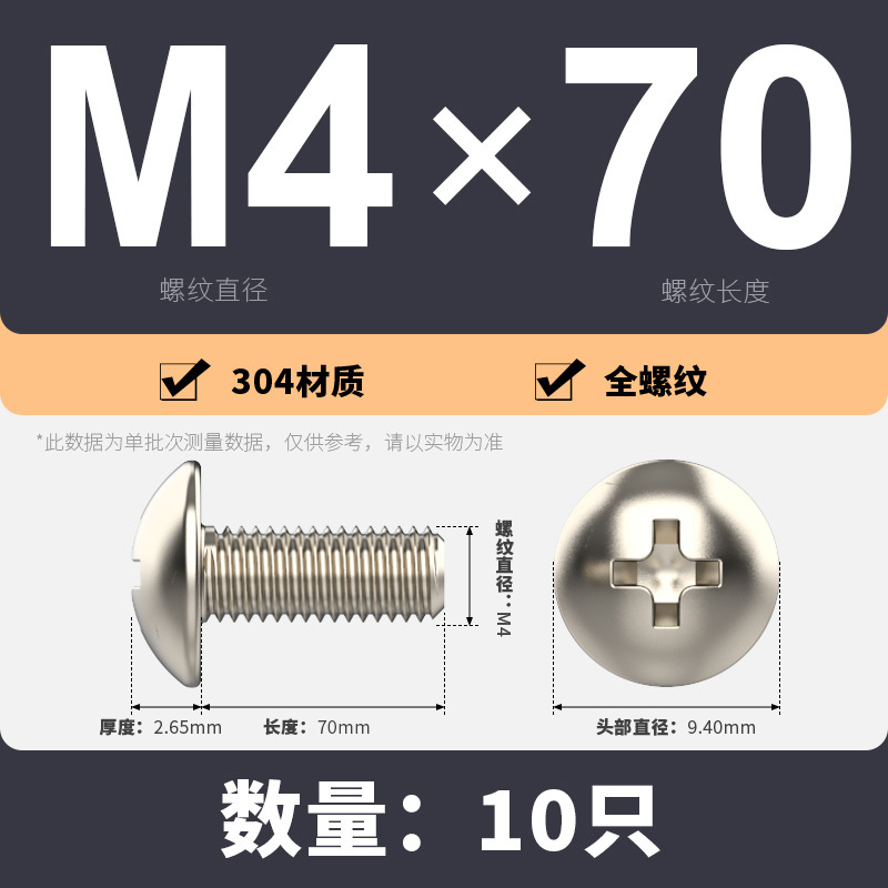 304 스테인레스 스틸 대형 플랫 헤드 스크류 크로스 홈 머신 스크류 하프 우산 라운드 헤드 버섯 헤드 볼트 M2M3M4M5M6M8