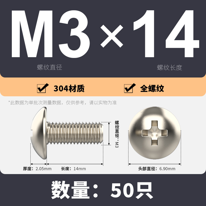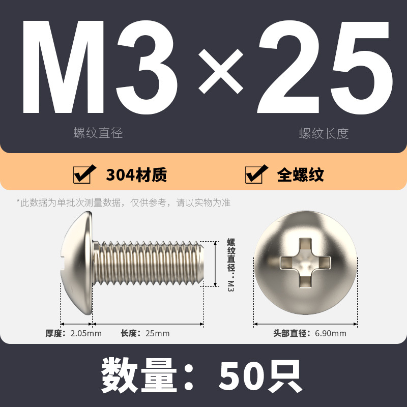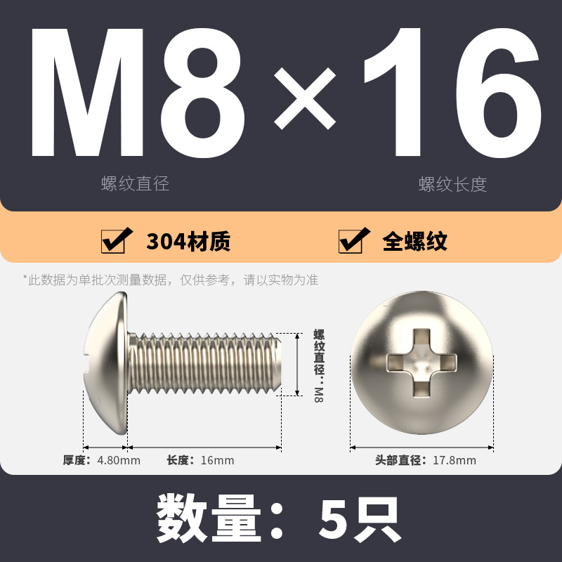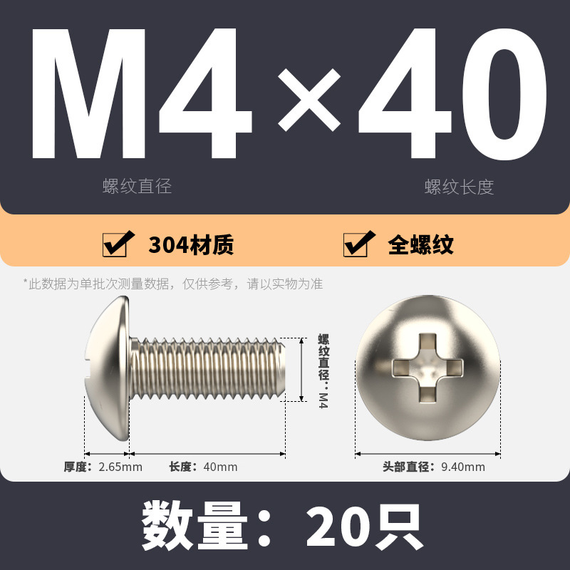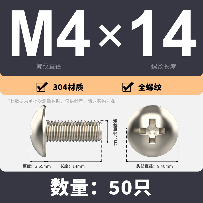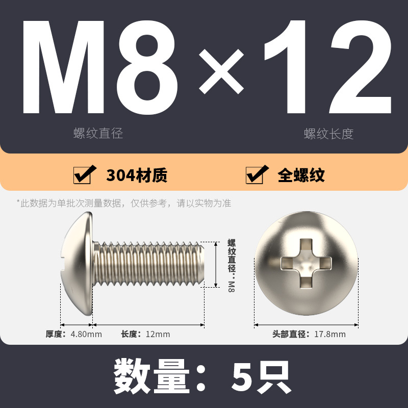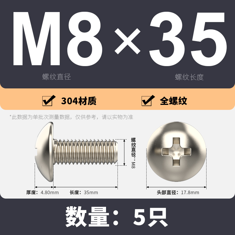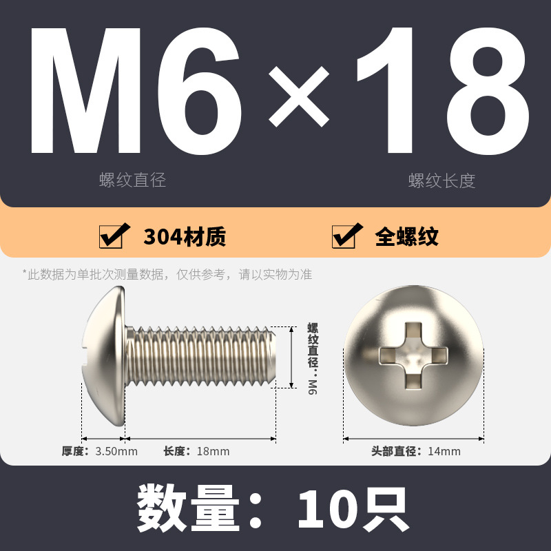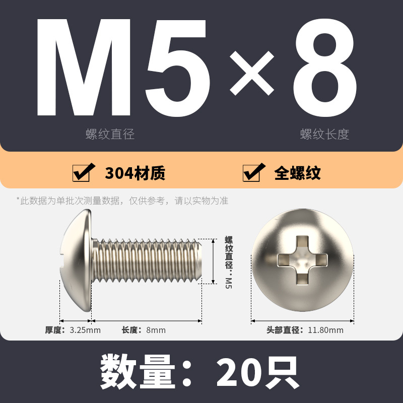 304 스테인레스 스틸 대형 플랫 헤드 스크류 크로스 홈 머신 스크류 하프 우산 라운드 헤드 버섯 헤드 볼트 M2M3M4M5M6M8
