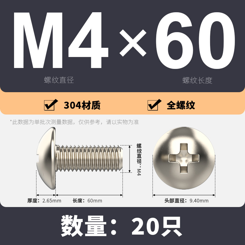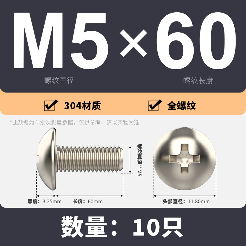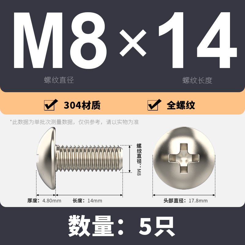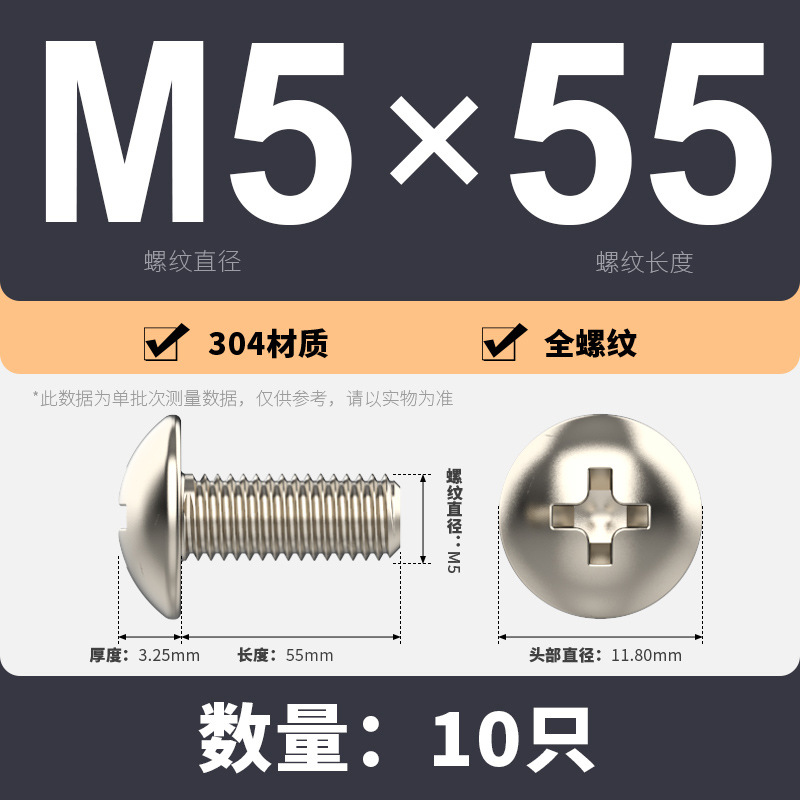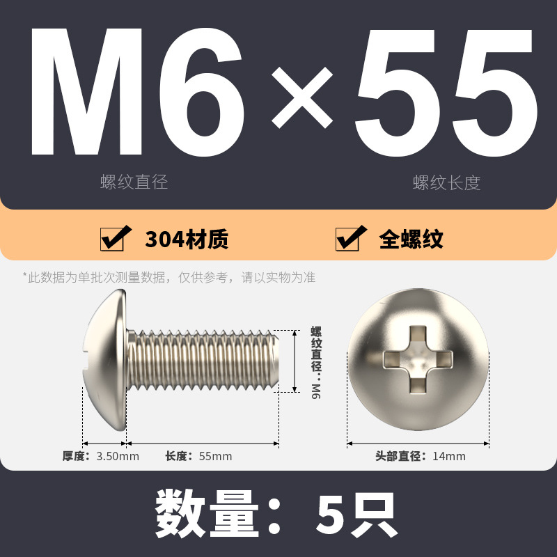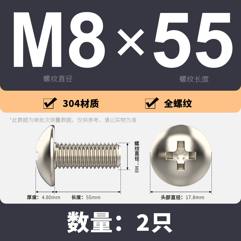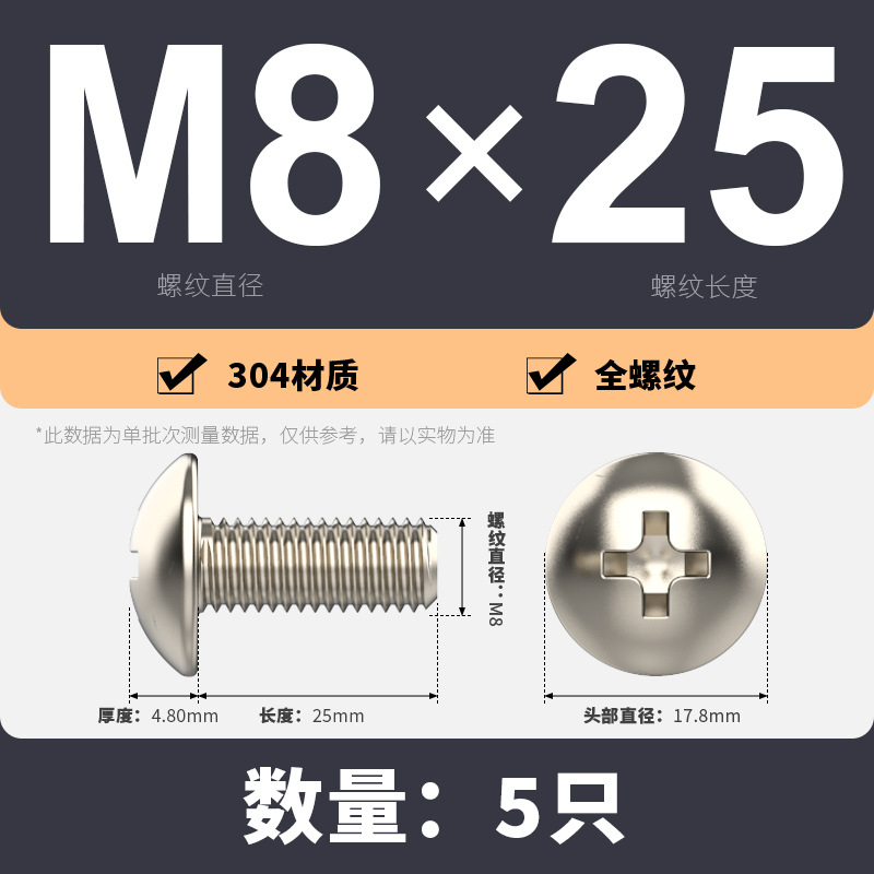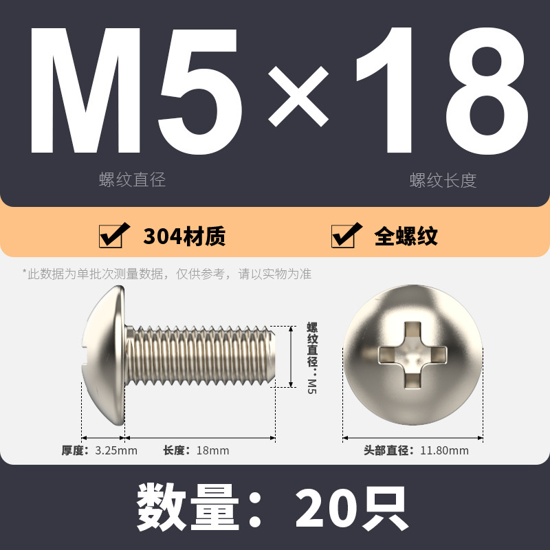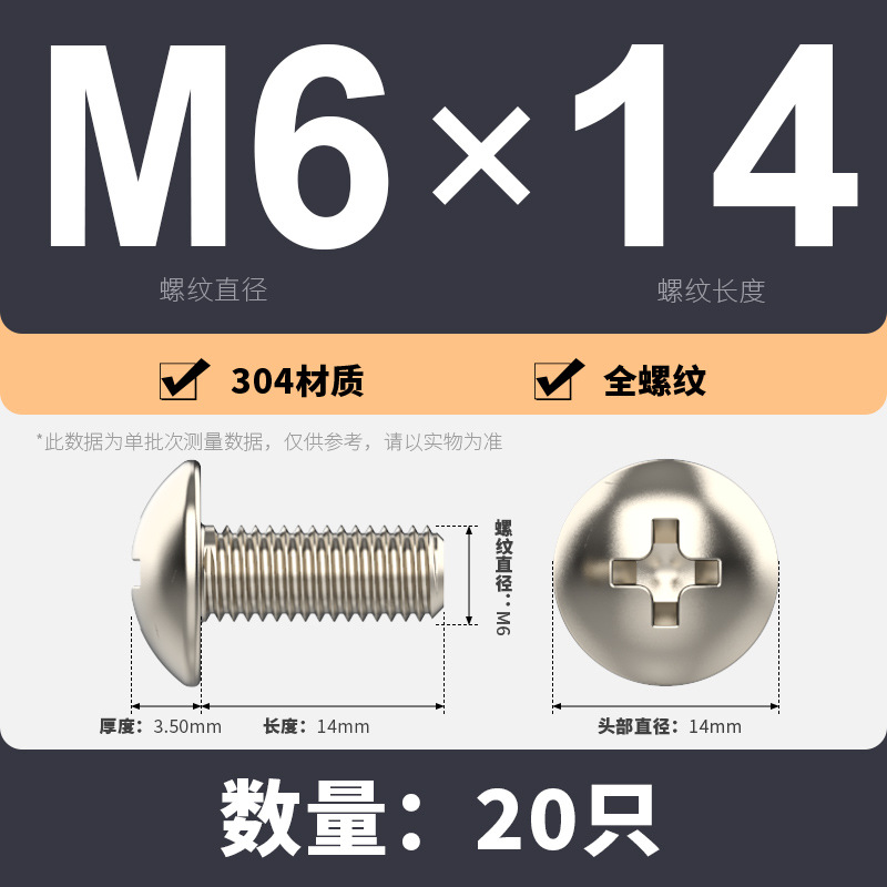 304 스테인레스 스틸 대형 플랫 헤드 스크류 크로스 홈 머신 스크류 하프 우산 라운드 헤드 버섯 헤드 볼트 M2M3M4M5M6M8