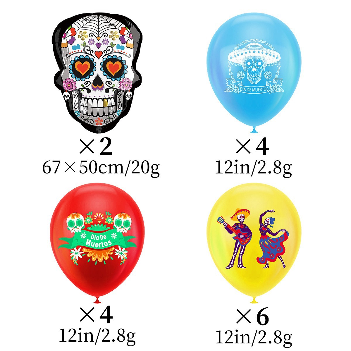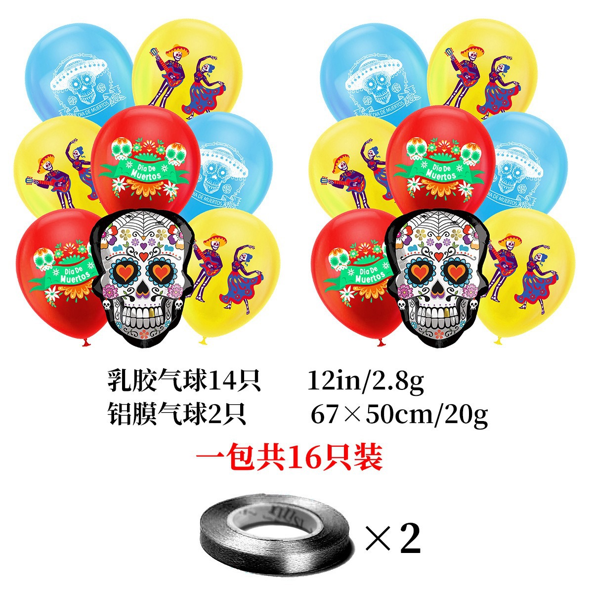 16 조각 세트 크로스 국경 멕시코 죽은 날 파티 장식 죽은 해골 라텍스 풍선 세트 도매