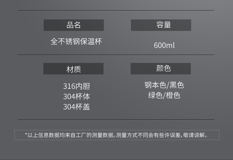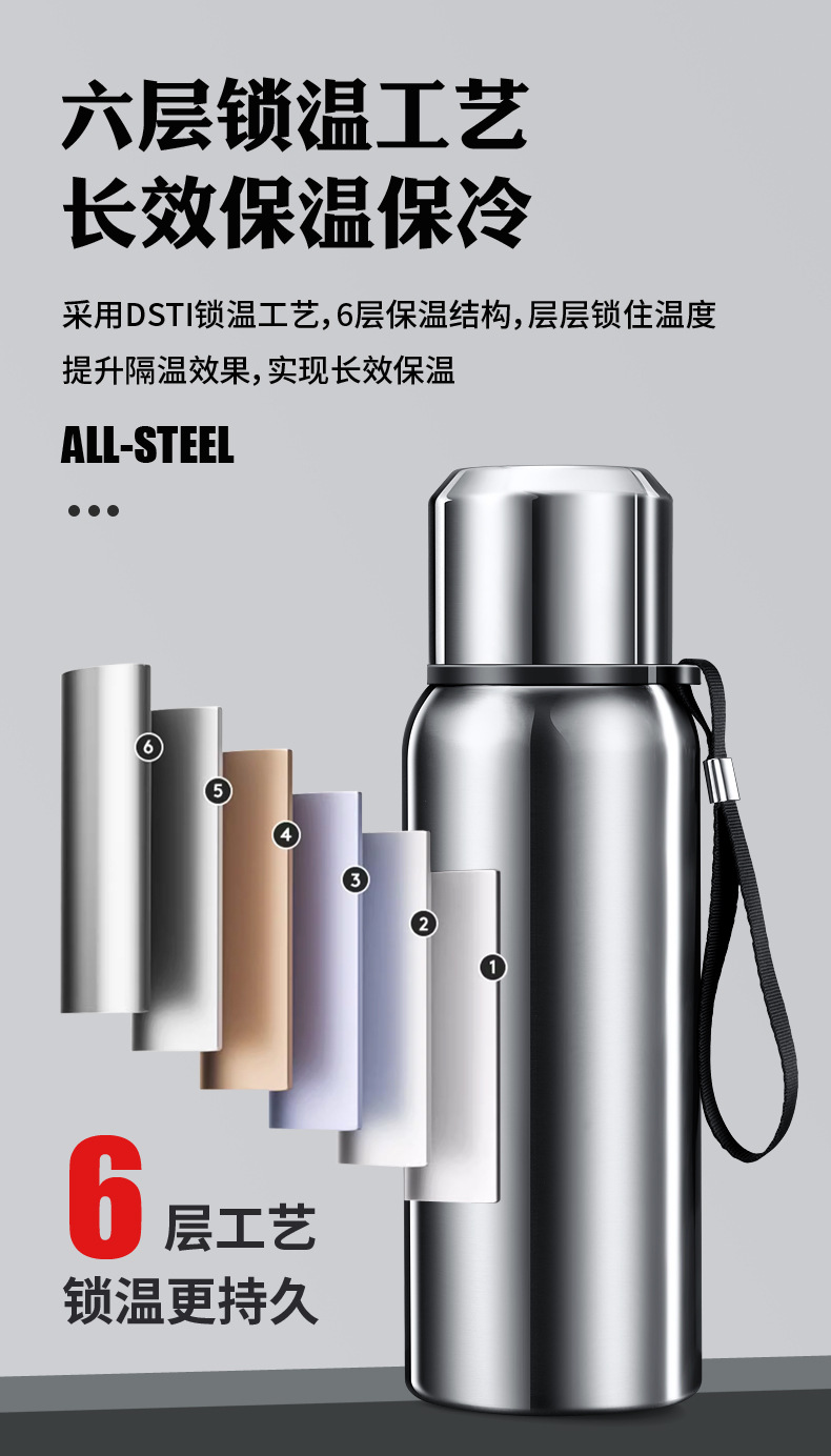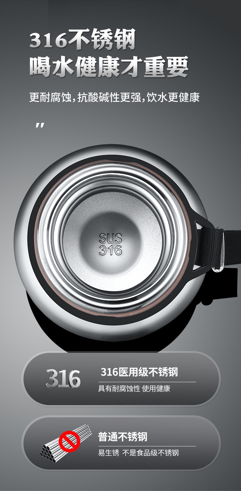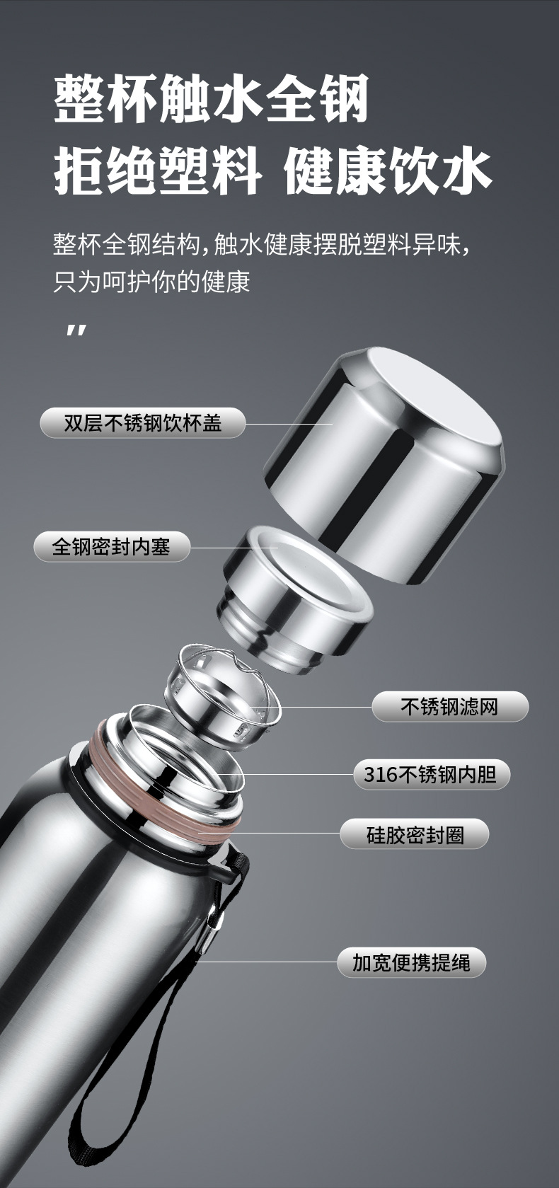 316 스테인레스 스틸 라이너 진공 올 스틸 보온병 남성 야외 여행 등산 휴대용 대용량 보온병