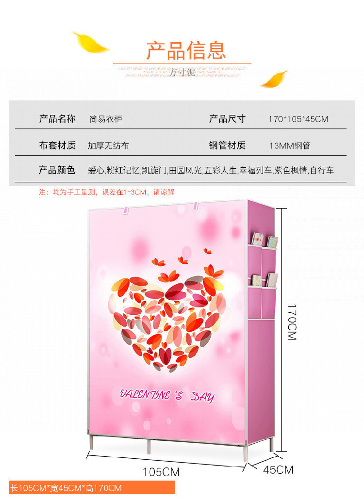 간단한 천 옷장 대형 두꺼운 옷장 강관 강화 강철 프레임 이중 옷장 기숙사 단일 접는 저장 캐비닛