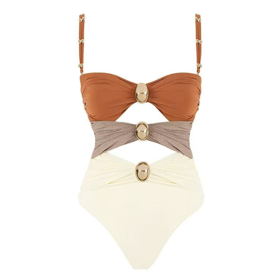 2025 유럽과 미국의 대외 무역 새로운 비키니 AliExpress 스커트 수영복 아마존 단색 스티칭 원피스 수영복 여성