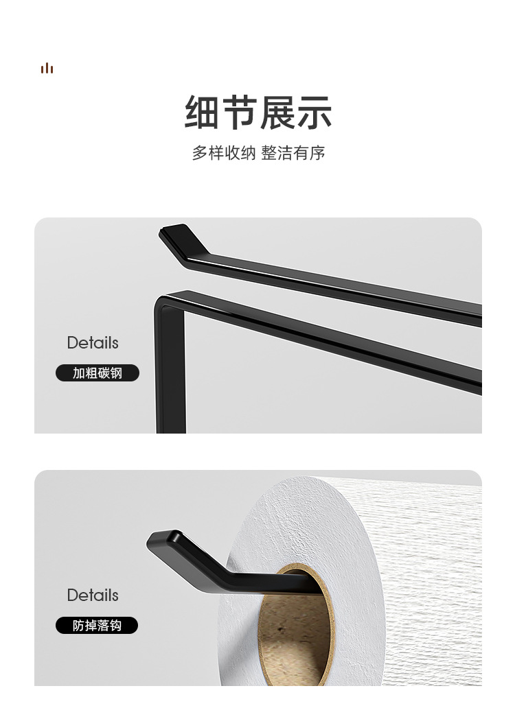 주방 종이 타월 랙 캐비닛 종이 옷걸이 보존 필름 저장 가정용 롤 종이 펀치 프리 게으른 헝겊 걸이로드