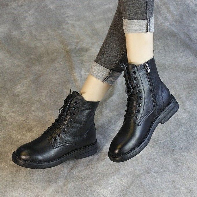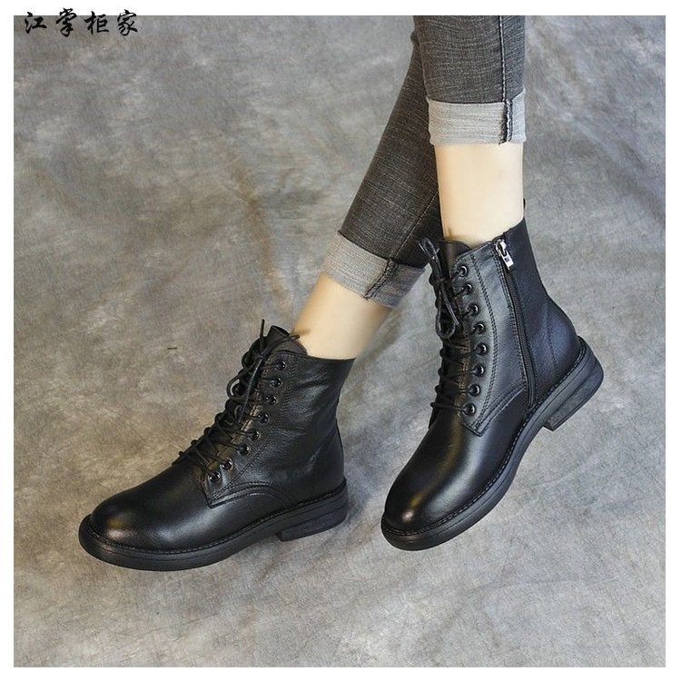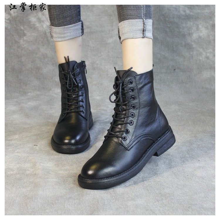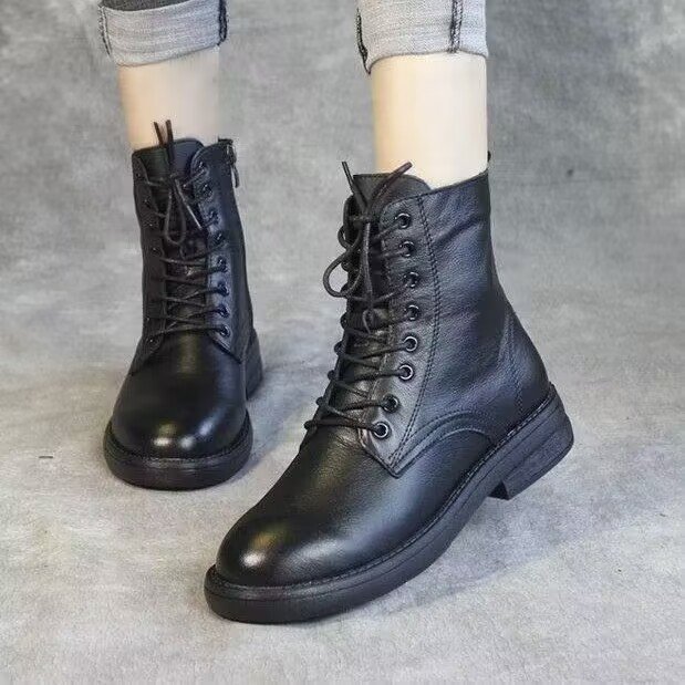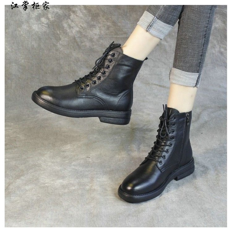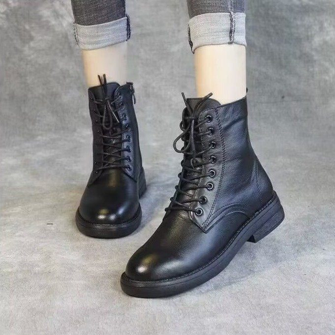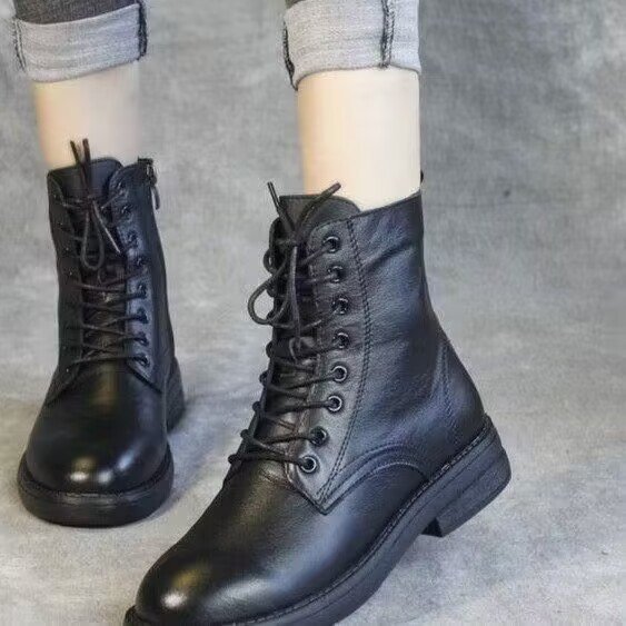마틴 부츠 여성 2024 새로운 봄과 가을 소프트 솔 풀 카우보이 싱글 가죽 부츠 가죽 짧은 부츠 부드러운 가죽 여성 가죽 신발스토어 가기