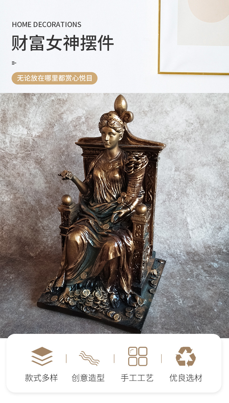 새로운 부의 여신 동상 사무실 입구 홈 장식 수지 공예 장식품 도매 제조 업체 도면스토어 가기