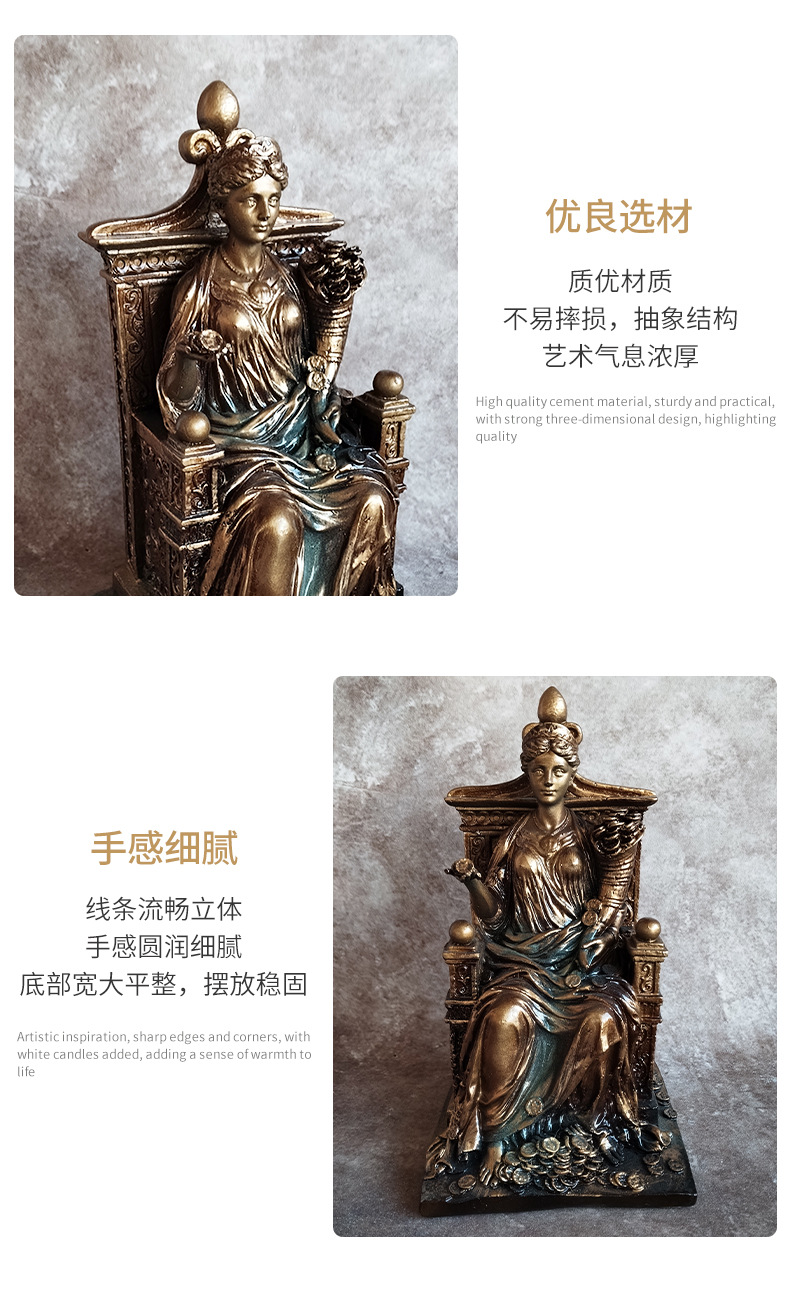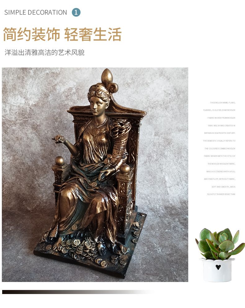새로운 부의 여신 동상 사무실 입구 홈 장식 수지 공예 장식품 도매 제조 업체 도면