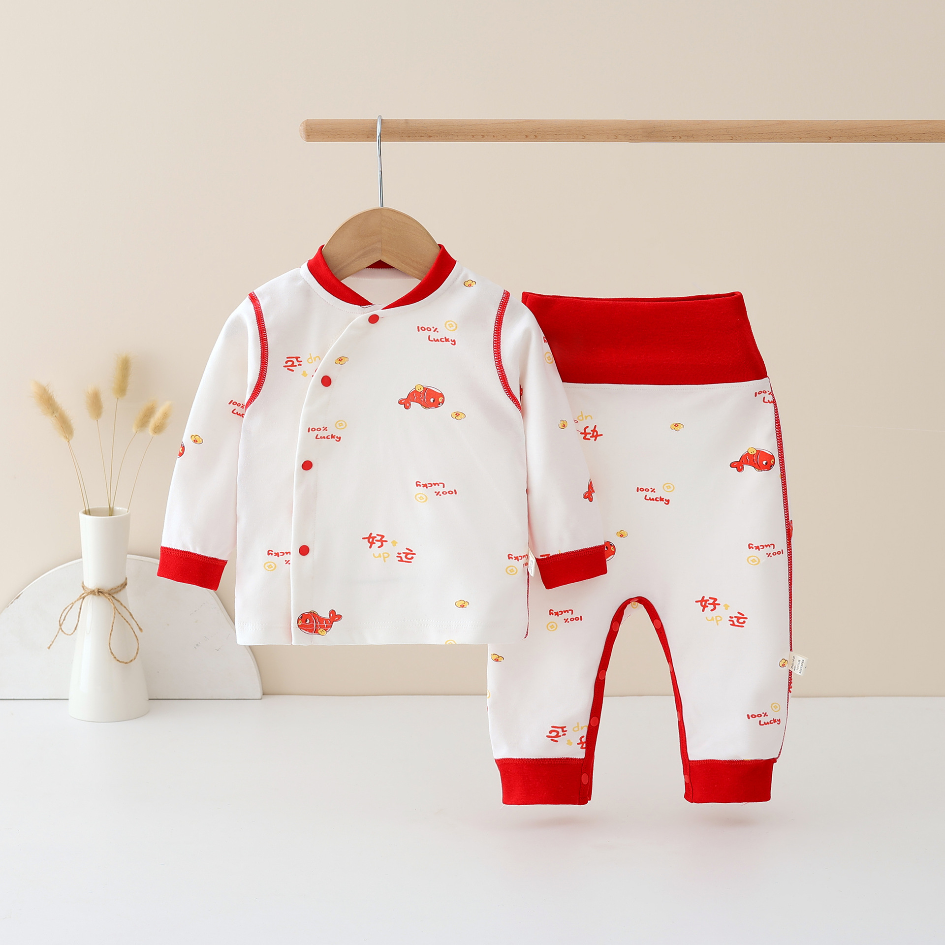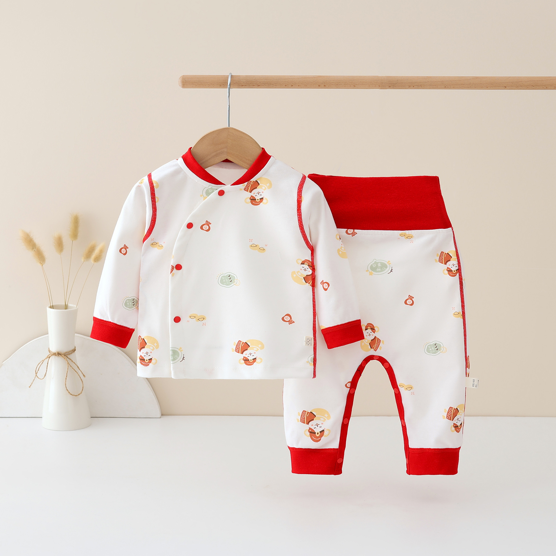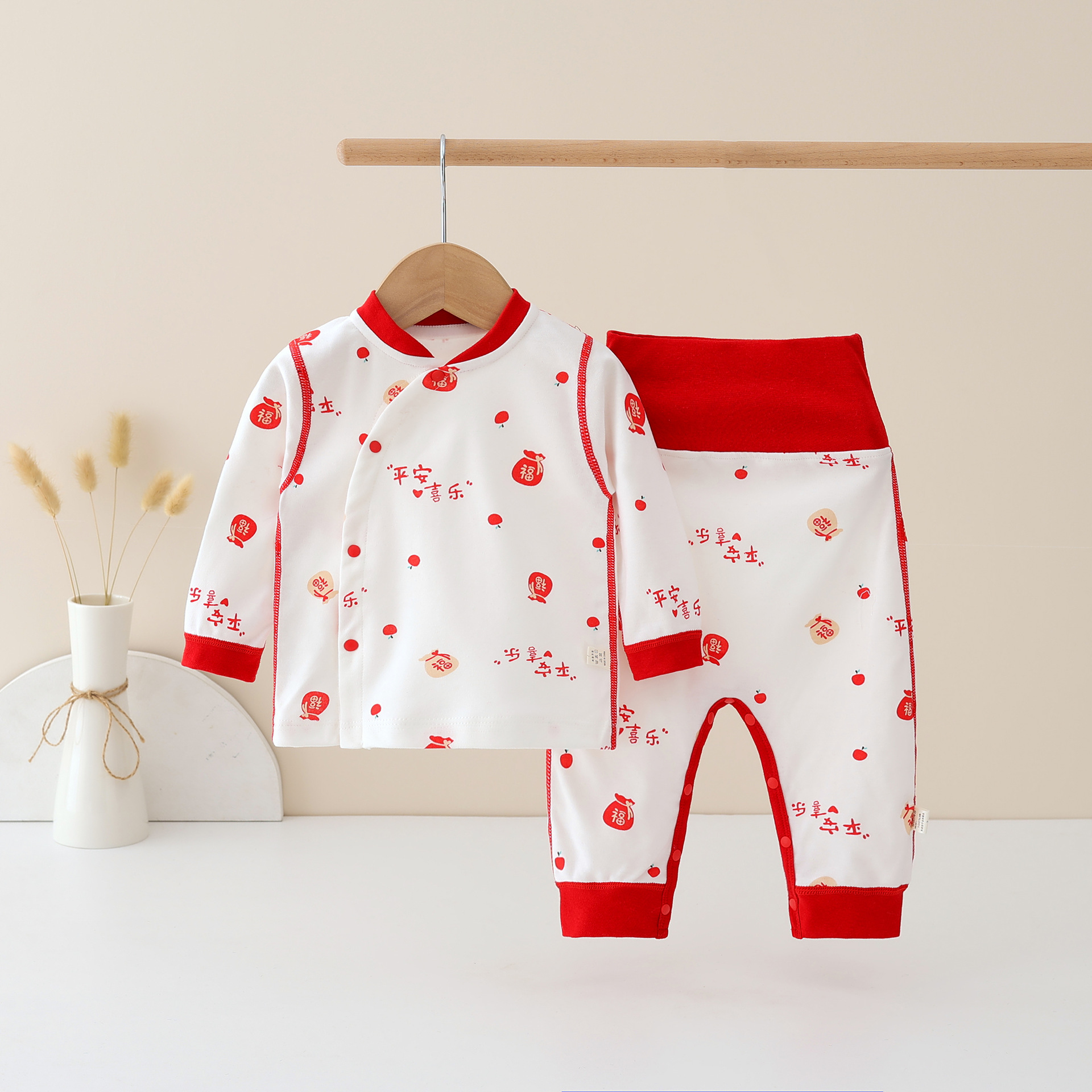 유아 신년 의류 순면 클래스 아기의 가을 옷 가을 바지 높은 허리 배 보호 세트 어린이 속옷 신년 옷스토어 가기