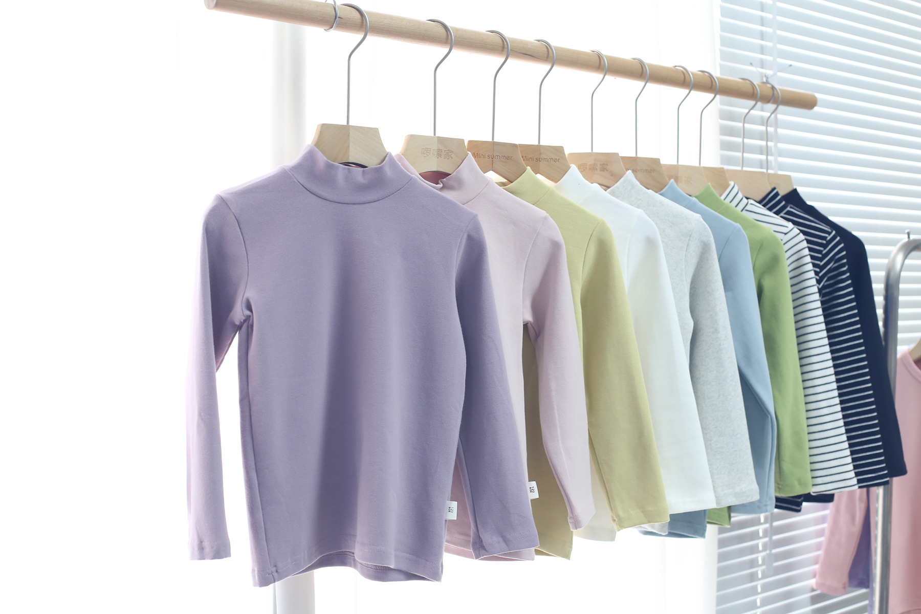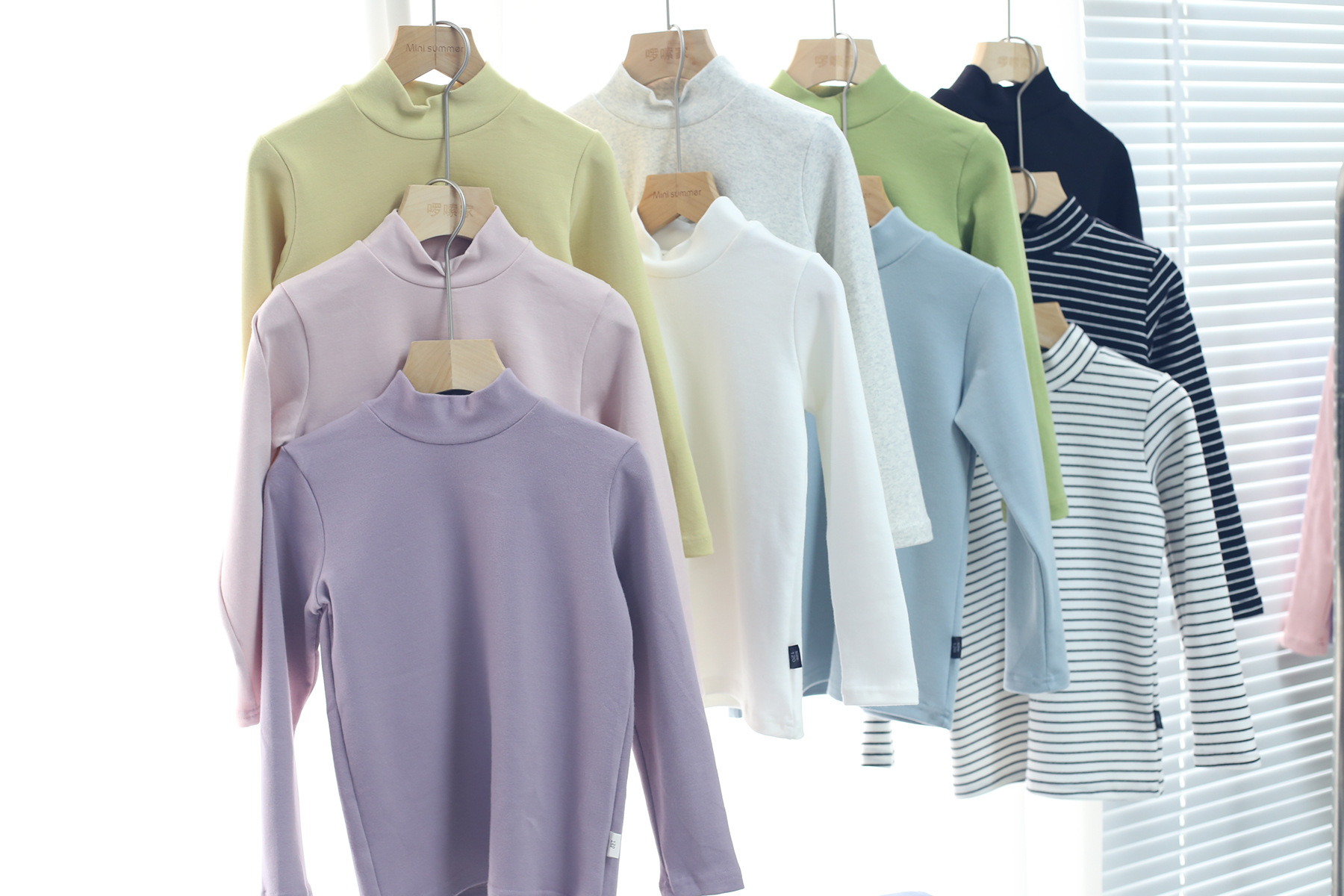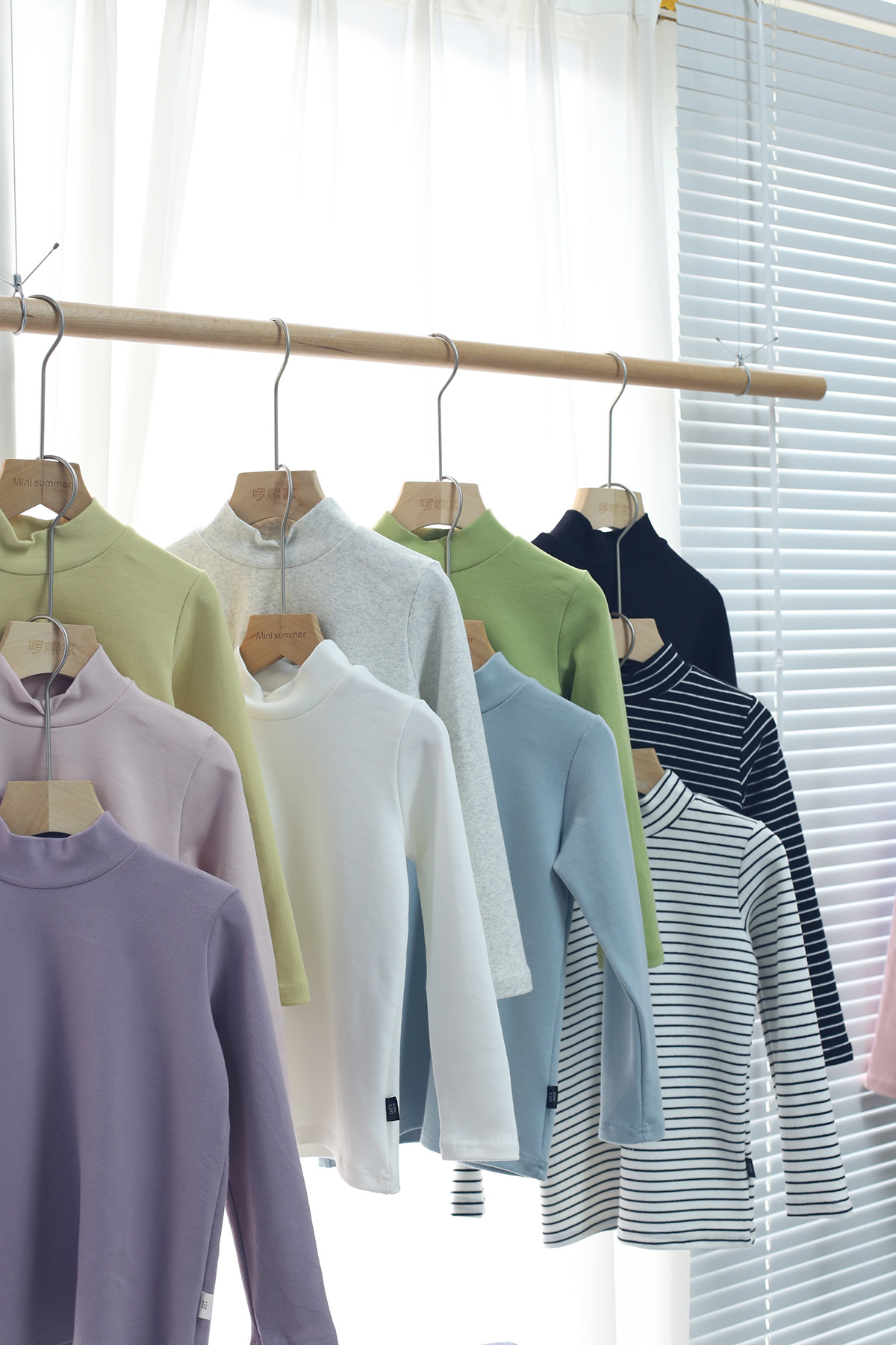 어린이 클래식 하프 하이 칼라 코튼 베이직베이스 셔츠 클래스 남학생과 여자를위한 미들 칼라 티셔츠 롱 슬리브 올 매치 코튼 샌딩스토어 가기