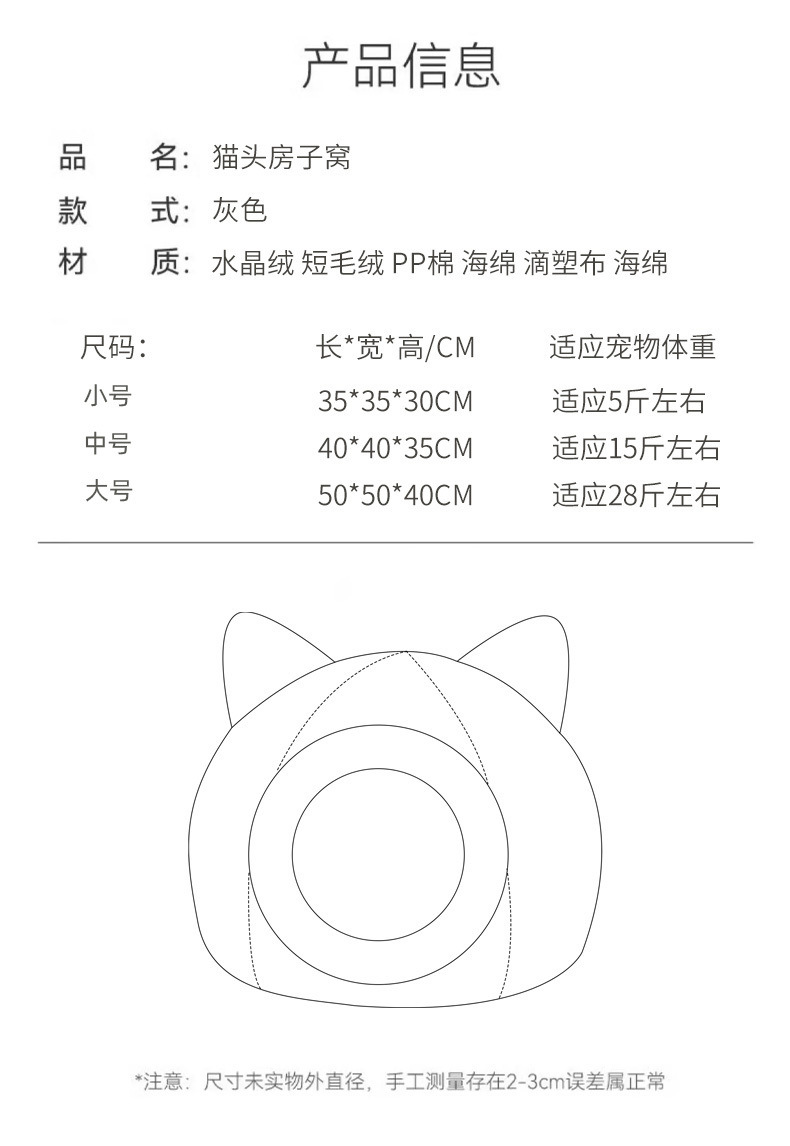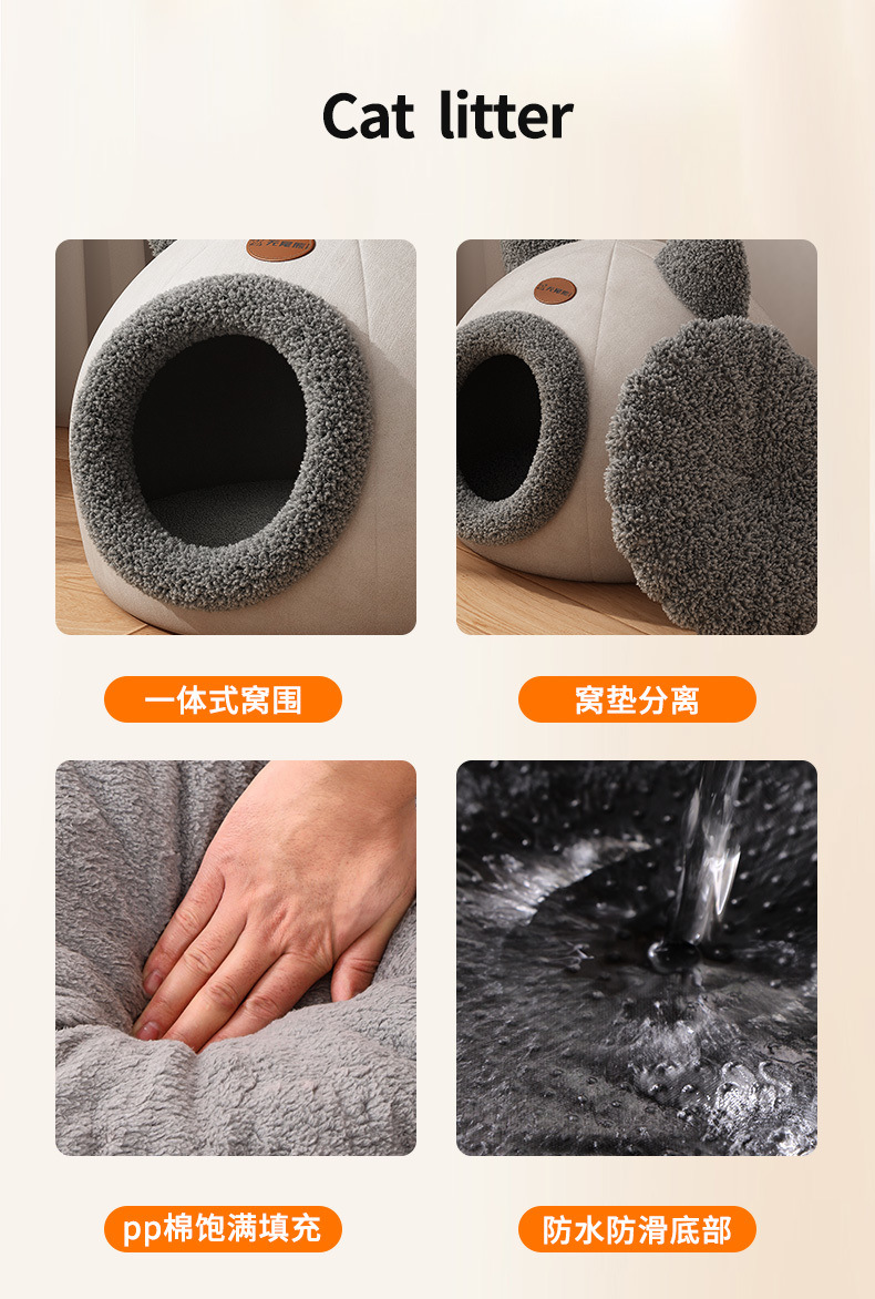 닫힌 고양이 집 고양이 둥지 겨울 따뜻한 고양이 빌라 Kennel Pomei 작은 개 애완 동물 둥지 잠자는 매트 고양이 침대