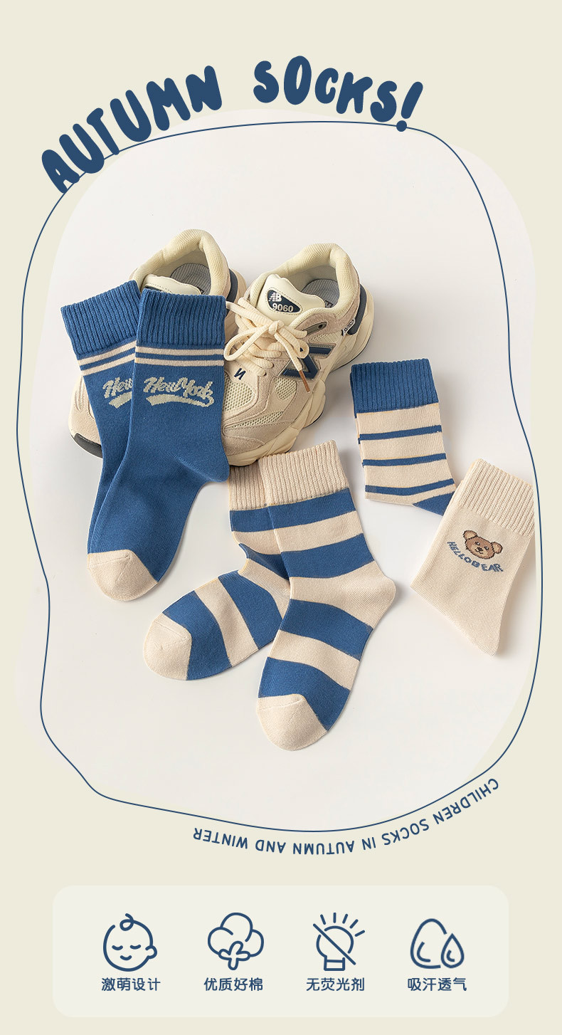 어린이 양말 봄과 가을 중대형 어린이 소년 스타킹 소녀 만화 조수 양말 편지 간단한 가을과 겨울 학생 양말 도매