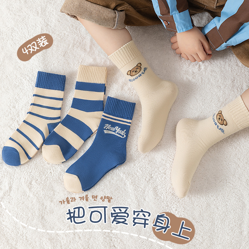 어린이 양말 봄과 가을 중대형 어린이 소년 스타킹 소녀 만화 조수 양말 편지 간단한 가을과 겨울 학생 양말 도매스토어 가기
