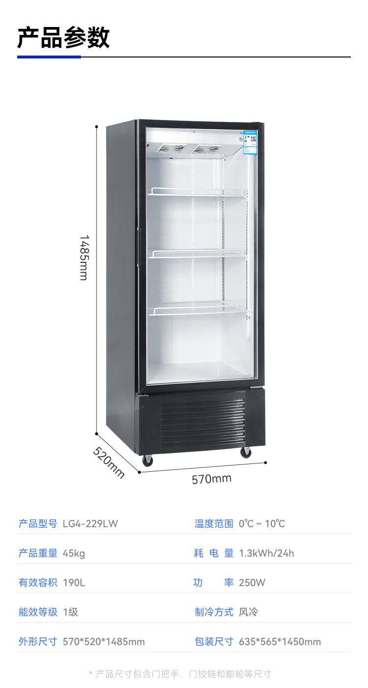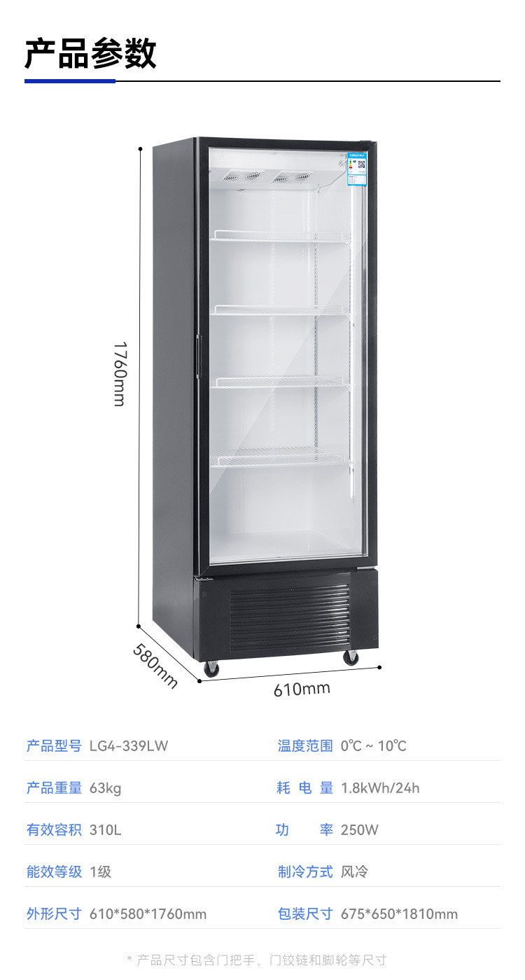 수이링 냉동고 수직형 신선 보관 캐비닛 냉장 단문형 무결빙 디스플레이 캐비닛 공장 직영 상업용 냉장고