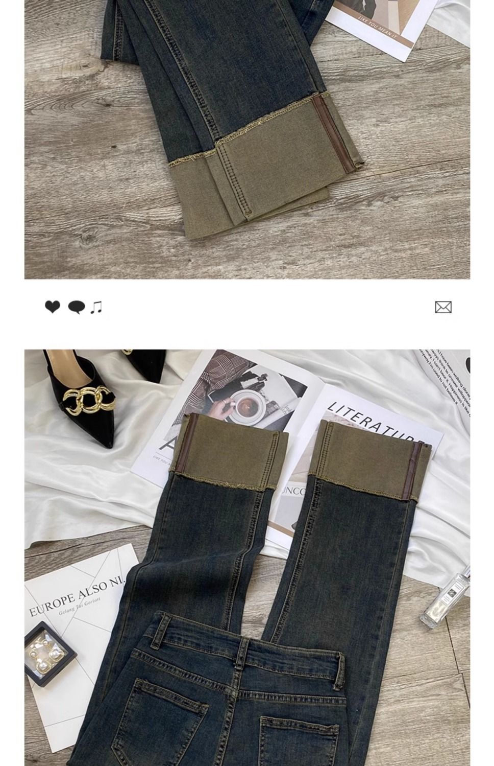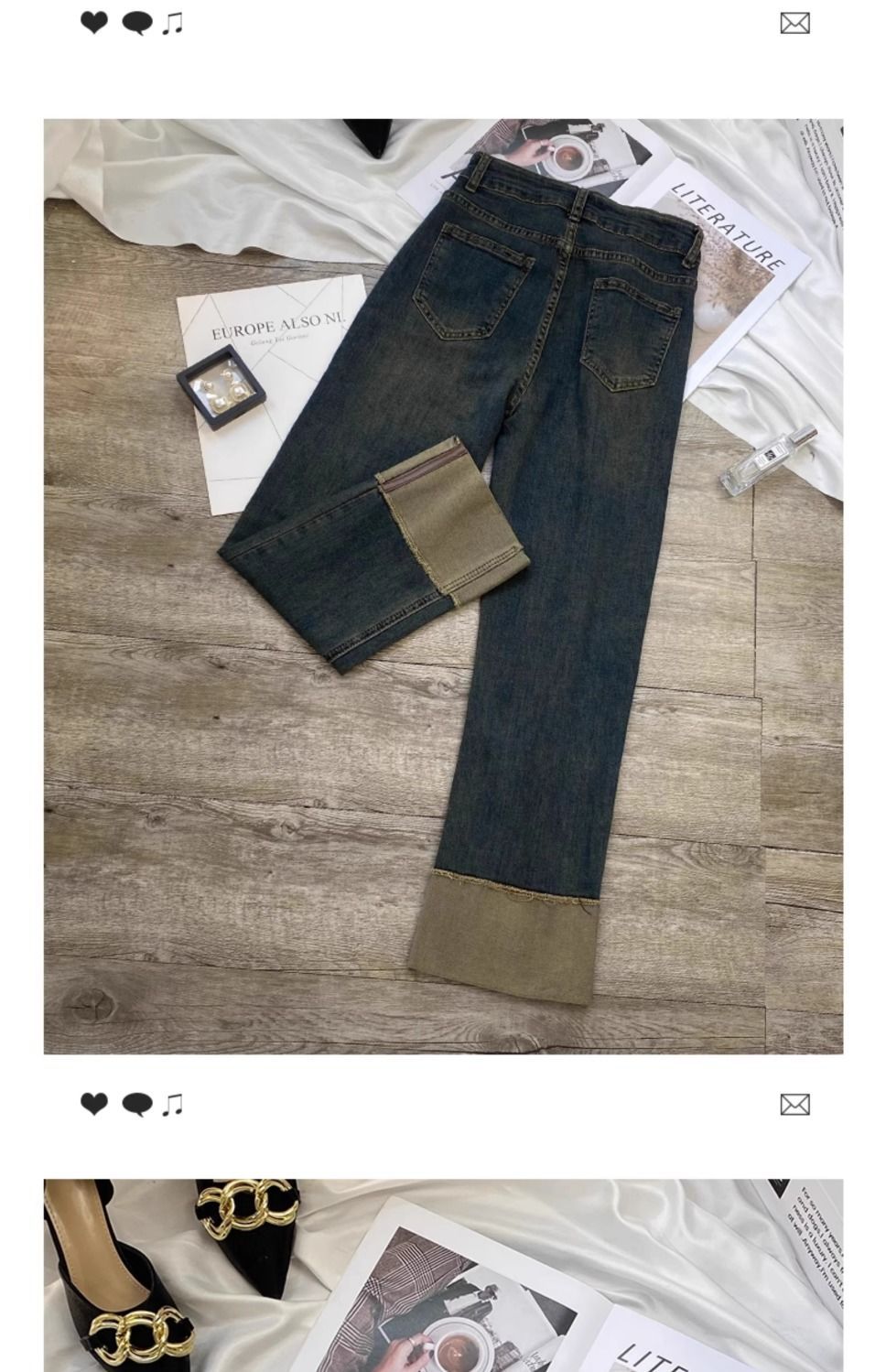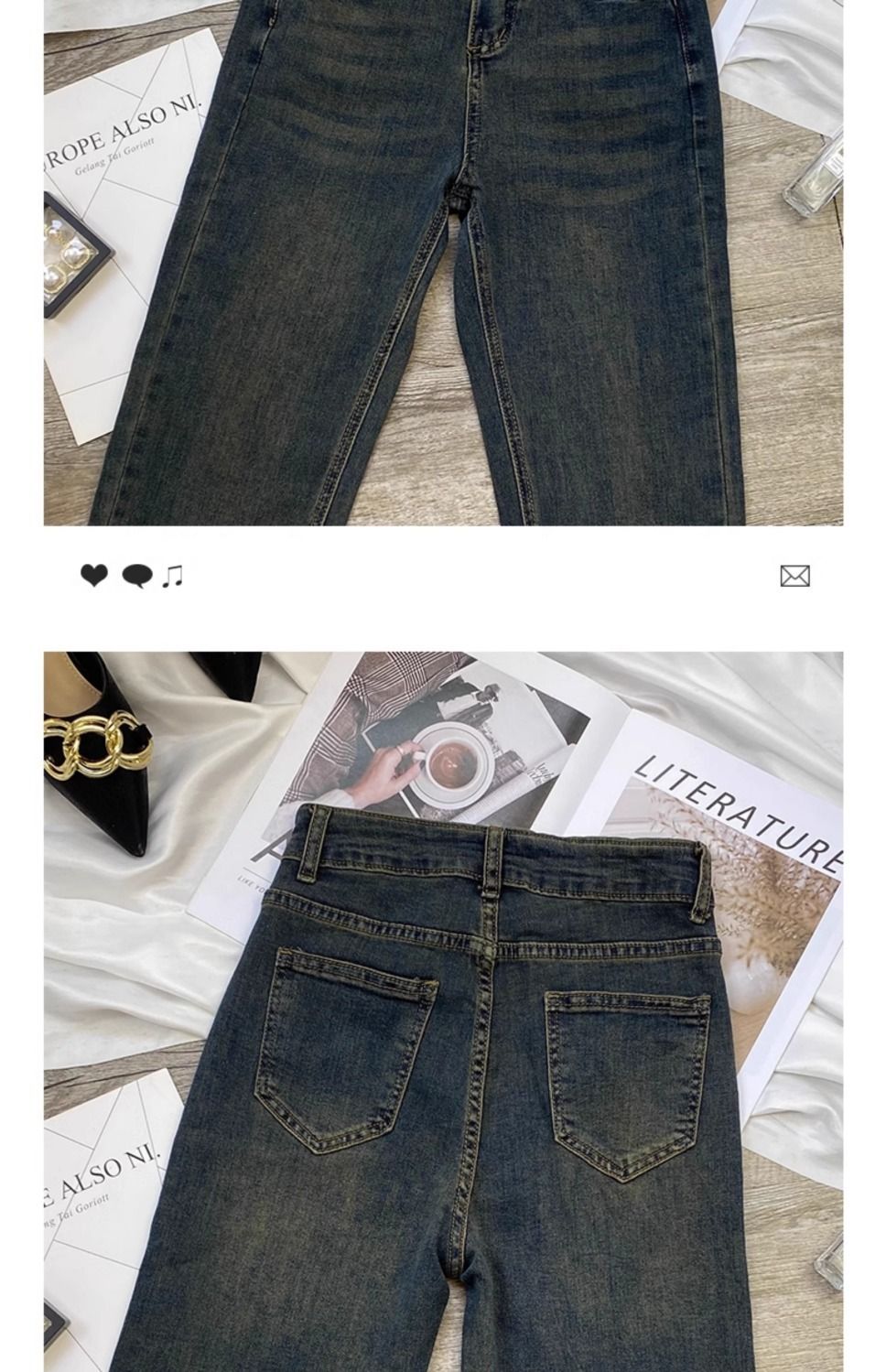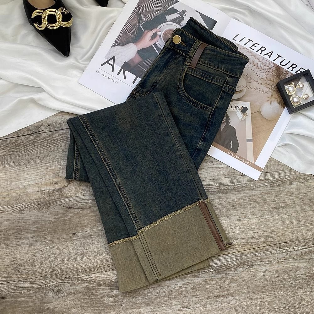 시멘트 재 스트레이트 레그 청바지 여성의 봄과 가을 2025 새로운 높은 허리 슬리밍 커드 연기 튜브 바지 여성용 스몰스토어 가기