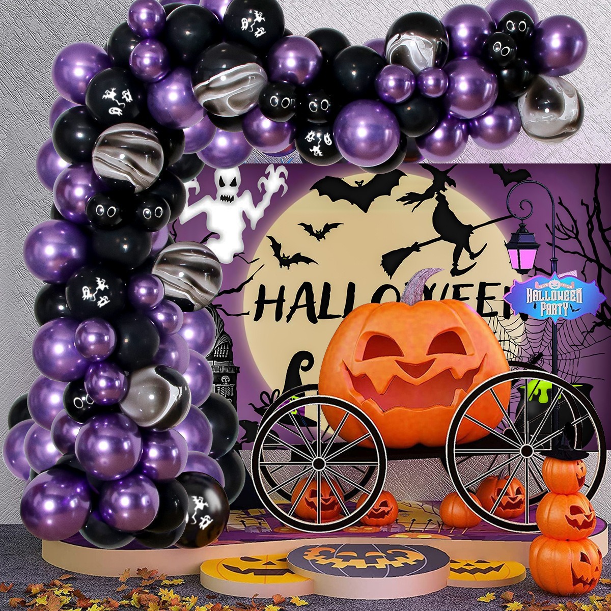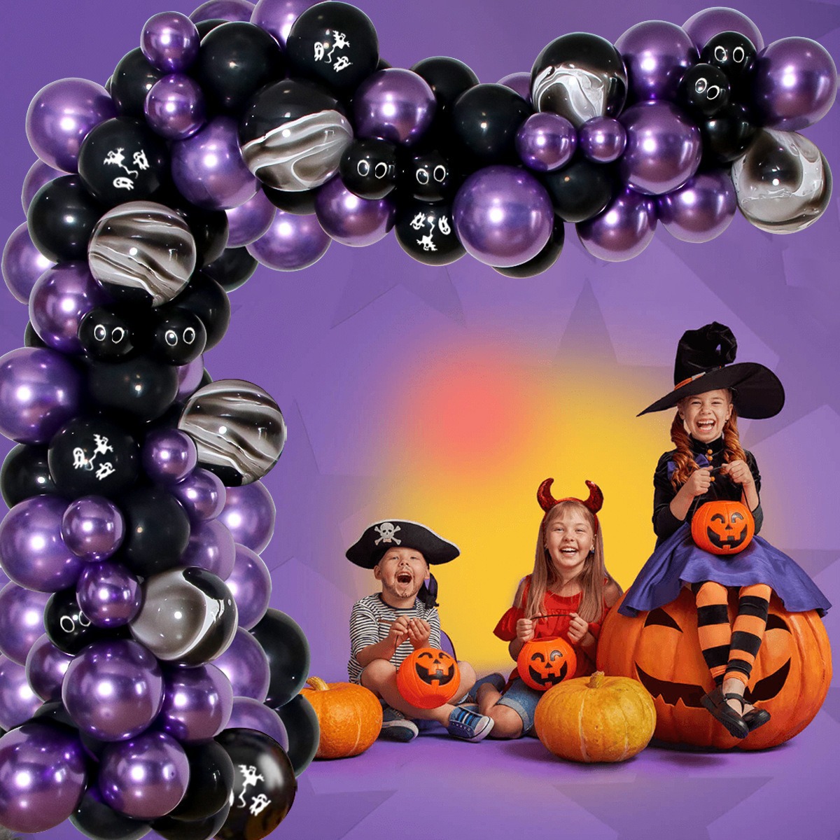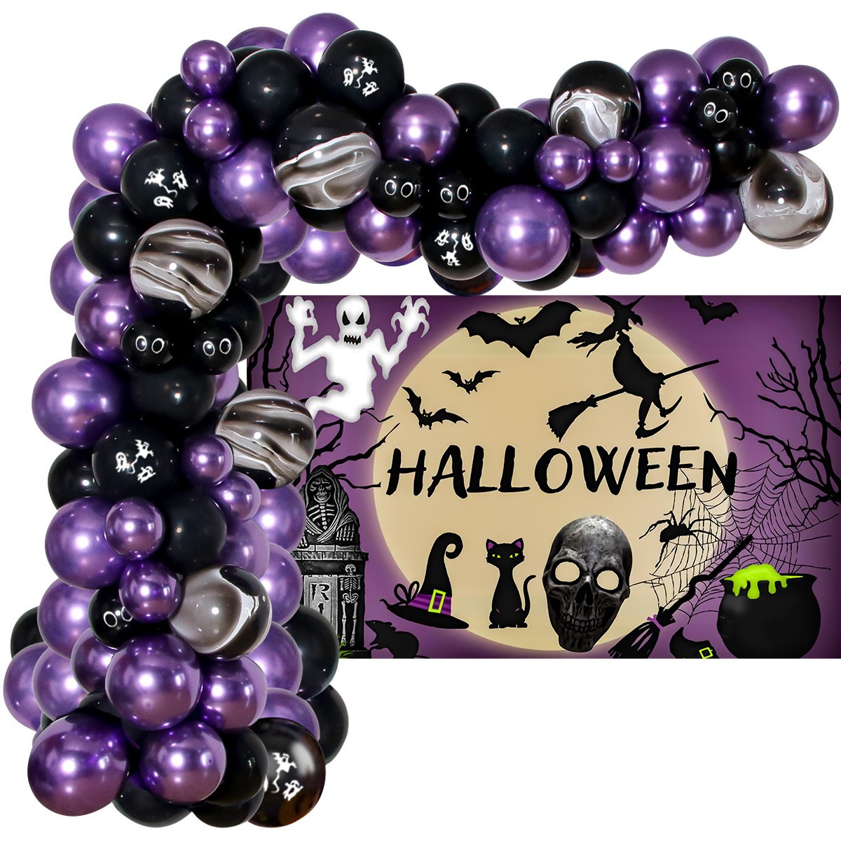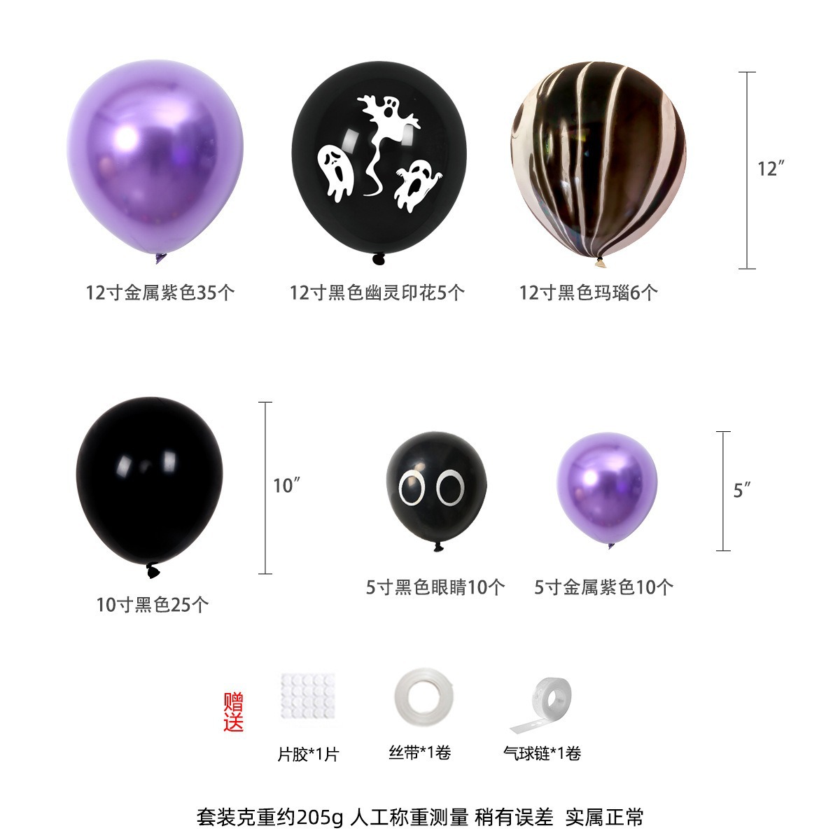 할로윈 검은 보라색 풍선 체인 세트 국경 유령 축제 파티 장식 할로윈 배경 천 풍선 조합