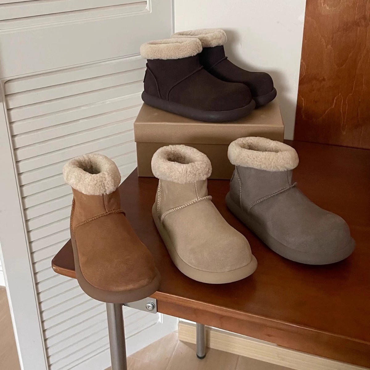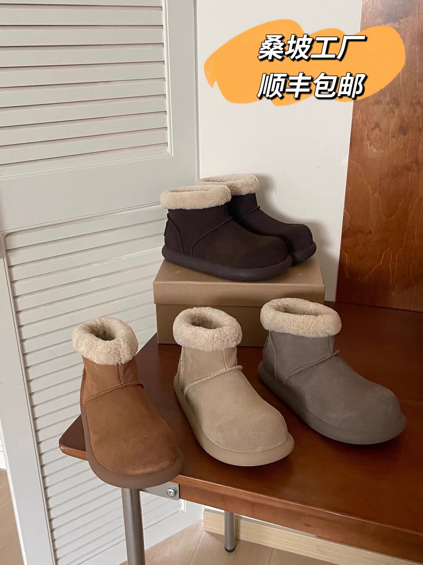 허난 산포 겨울용 작은 감자 모양의 털이 있는 스노우 부츠 여성용 가죽과 모피 일체형 한국 스타일 큰 앞코 플러스 벨벳 숏 부츠스토어 가기
