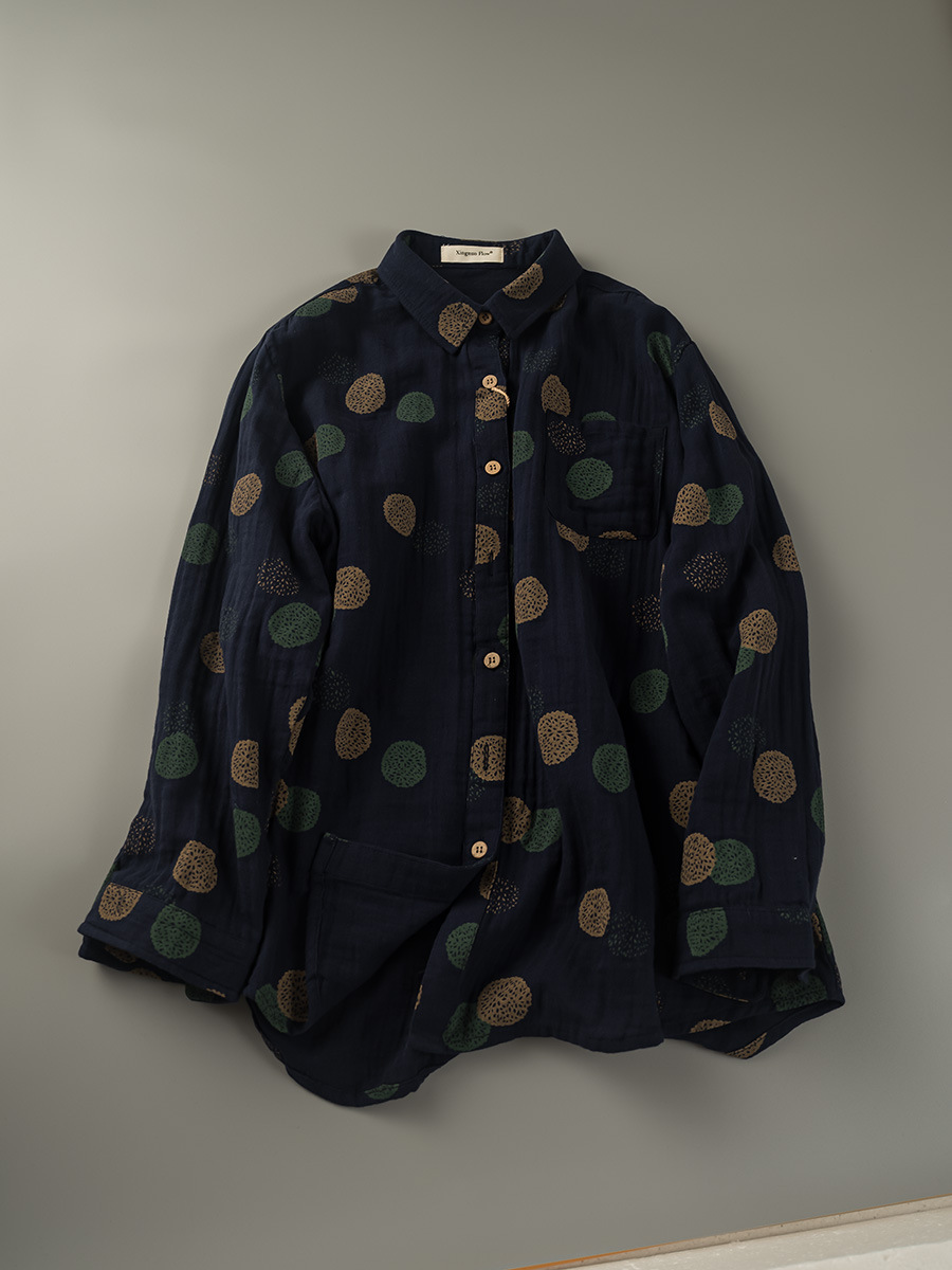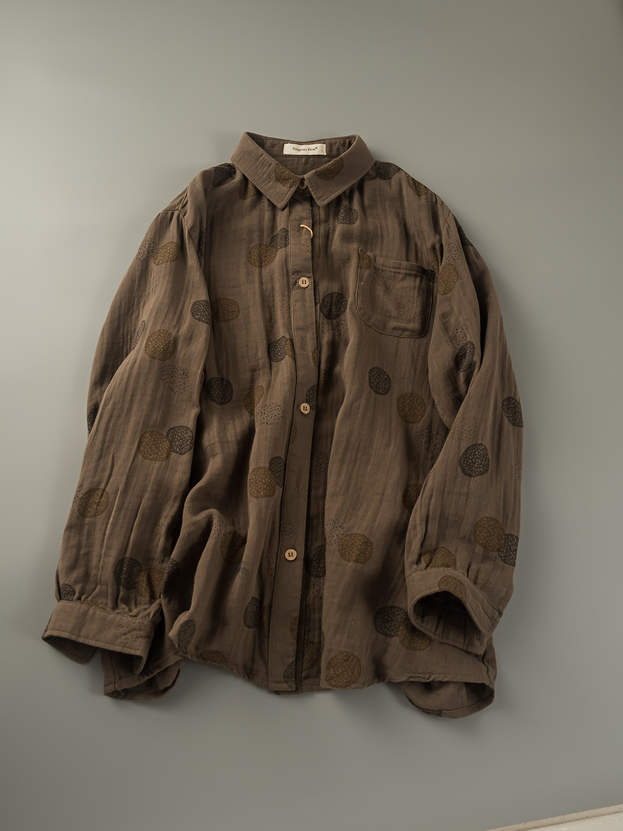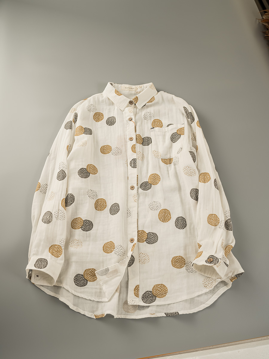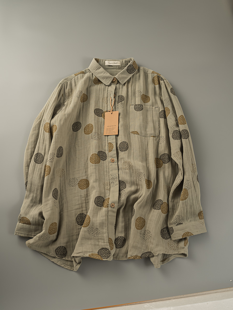 2025 년 봄 일본식 더블 레이어 코튼 원사 여성용 긴팔 셔츠 모리 스타일 라셀 캐주얼 탑스토어 가기
