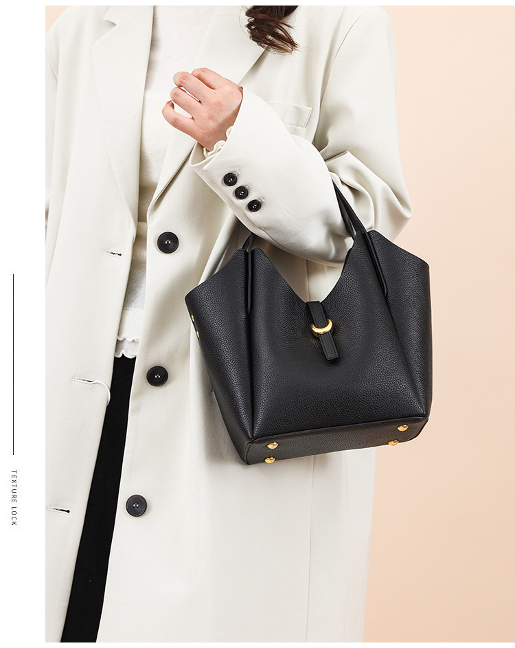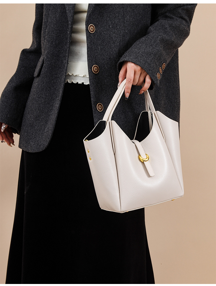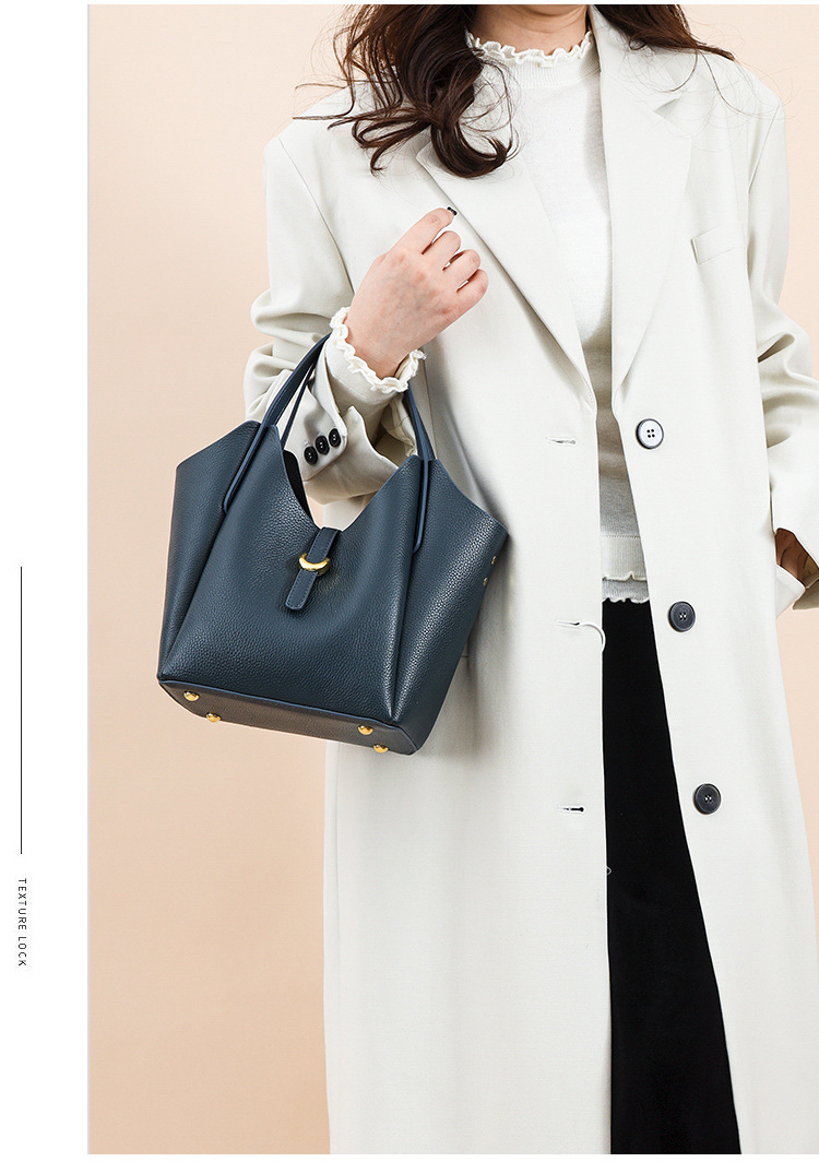 크로스보더 천연가죽 여성용 가방, 부드러운 가죽 느낌, 활용도 높은 숄더백, 대용량 핸드캐리 버킷백, 여성용 페블 크로스백스토어 가기