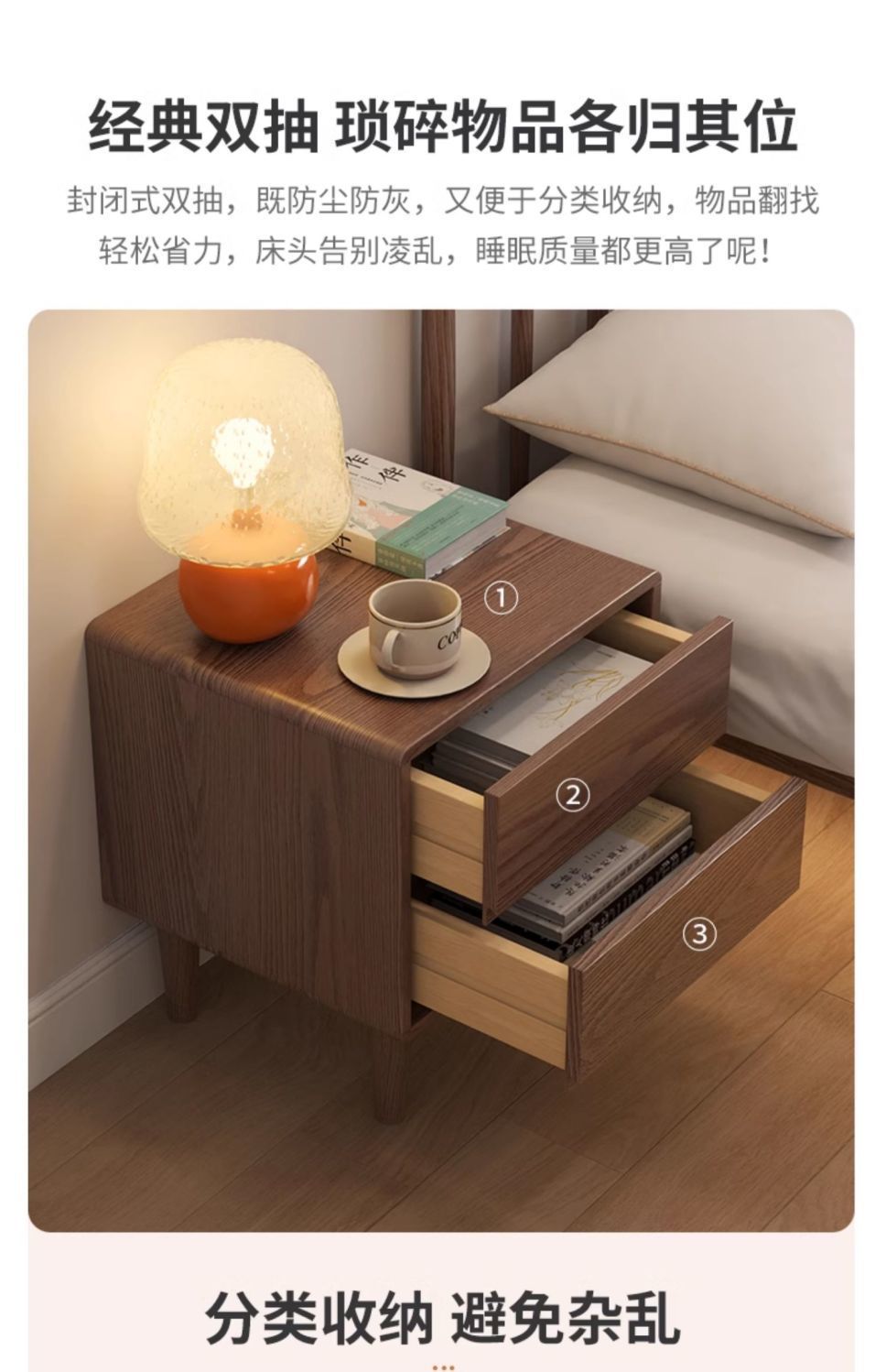 침대 옆 테이블 순수한 단단한 나무 호두 색상 미니 작은 좁은 내각 작은 아파트 침실 서랍 저장 침대 옆 캐비닛 45CM