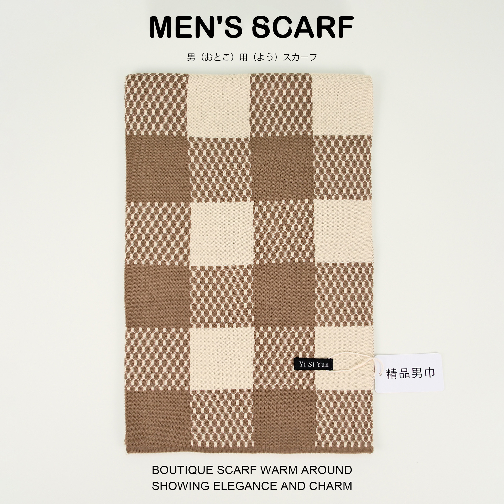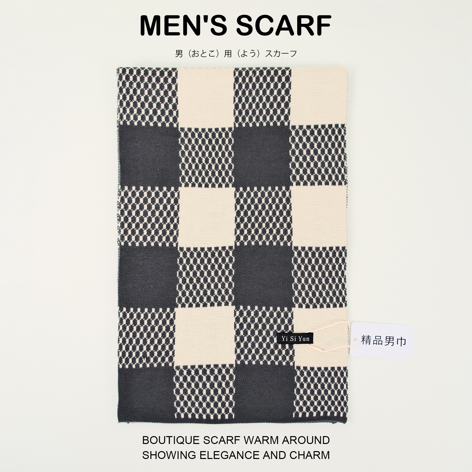 격자 무늬 스카프 겨울 남자 두꺼운 캐시미어 스카프 한국 다재다능한 패션 비즈니스 스타일 따뜻한 목 보호 스카프
