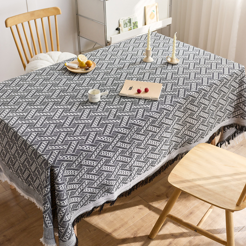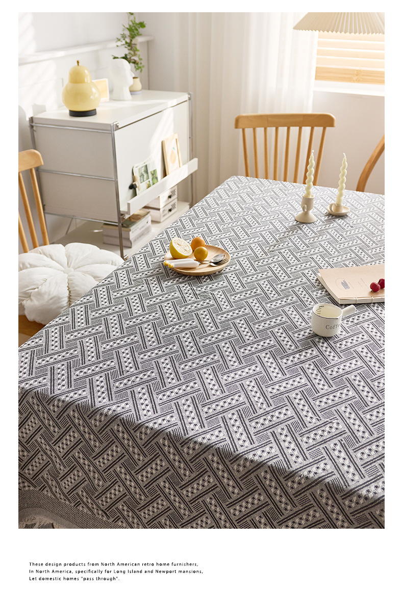 아메리칸 스타일 컨트리 빈티지 타블렛 코튼 리넨 스타일 원사 염색 자카드 장식 테이블 테이블 테이블 매트 직사각형 다이닝 테이블 원단스토어 가기