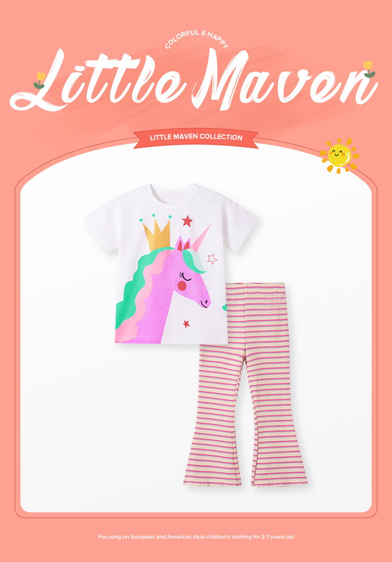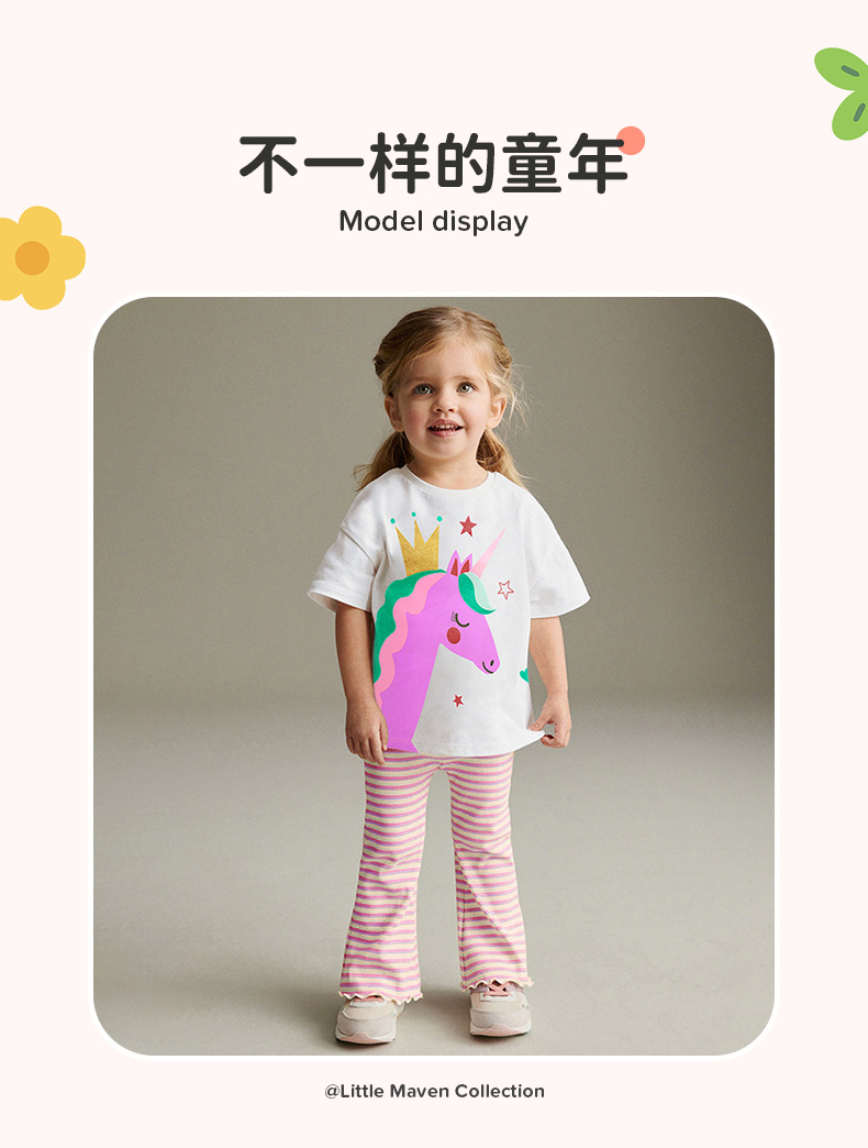 Little maven 소스 공장 소녀 정장 여름 만화 어린이 투피스 세트 유럽과 미국 소녀 정장스토어 가기