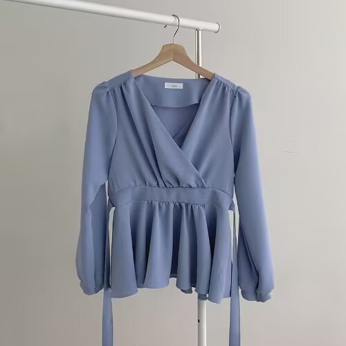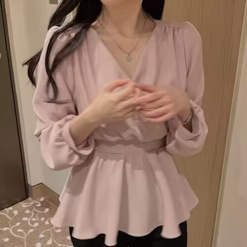 2024 이른 봄 새로운 우아한 V 넥 슈퍼 요정 달콤한 우아한 타이트 허리 레이스 업 긴 소매 셔츠 탑스토어 가기
