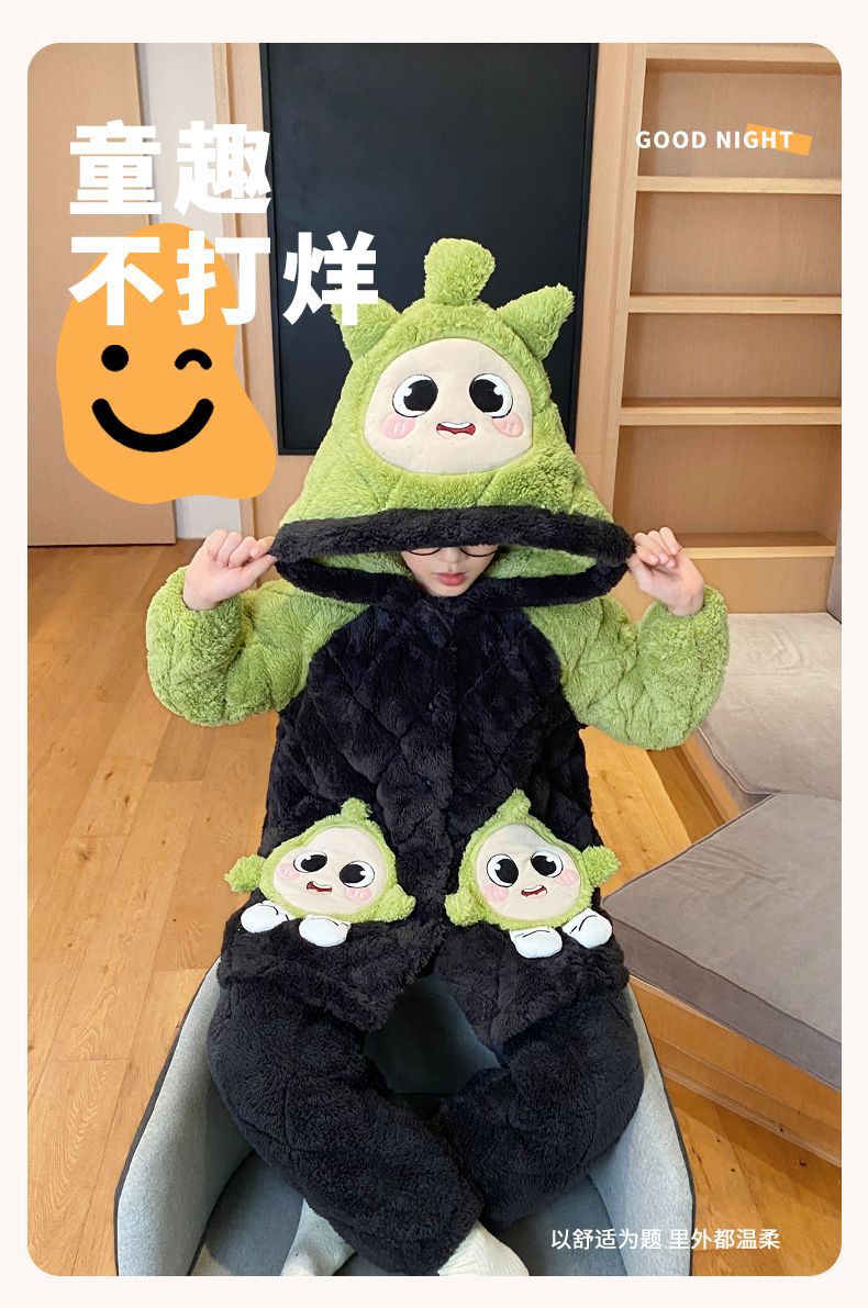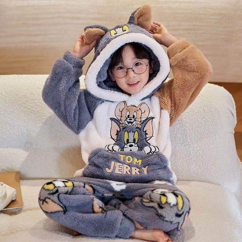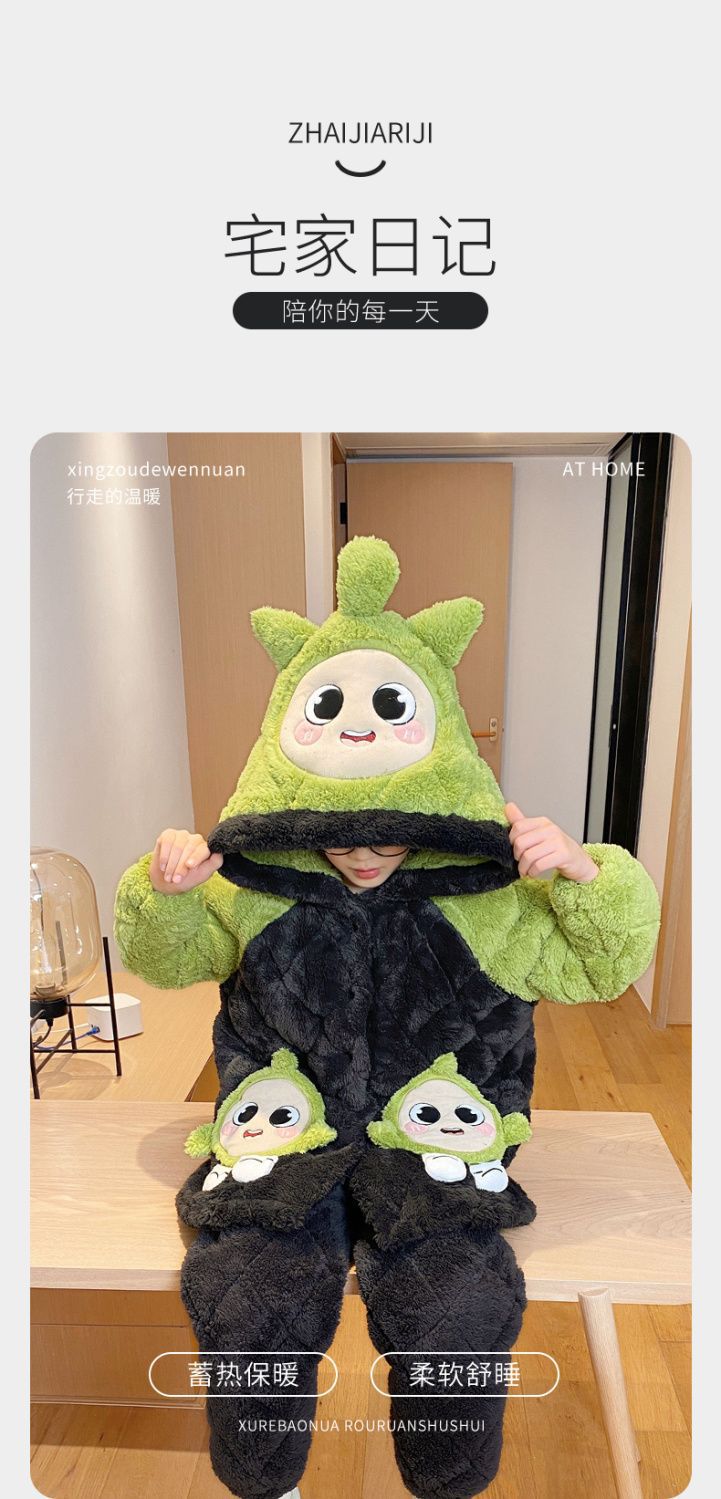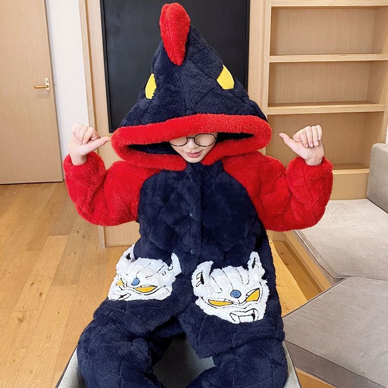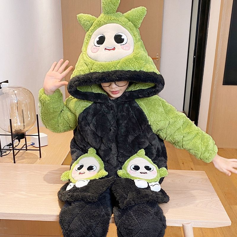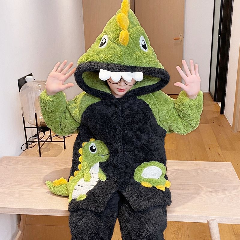 소년을위한 달걀 어린이 잠옷 겨울 두꺼운 3 층 퀼트 산호 양털 새 스타일 홈 옷 큰 어린이와 소년을위한 세트