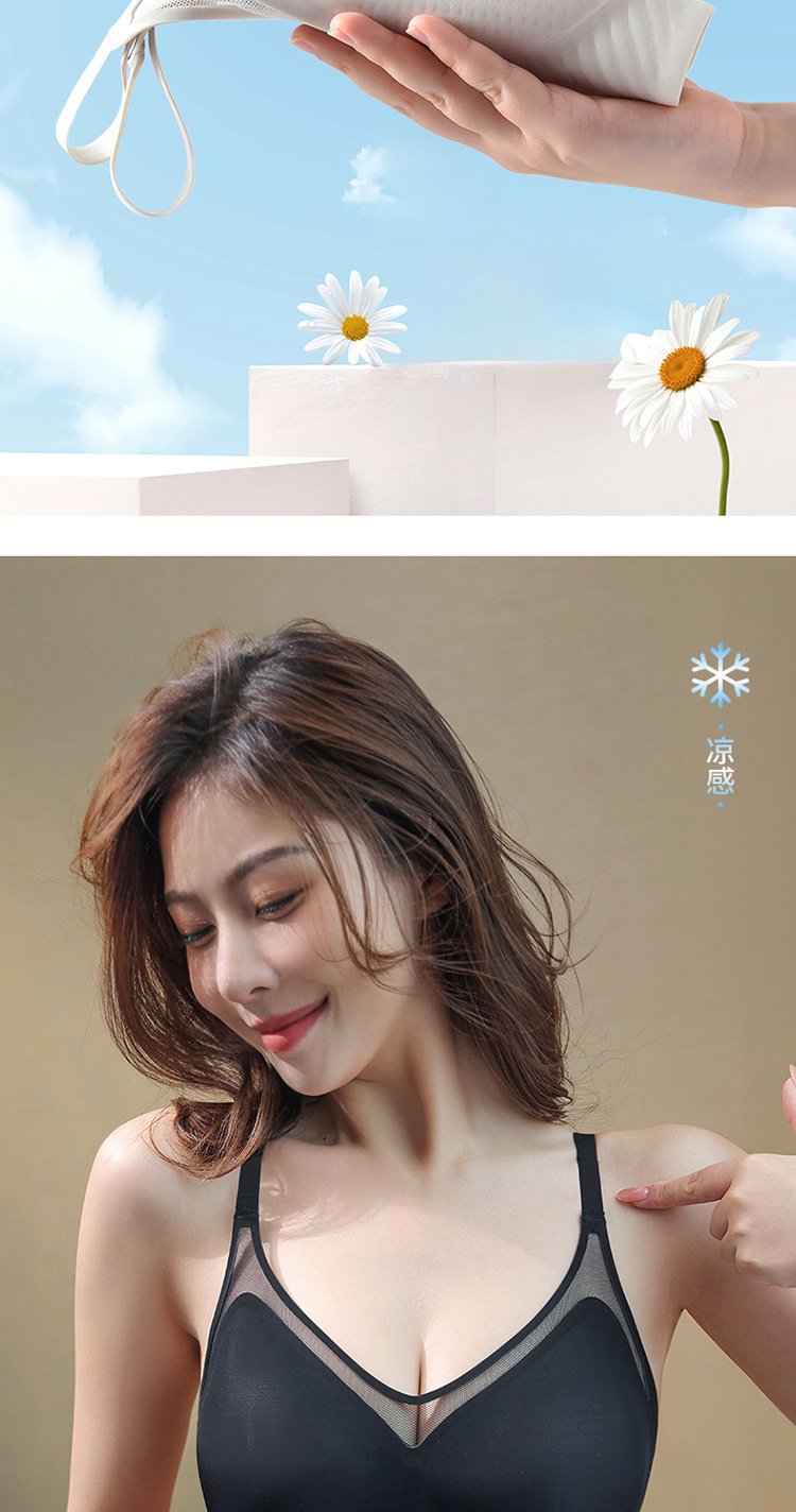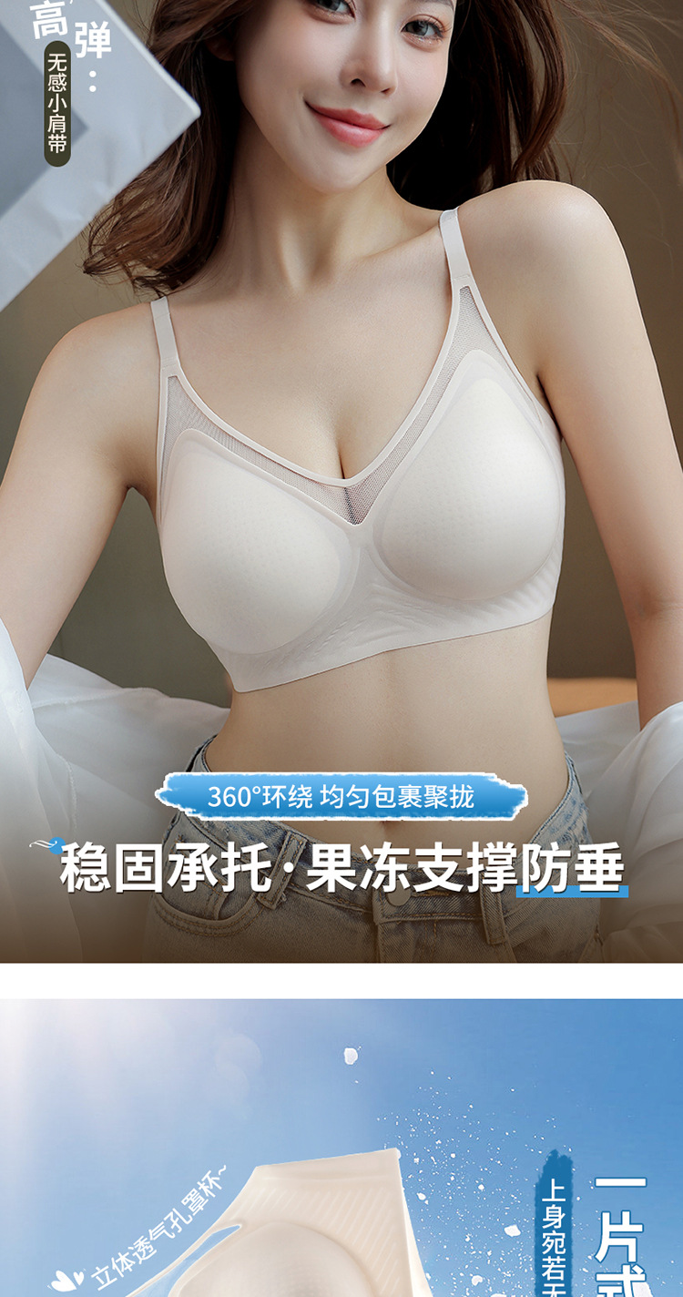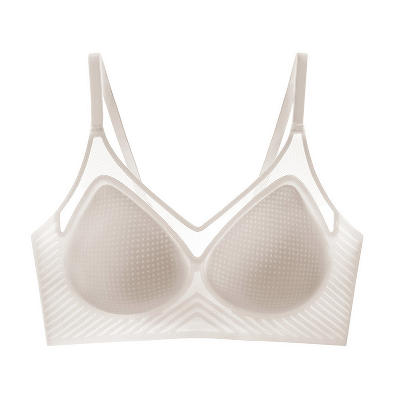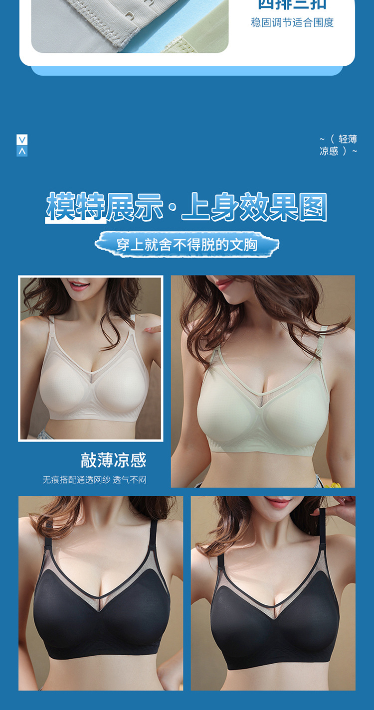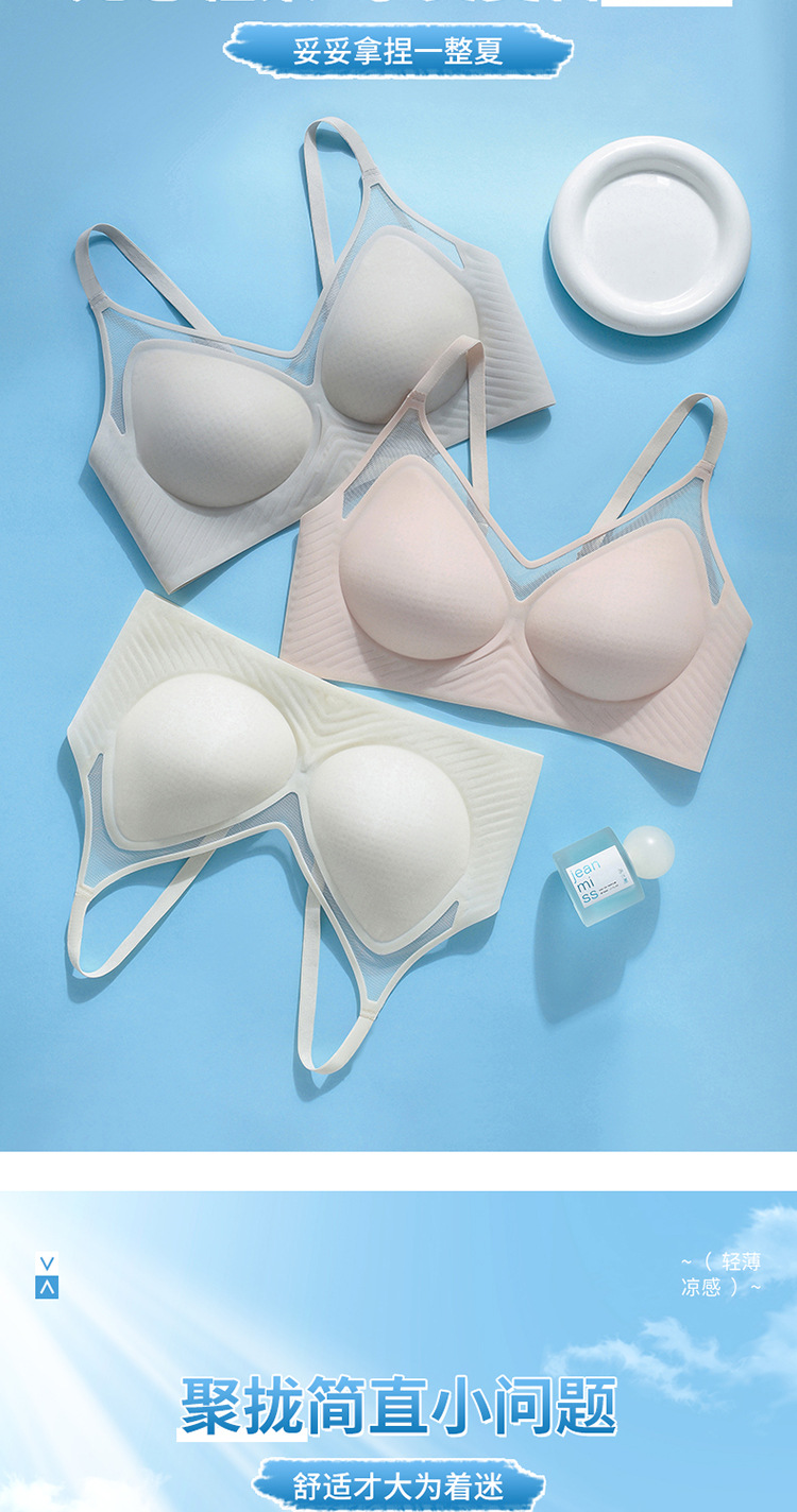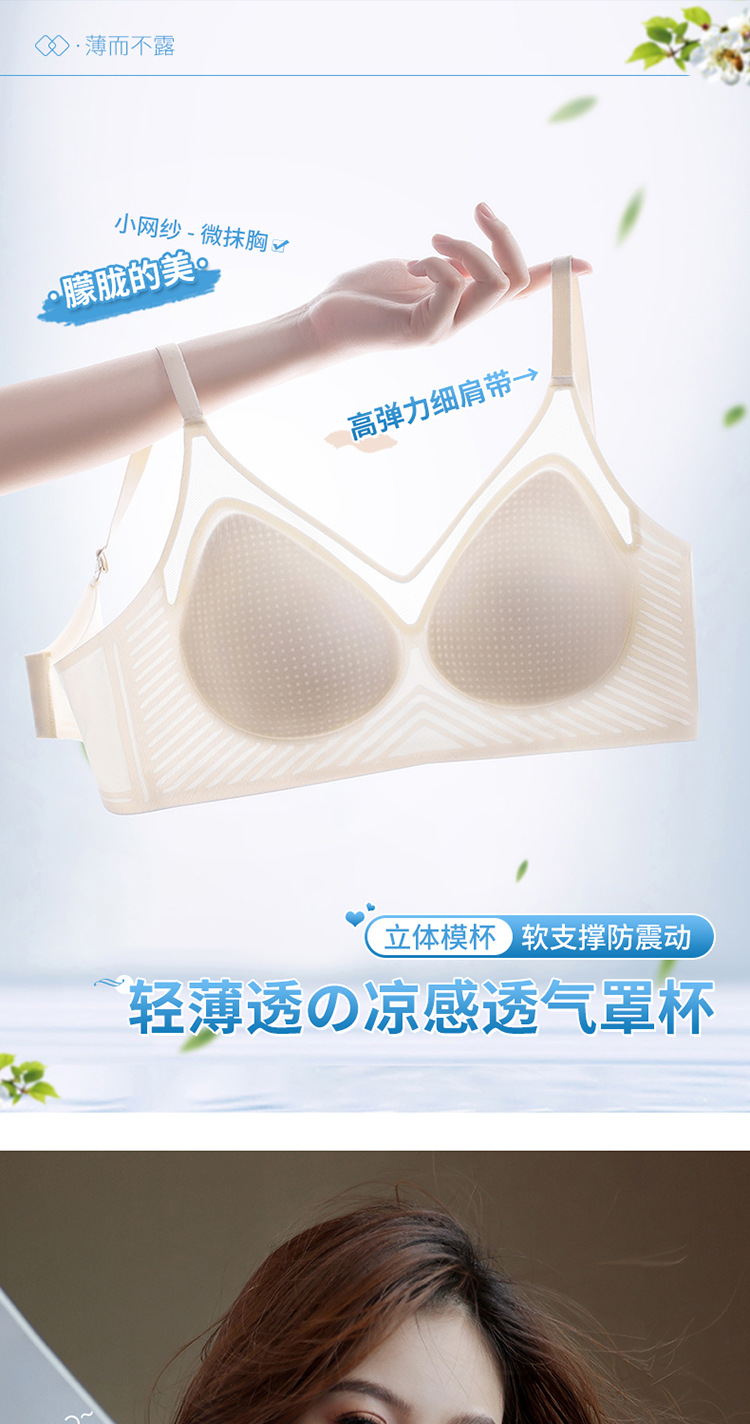 벌집 구멍 디자인의 시원한 아이스 실크 여성 속옷, 가볍고 통기성 좋으며 자국이 남지 않는 부드러운 지지력, 편안한 노와이어 푸쉬업 브라스토어 가기