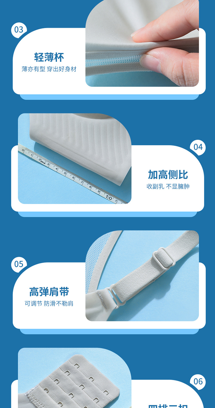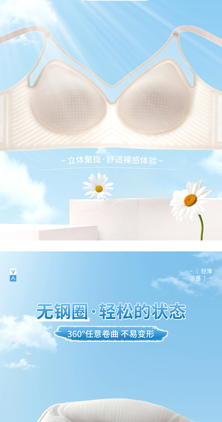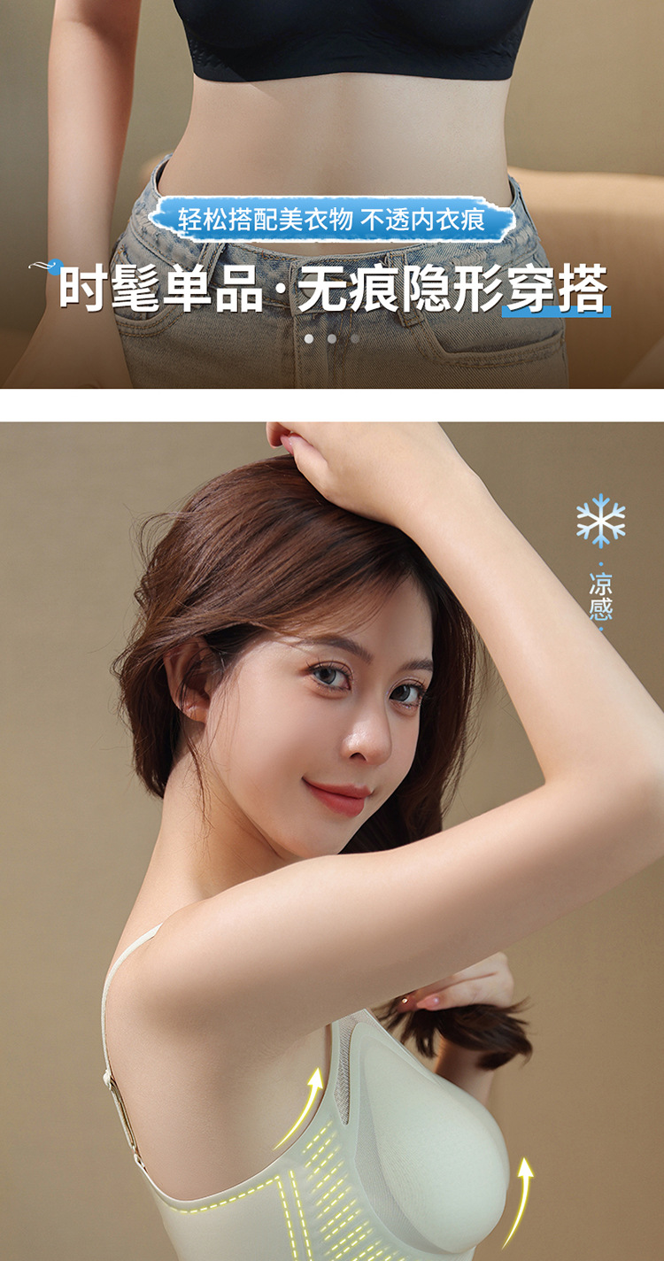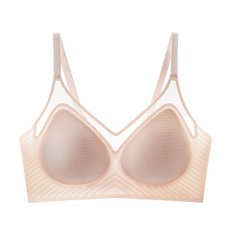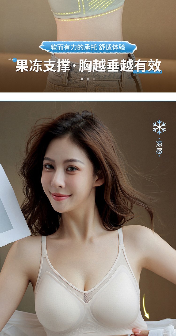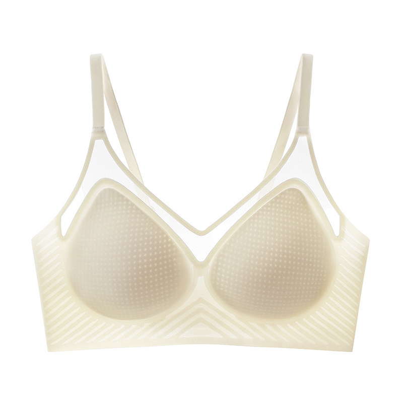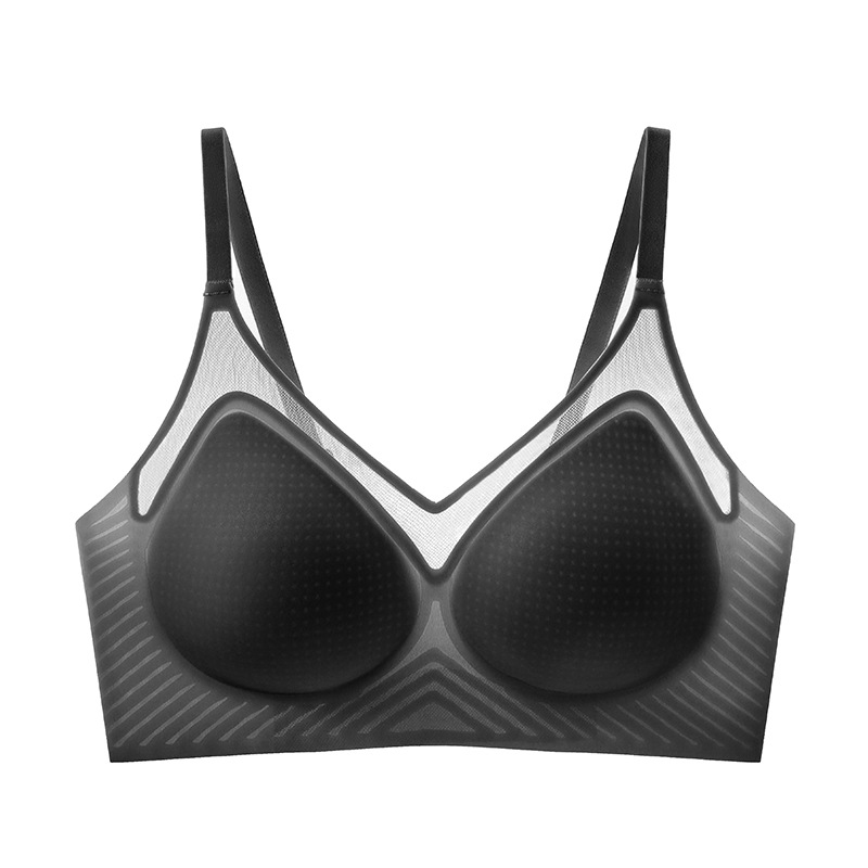 벌집 구멍 디자인의 시원한 아이스 실크 여성 속옷, 가볍고 통기성 좋으며 자국이 남지 않는 부드러운 지지력, 편안한 노와이어 푸쉬업 브라스토어 가기