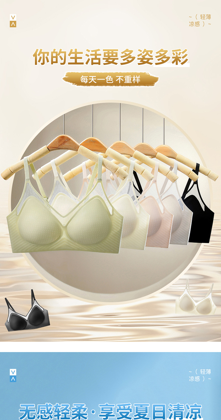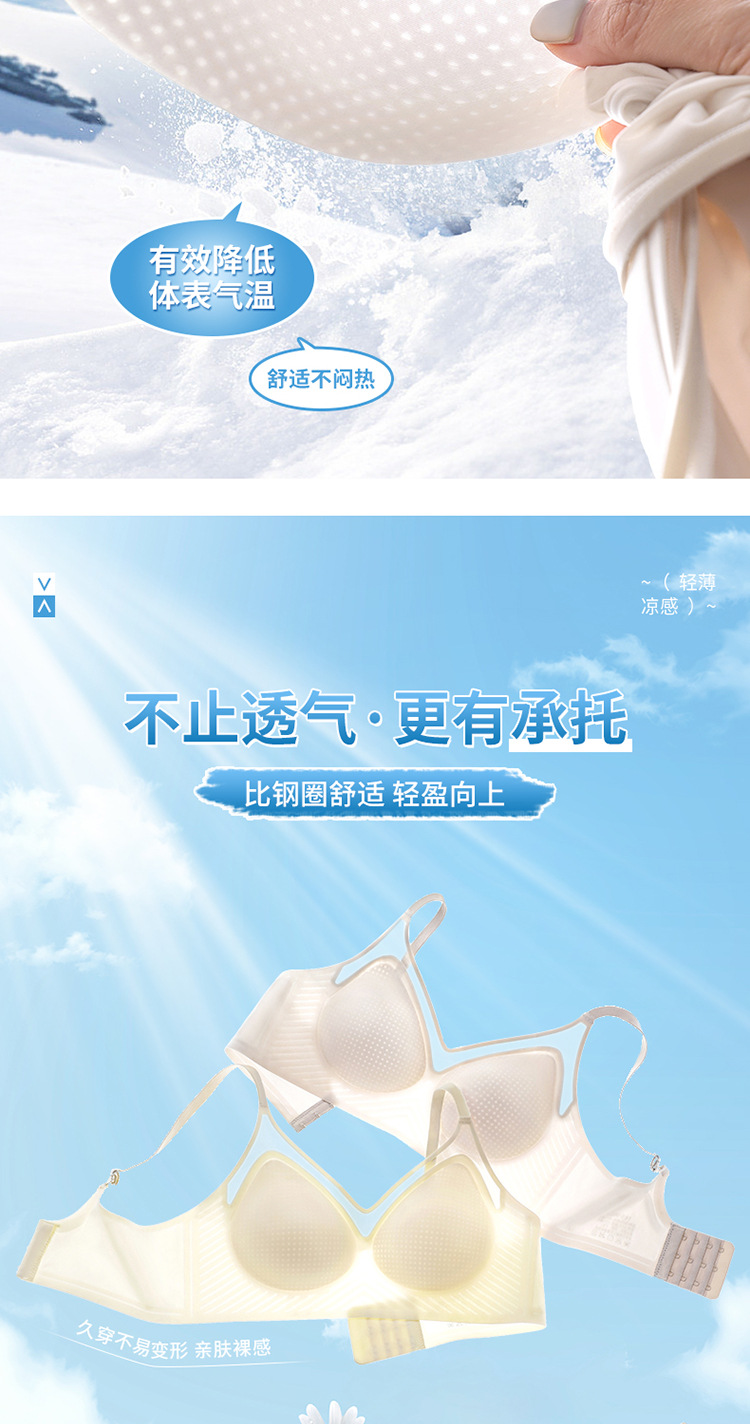 벌집 구멍 디자인의 시원한 아이스 실크 여성 속옷, 가볍고 통기성 좋으며 자국이 남지 않는 부드러운 지지력, 편안한 노와이어 푸쉬업 브라