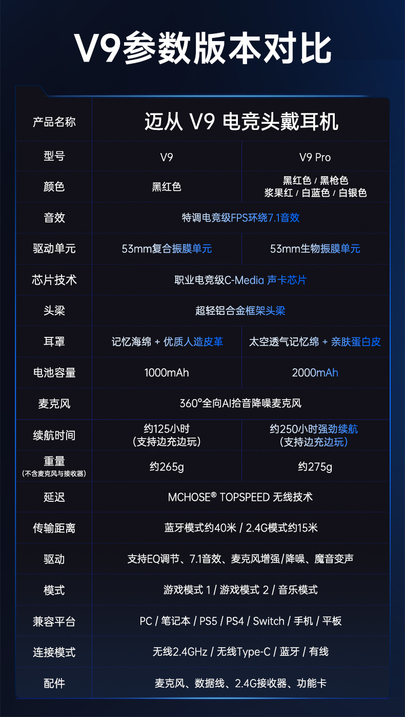 (MCHOSE)V9 게임 헤드셋 전기 경쟁 헤드셋 헤드셋 블루투스/2.4G/유선 헤드셋