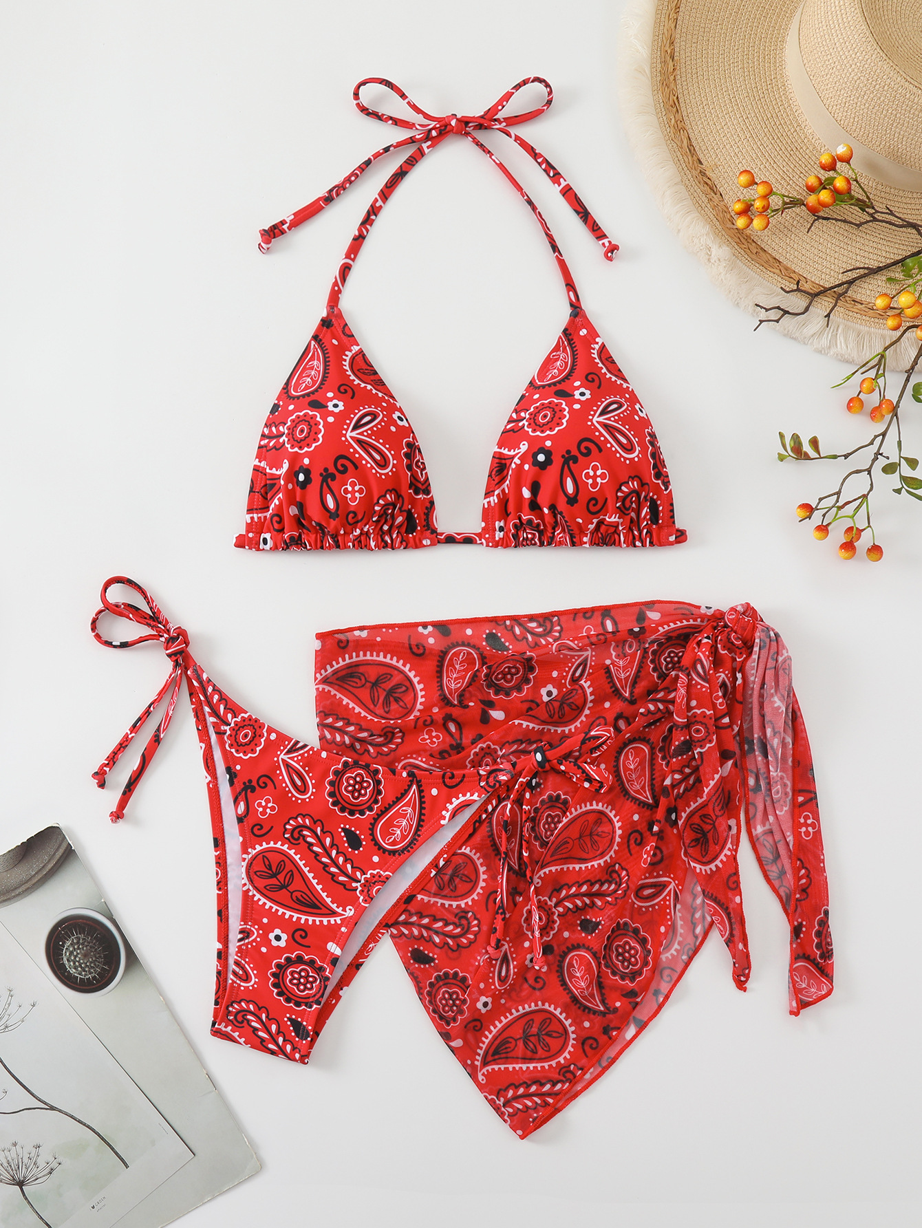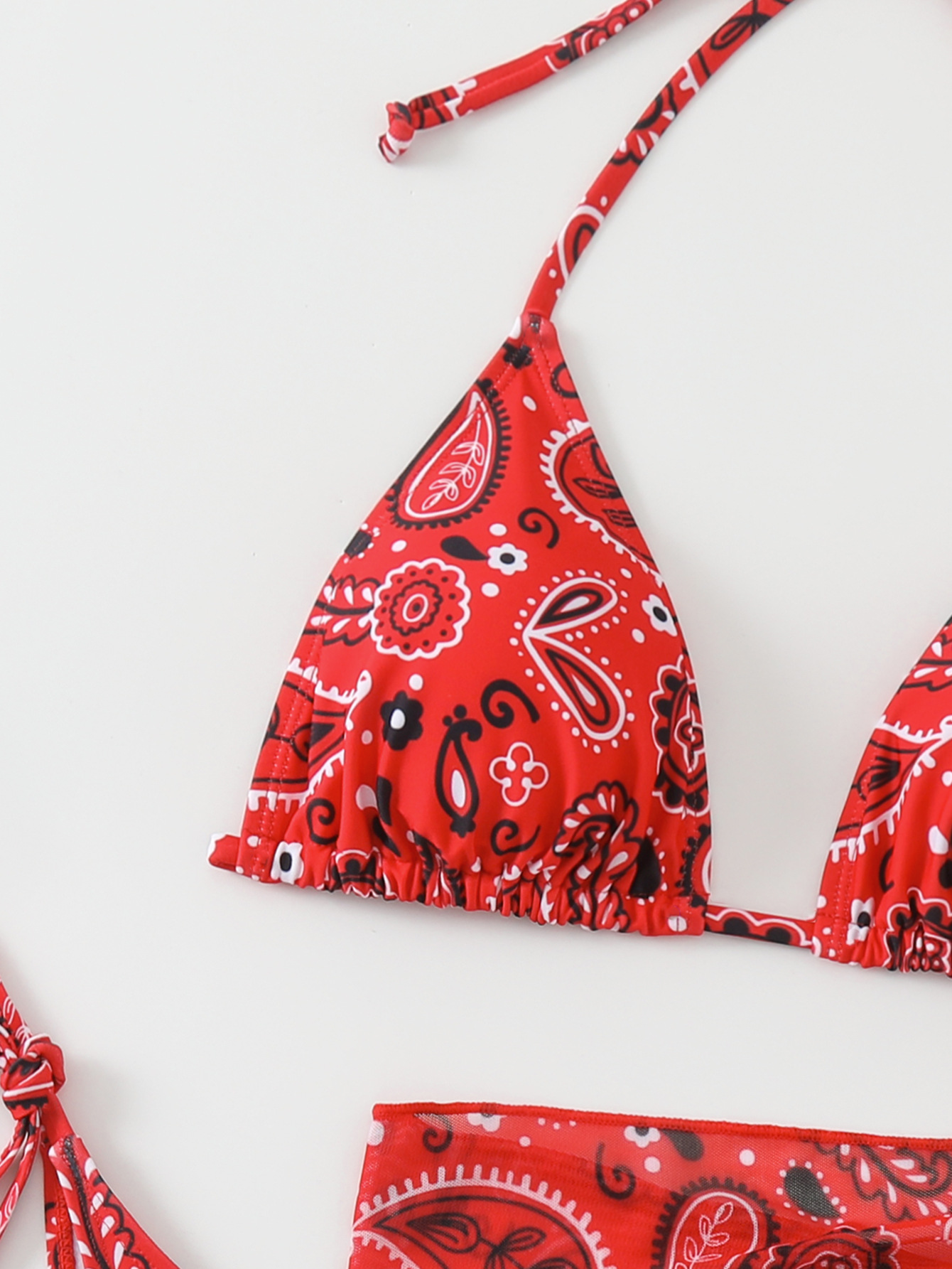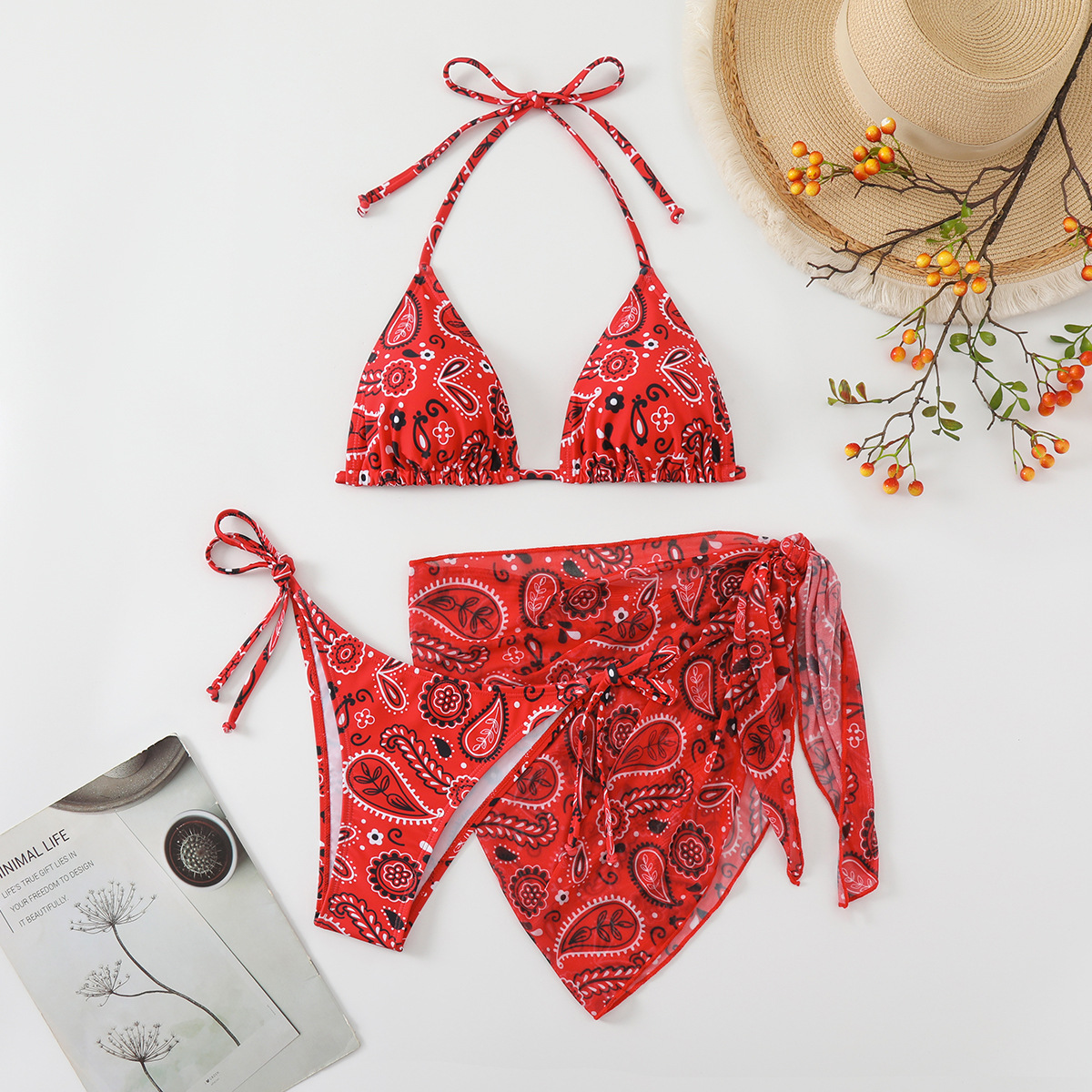 유럽과 미국의 국경 새로운 여성 패션 슬링 섹시 인쇄 메쉬 스커트 브리프 비키니 3 피스 세트