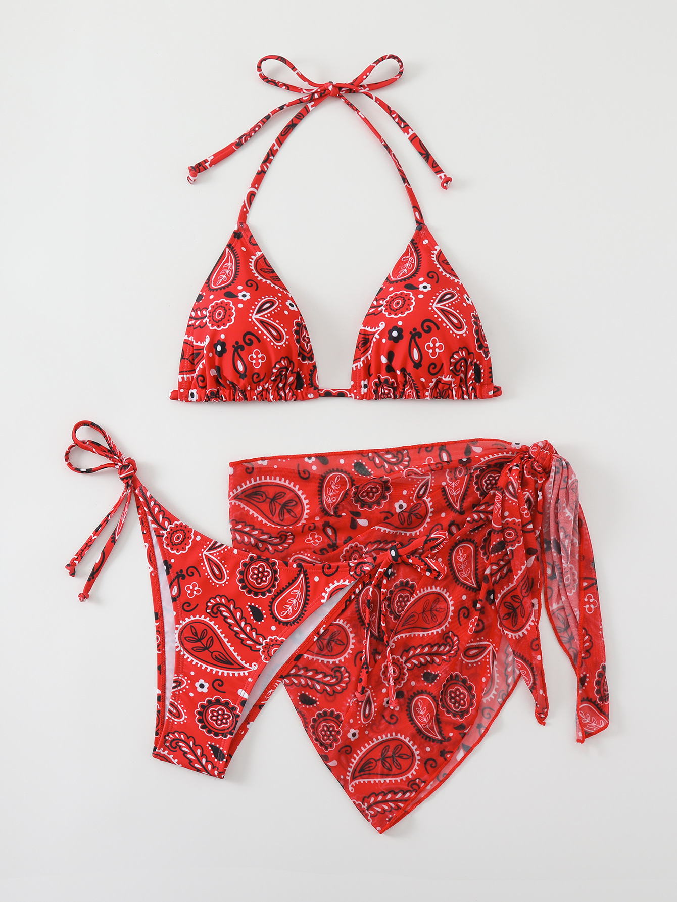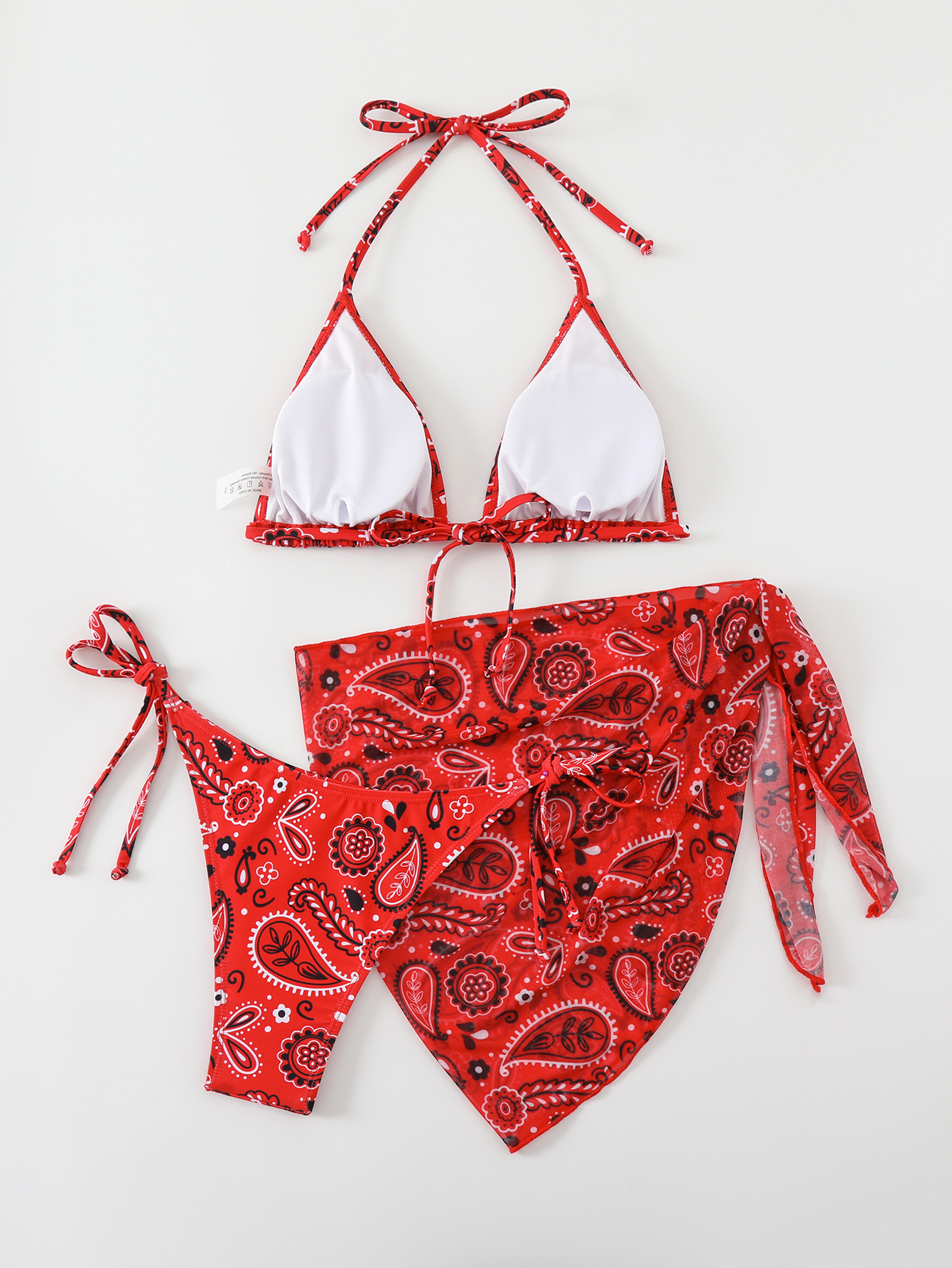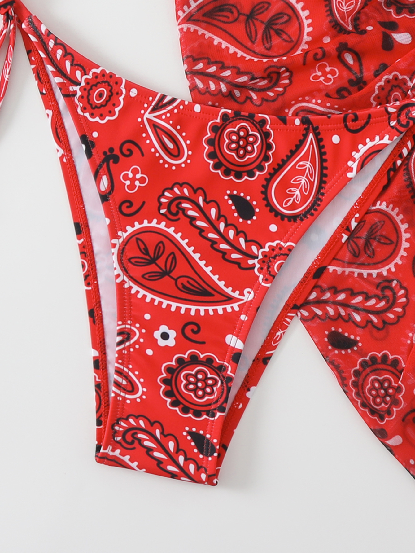 유럽과 미국의 국경 새로운 여성 패션 슬링 섹시 인쇄 메쉬 스커트 브리프 비키니 3 피스 세트