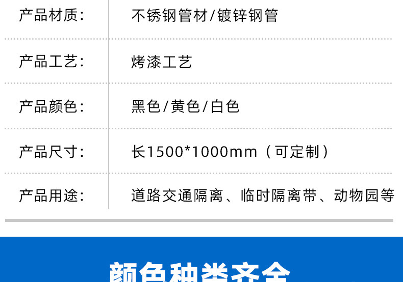 노란색 검은 철 말 가드 레일 아연 도금 강관 임시 건설 울타리 도로 이동 가능한 안전 반사 장벽