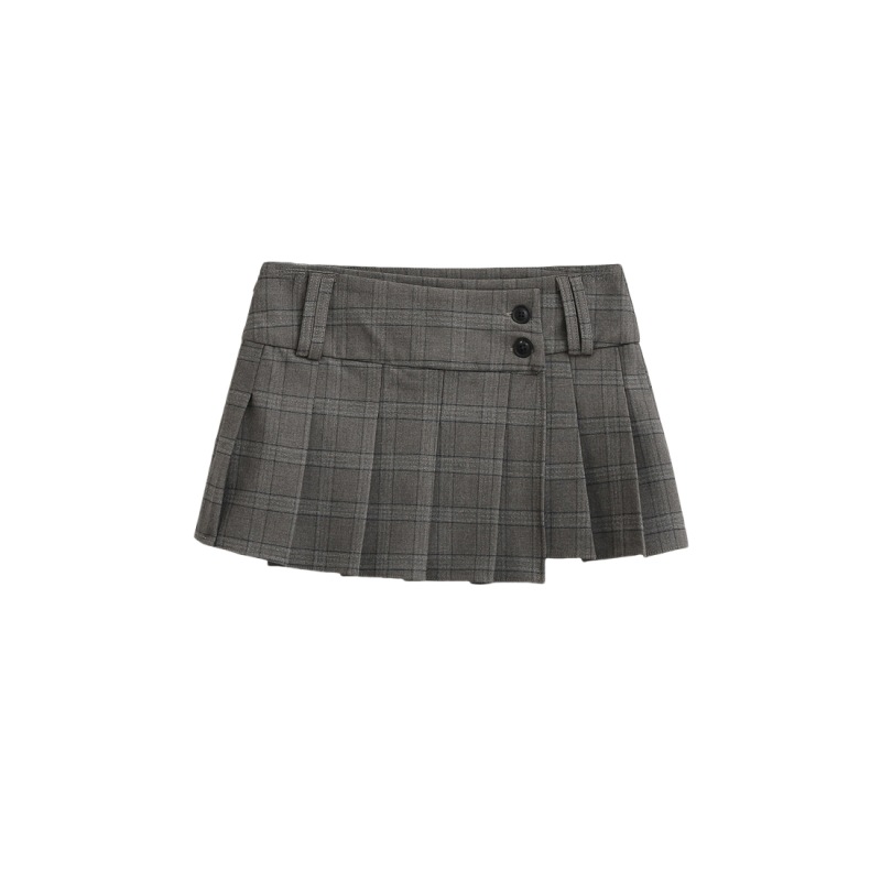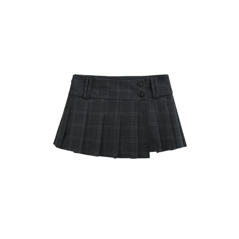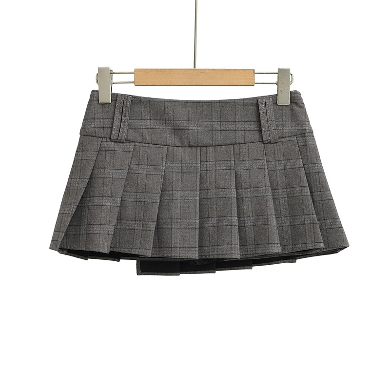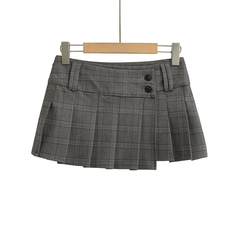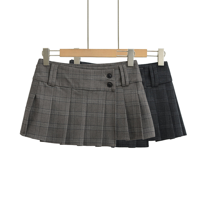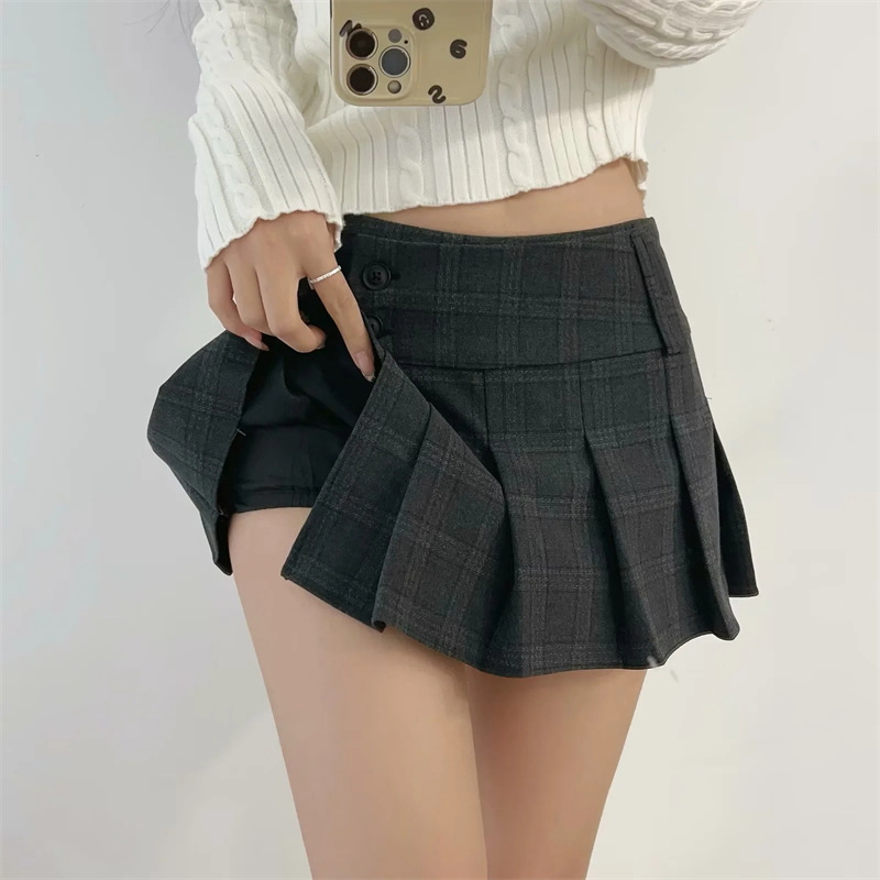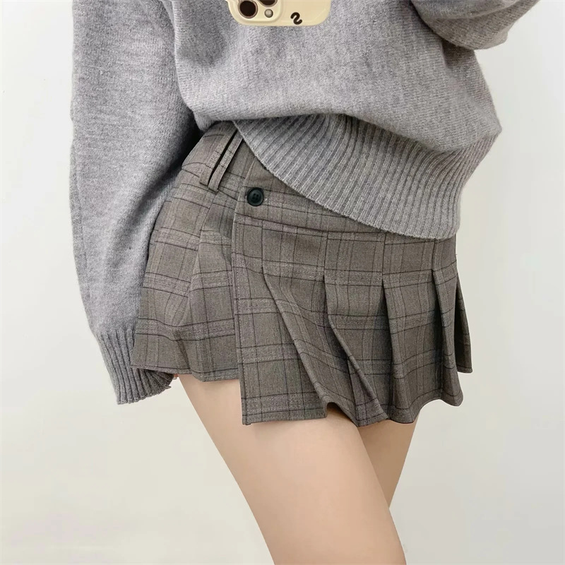 미국 틈새 레트로 격자 무늬 높은 허리 스커트 디자인 센스 헴 불규칙한 주름 된 안티 러닝 라이트 미니 스커트